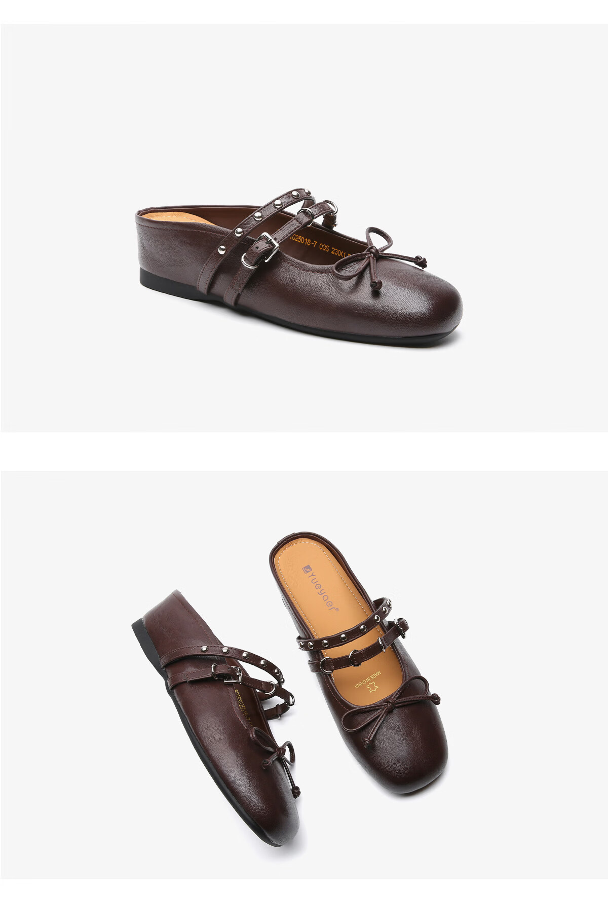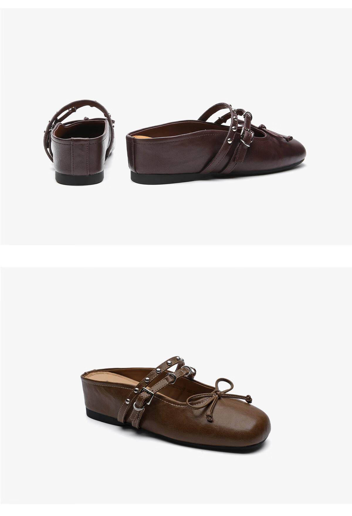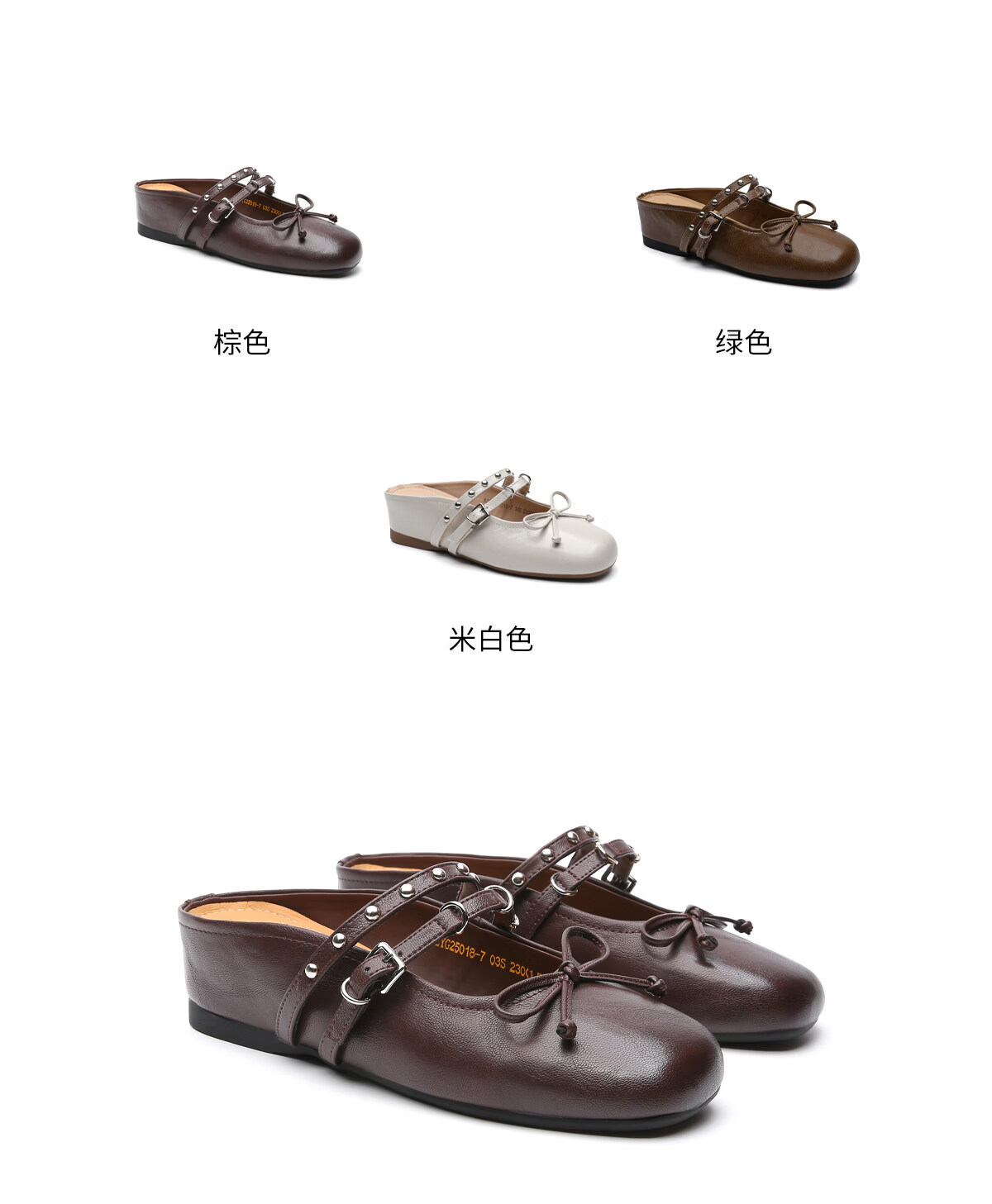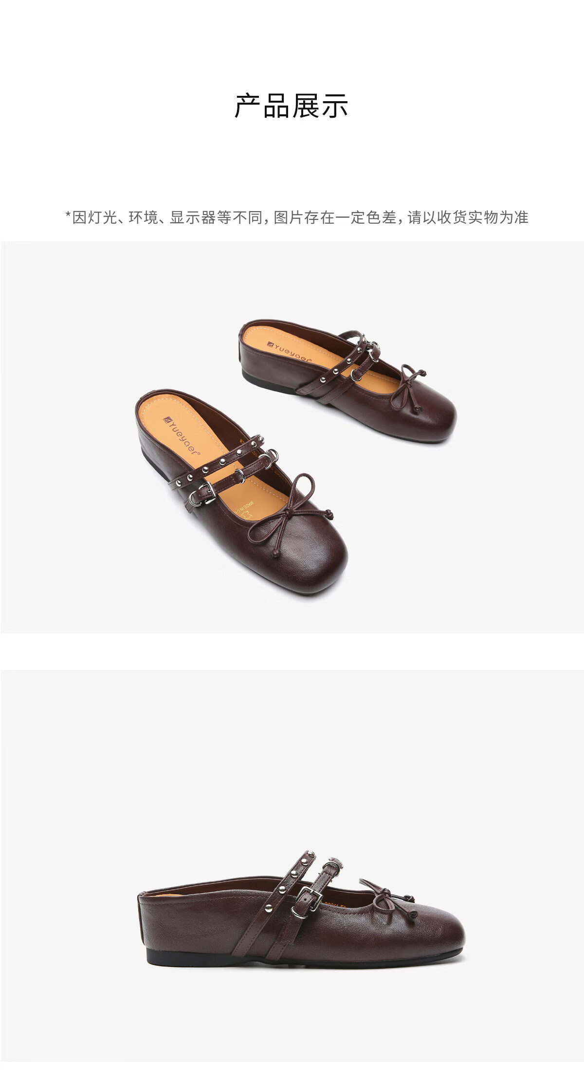 月芽儿包头半拖鞋女外穿2025年冬季夏季新款法式复古蝴蝶结浅口穆勒鞋 棕色03S 34