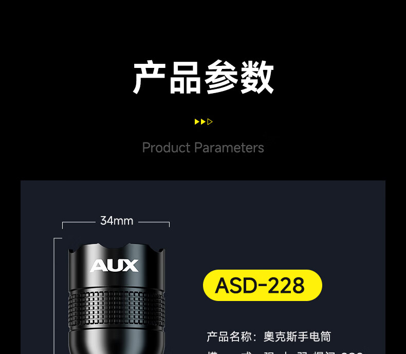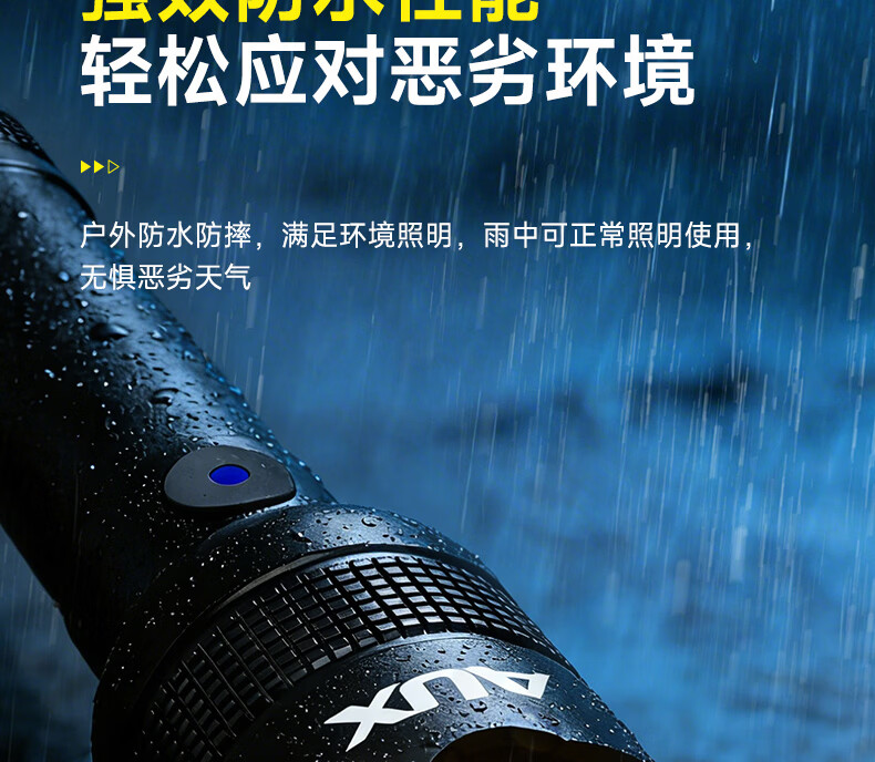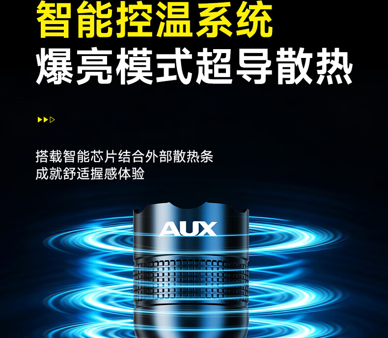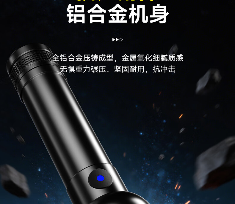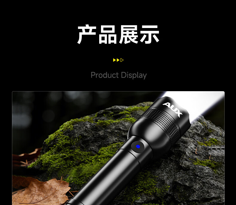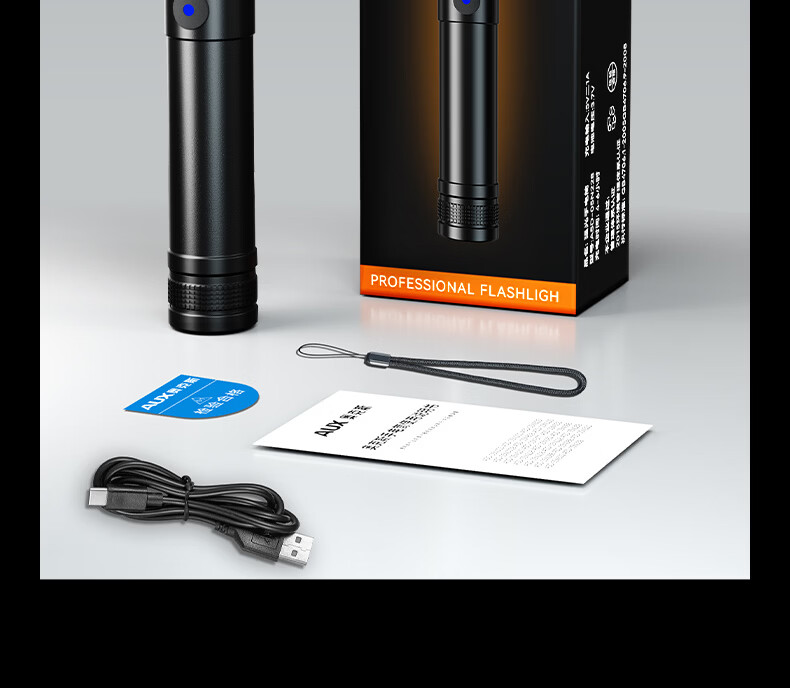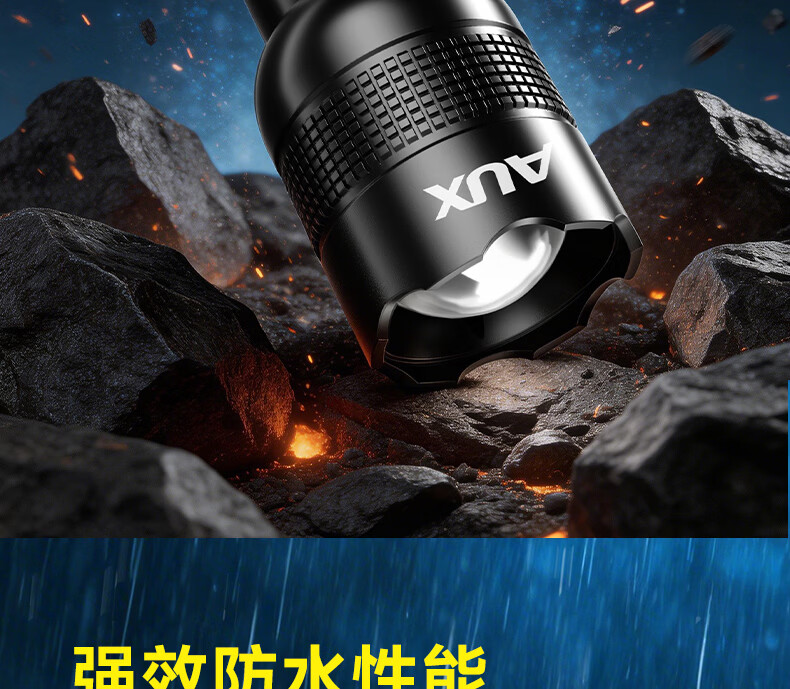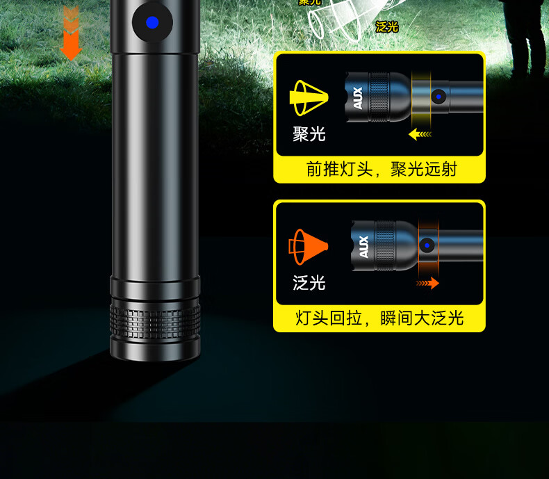 奥克斯(AUX)手电筒强光超亮长续航野外生存变焦军小型便携家专用穿天炮应急灯 【穿天炮】铝合金+变焦+2200毫安*2