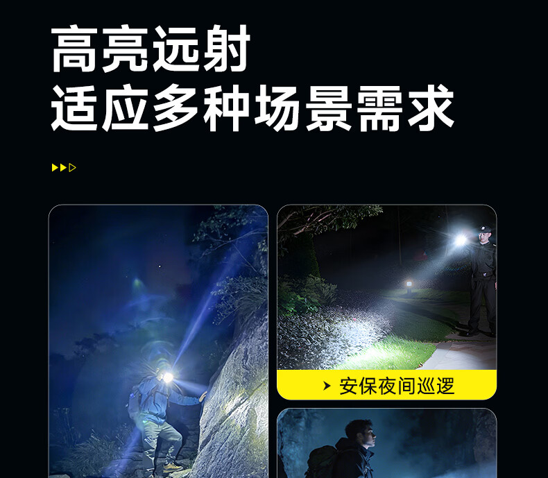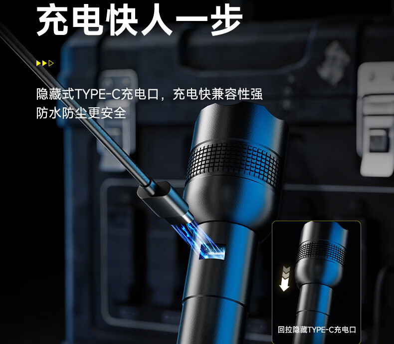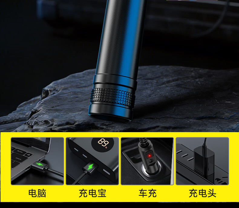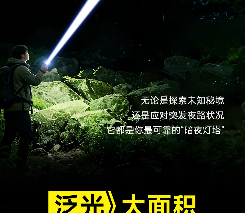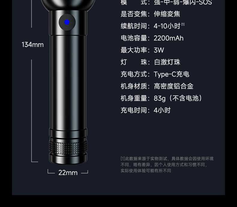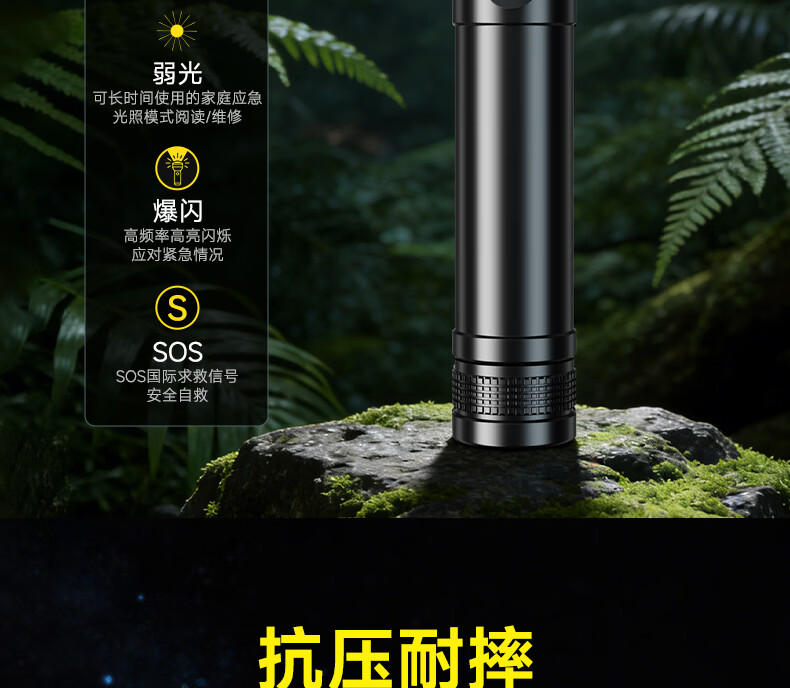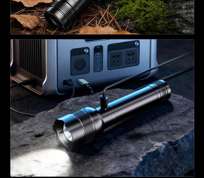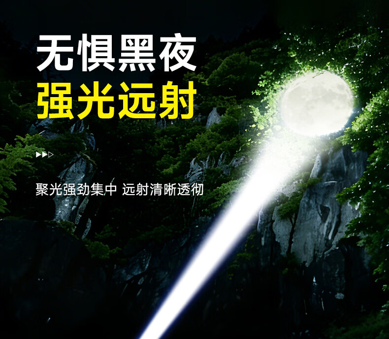 奥克斯(AUX)手电筒强光超亮长续航野外生存变焦军小型便携家专用穿天炮应急灯 【穿天炮】铝合金+变焦+2200毫安*2