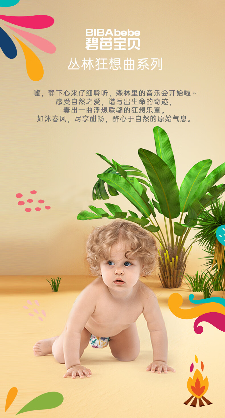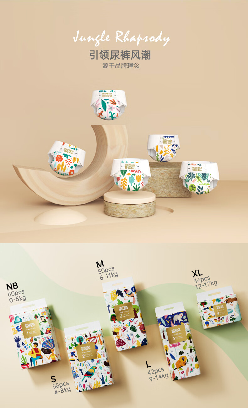 碧芭宝贝【会员专享】丛林狂想曲纸尿裤婴儿成长裤宝宝加大号尿不湿薄透气 纸尿裤S58片*2包(4-8kg)