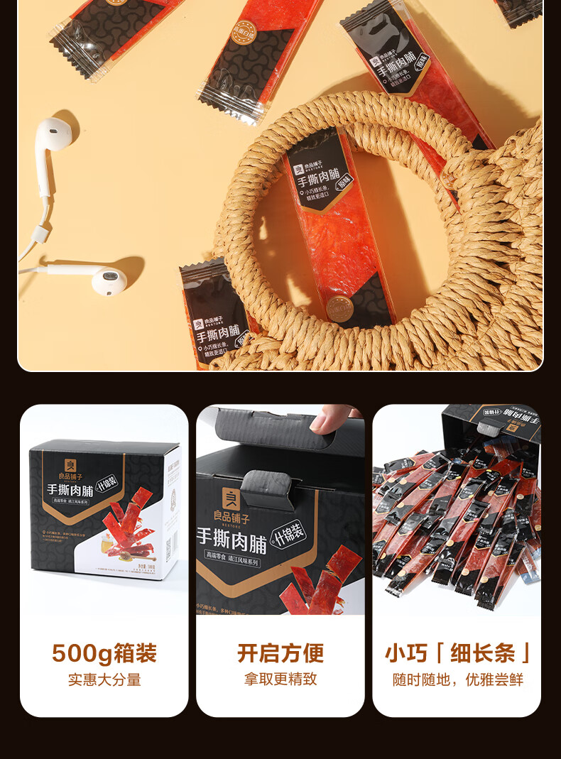 良品铺子什锦手撕肉片脯500g约70包 烤肉猪肉脯高蛋白肉脯肉干 休闲零食
