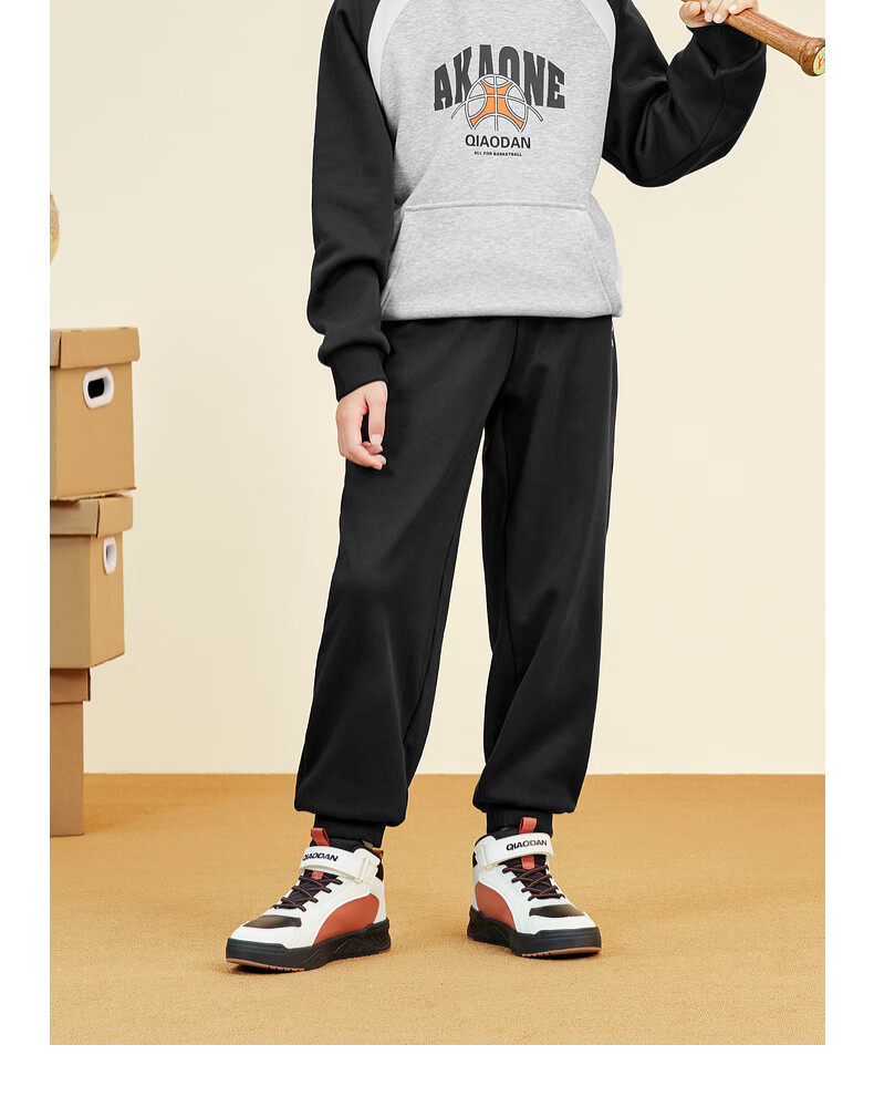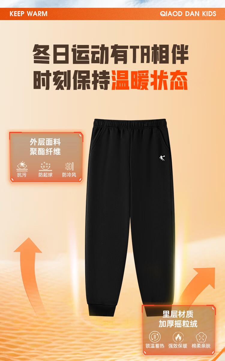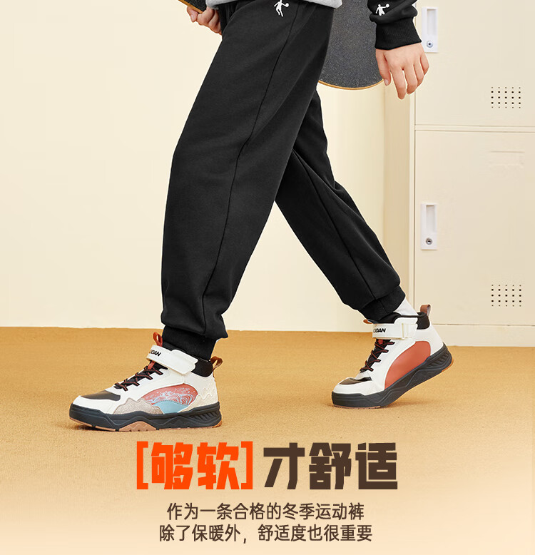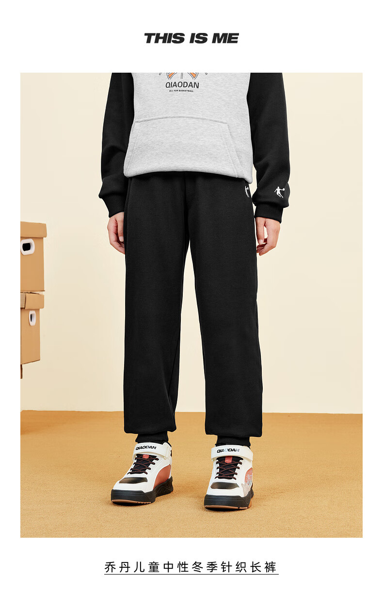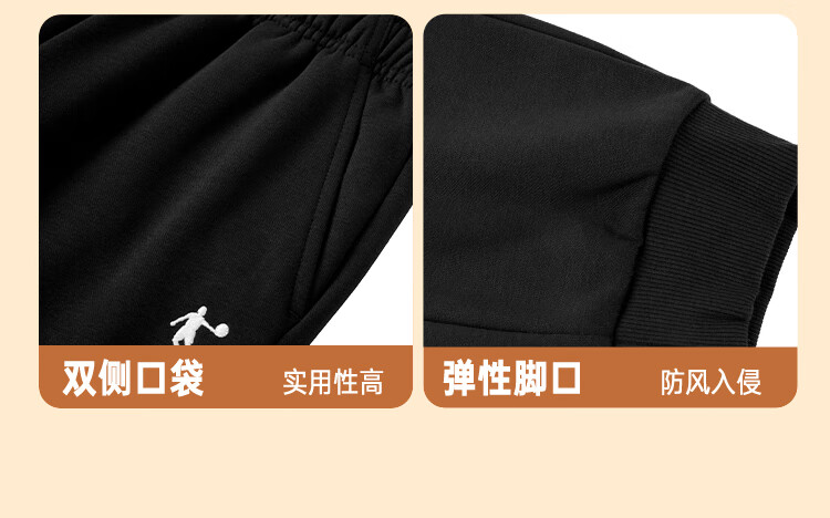 乔丹男女童同款加绒长裤冬季全码儿童运动裤子束脚童裤 黑色 170
