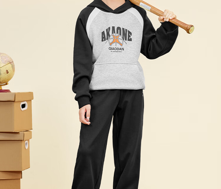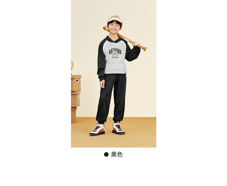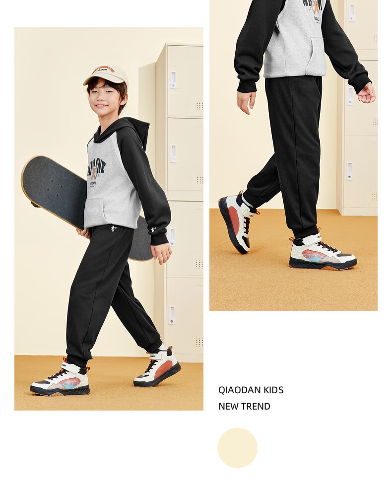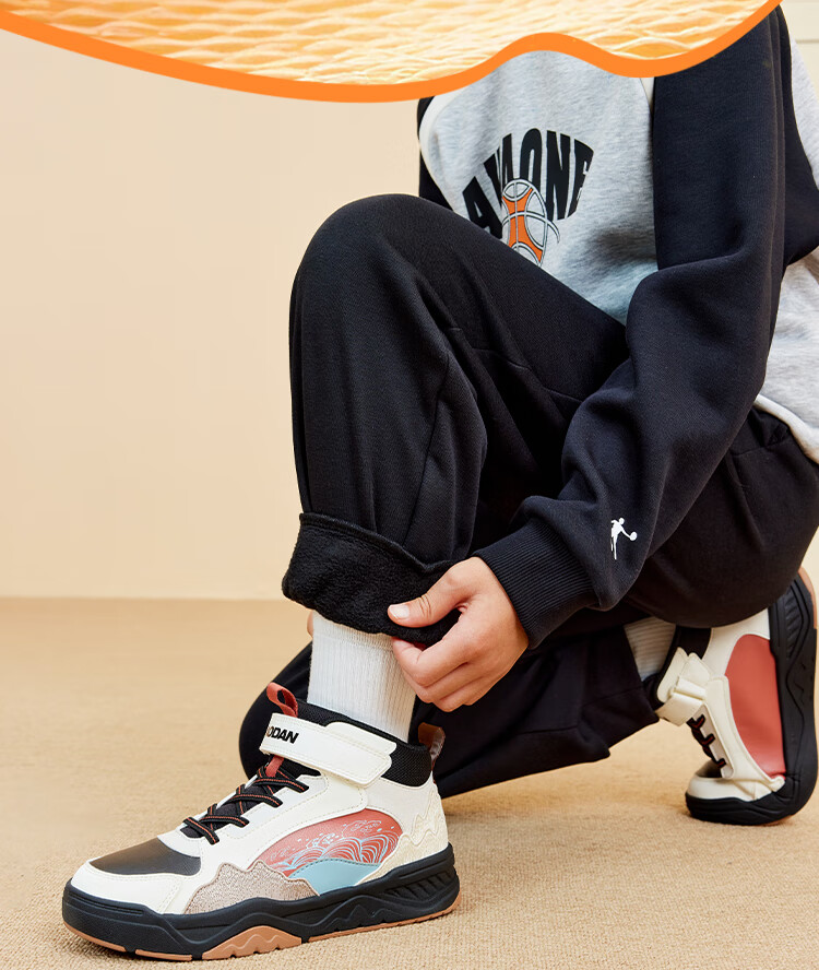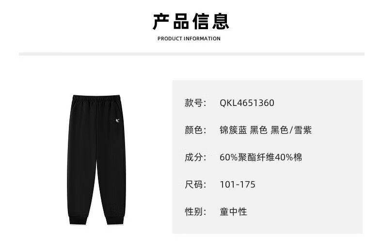 乔丹男女童同款加绒长裤冬季全码儿童运动裤子束脚童裤 黑色 170