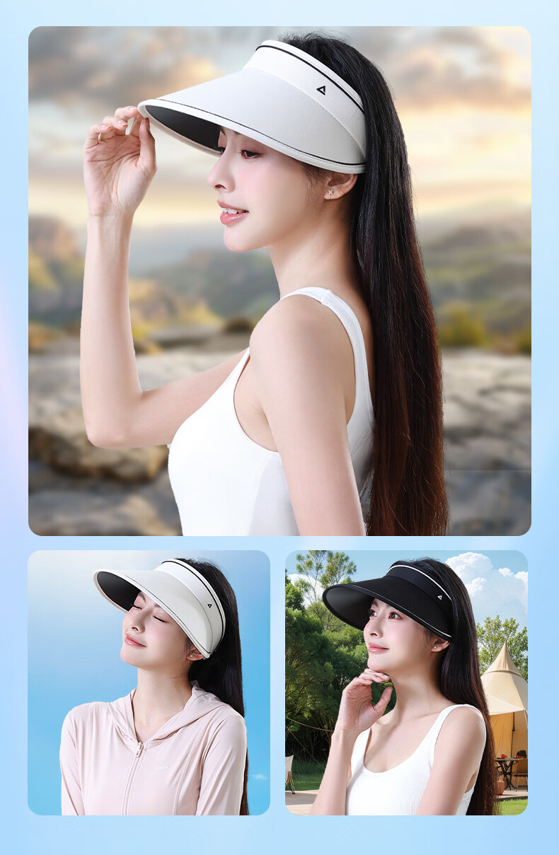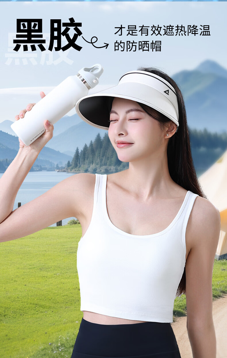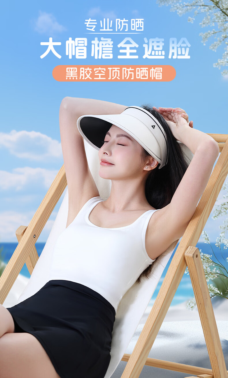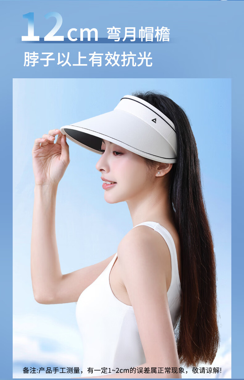 匹克防晒帽子男女夏季遮阳帽防紫外线大帽檐太阳帽户外跑步骑行空顶帽 米白色【UPF50+】升级加宽大帽檐