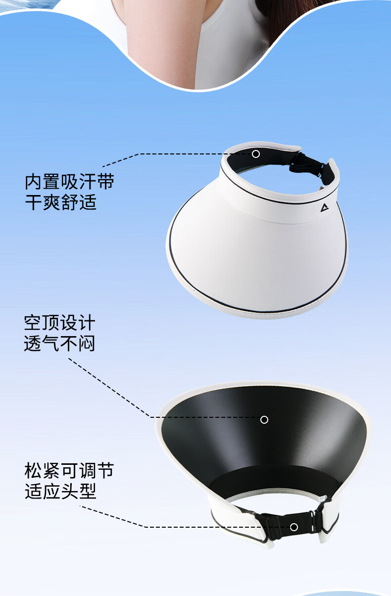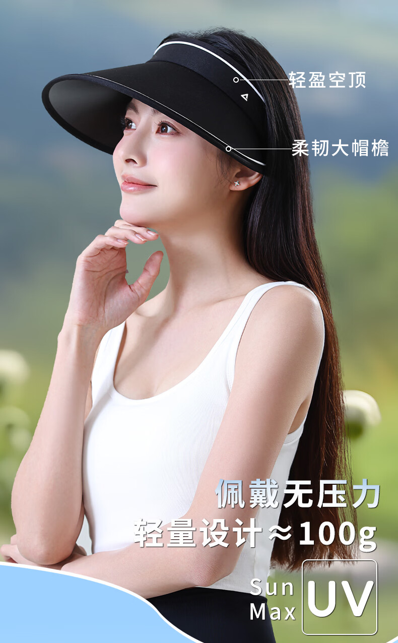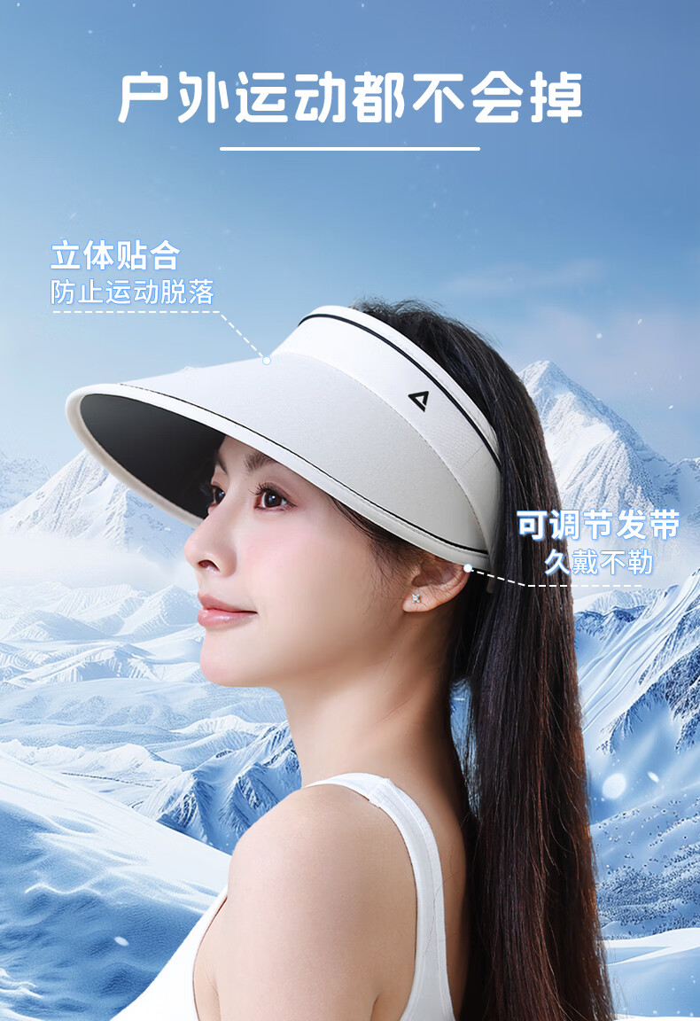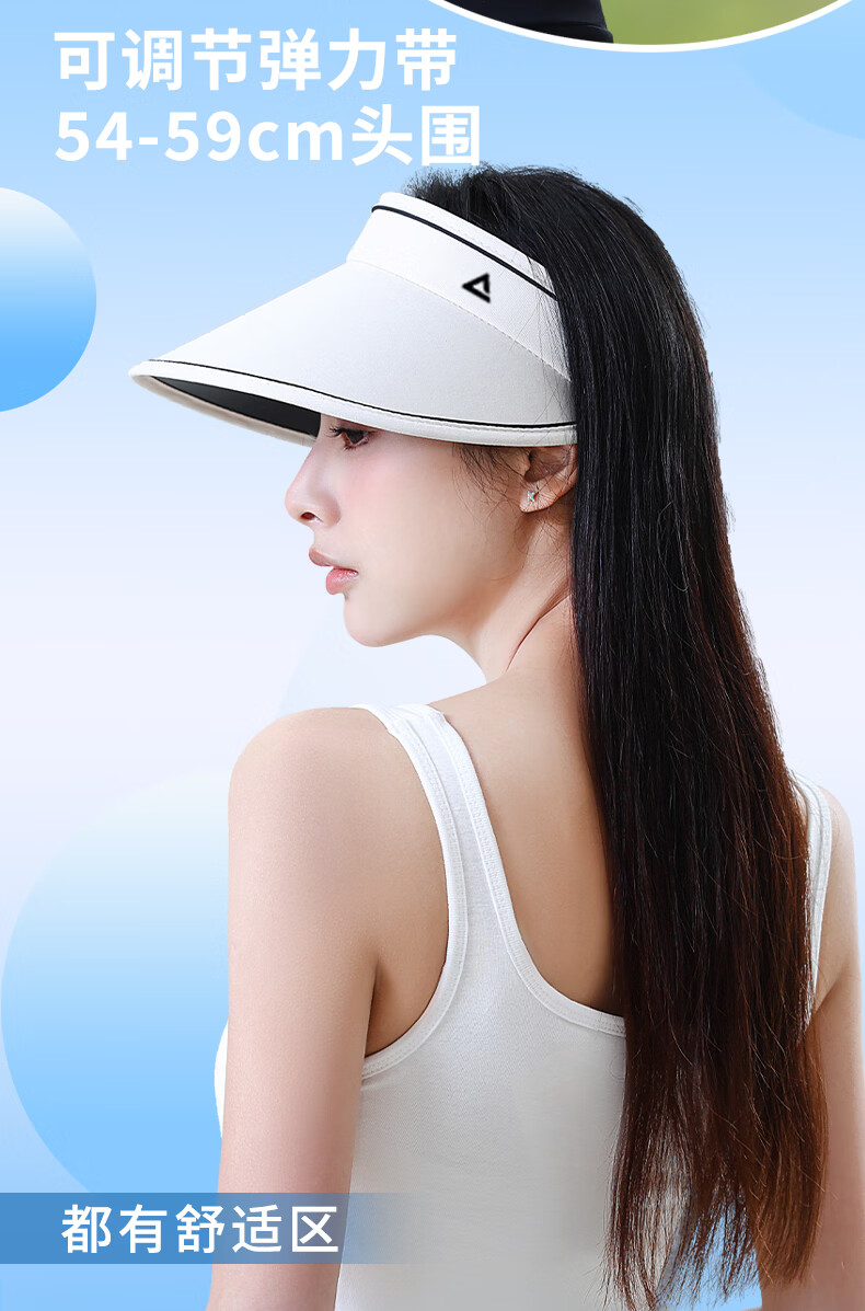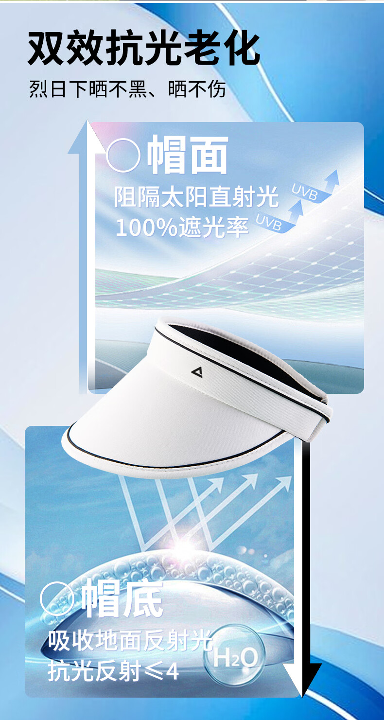 匹克防晒帽子男女夏季遮阳帽防紫外线大帽檐太阳帽户外跑步骑行空顶帽 米白色【UPF50+】升级加宽大帽檐