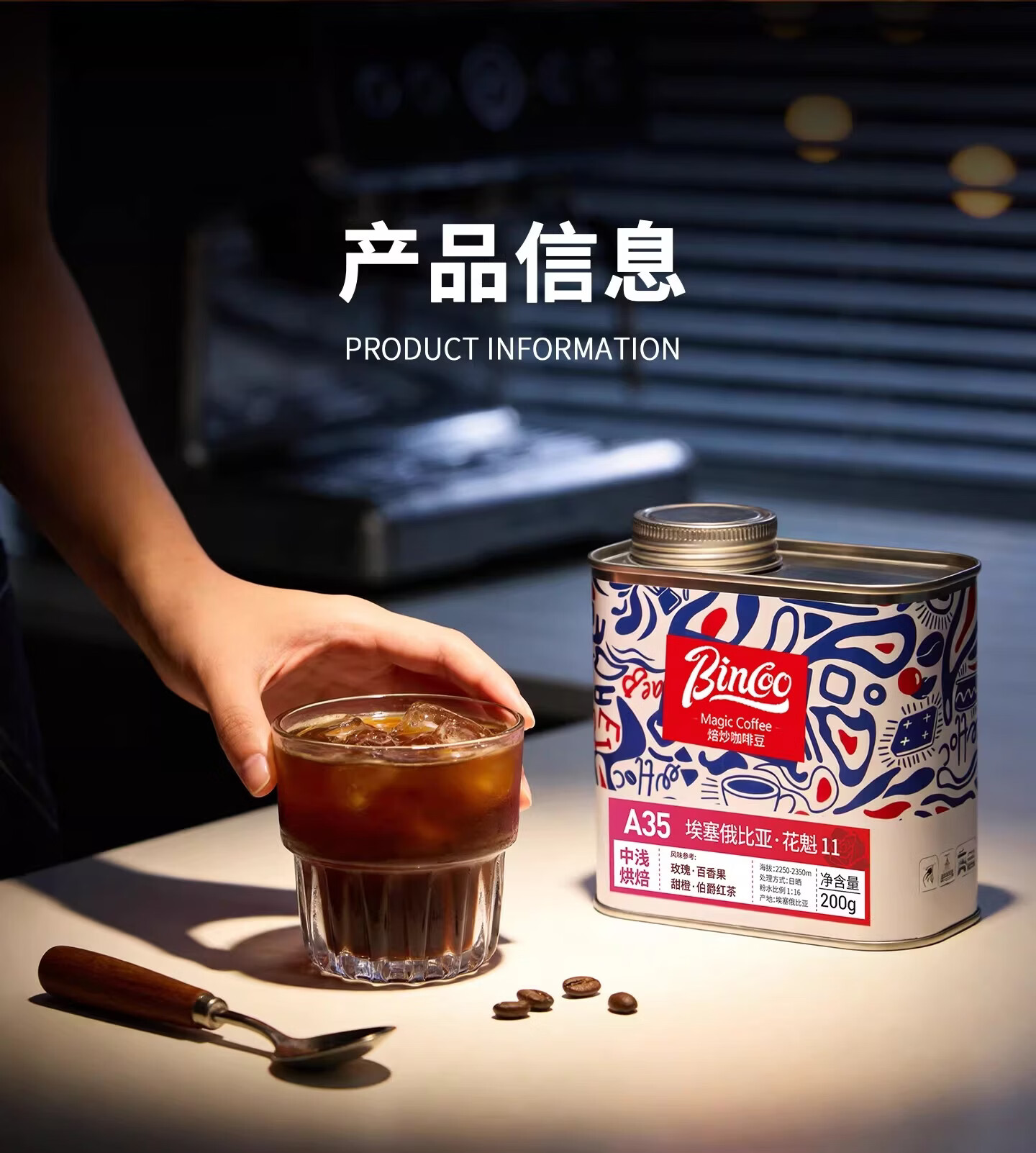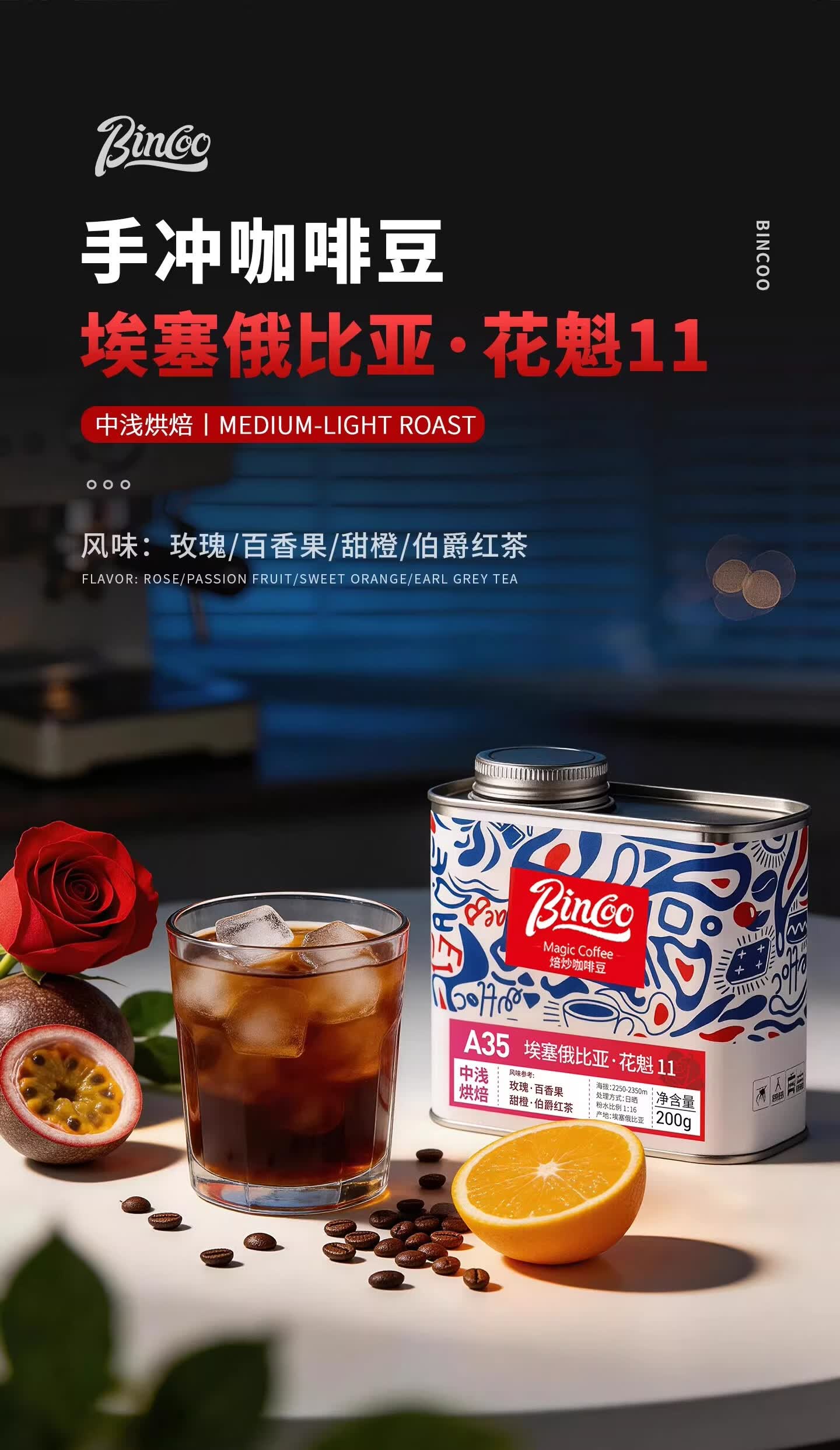 Bincoo罐装果香埃塞俄比亚花魁11咖啡豆阿拉比卡咖啡熟豆 花魁11 A35 35g 中浅烘焙