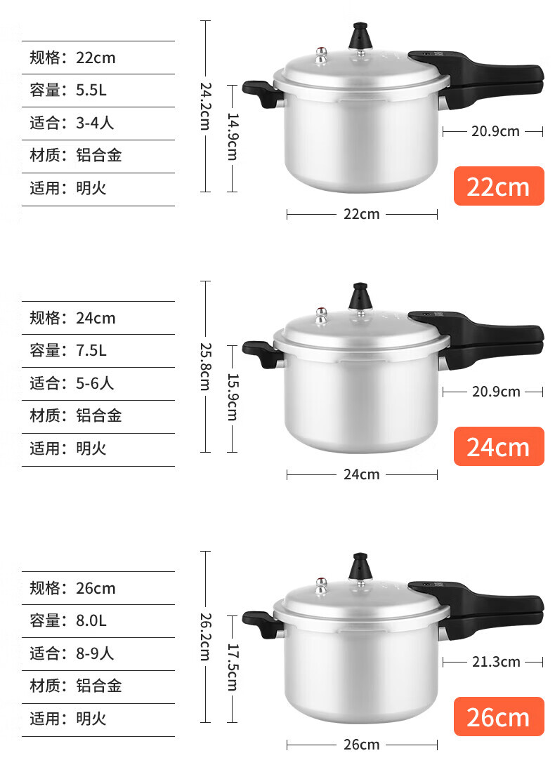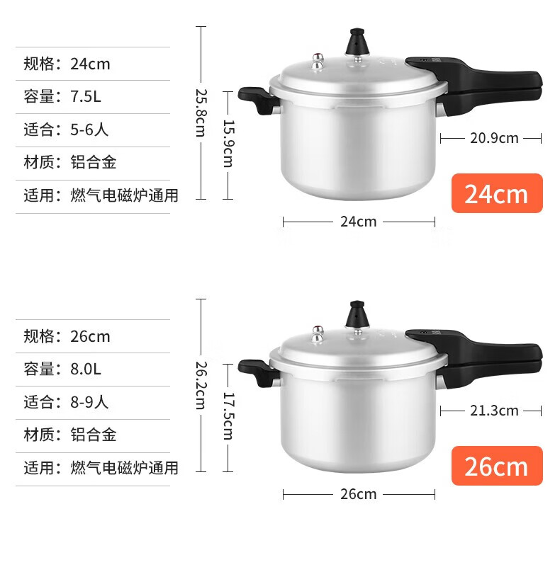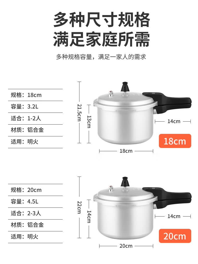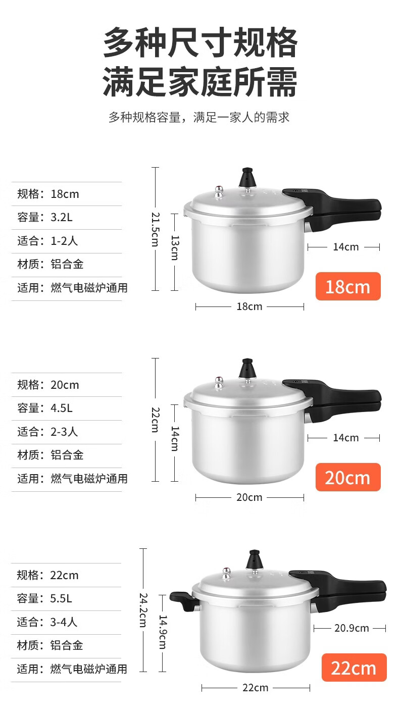 双喜 高压锅压力锅燃气明火电磁炉通用复底铝合金家用锅具安全防爆 燃气专用/1-2人/3.2L 18cm