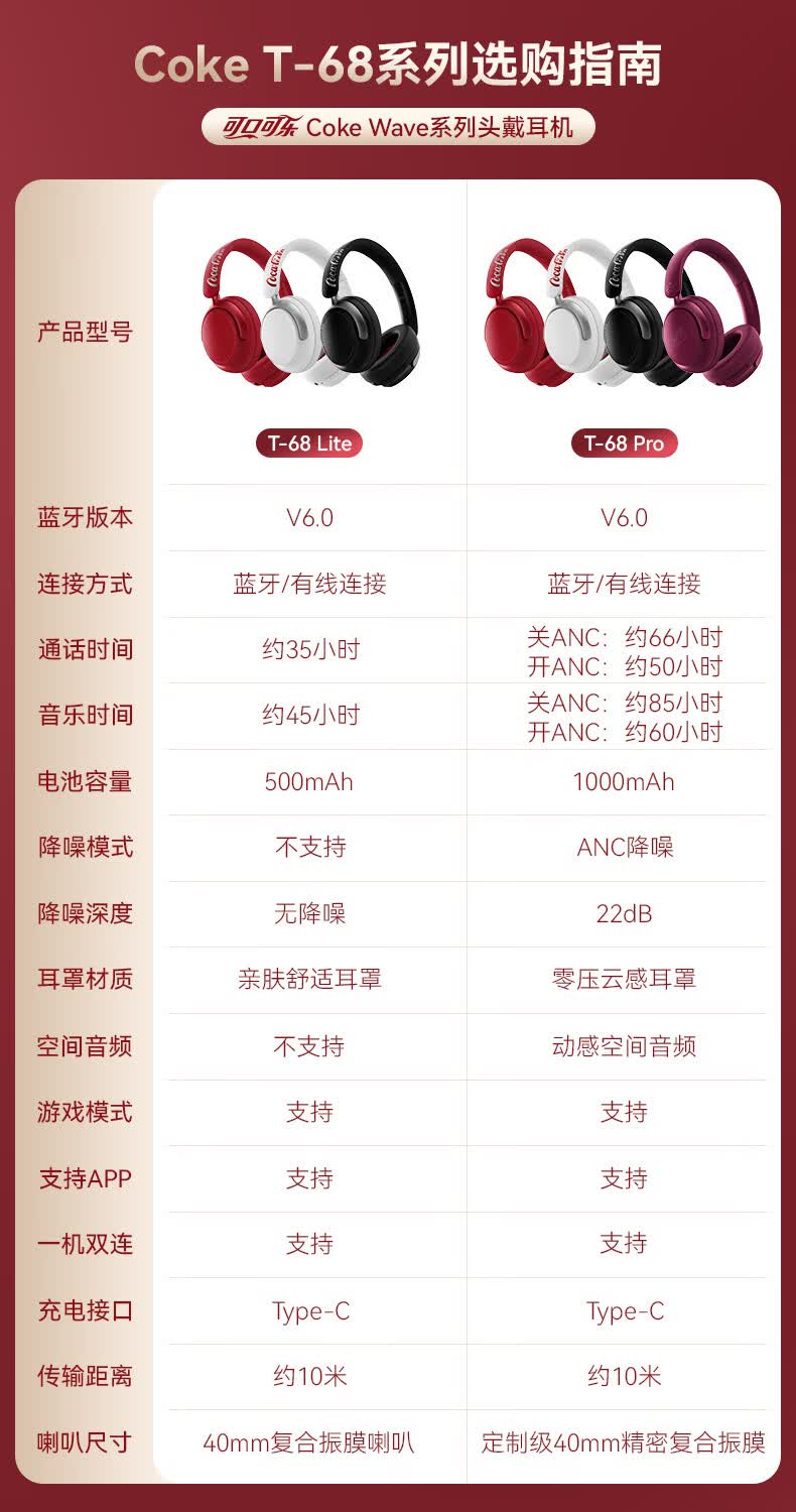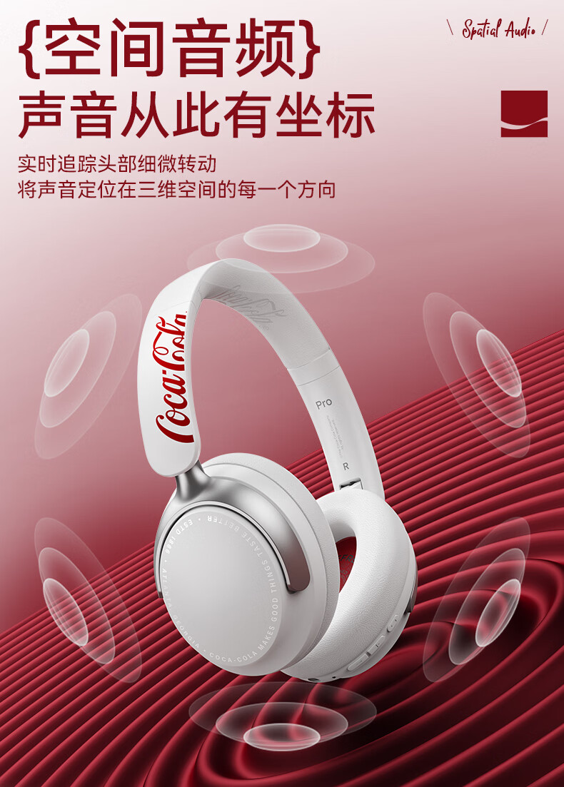 可口可乐【2026最新款丨旗舰顶配】T-68 Pro蓝牙耳机头戴式主动降噪空间音频游戏电竞运动无线长续航AI耳机