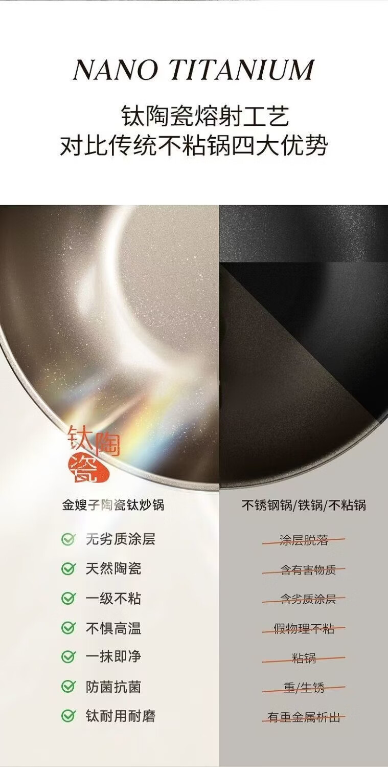 辰居陶瓷钛炒锅不粘锅无油烟家用平底炒菜锅具不沾锅燃气灶电磁炉专用 30CM含钛陶瓷不粘【有盖】送木铲海绵 30cm