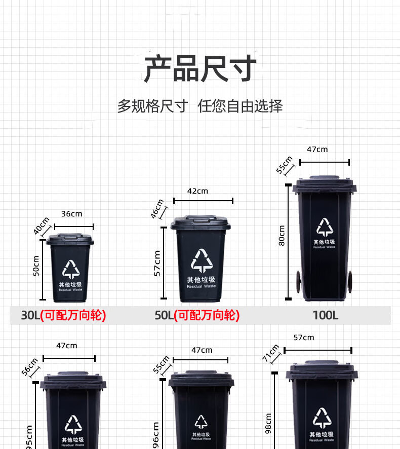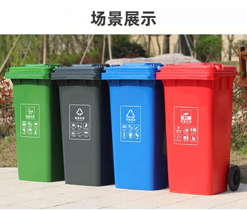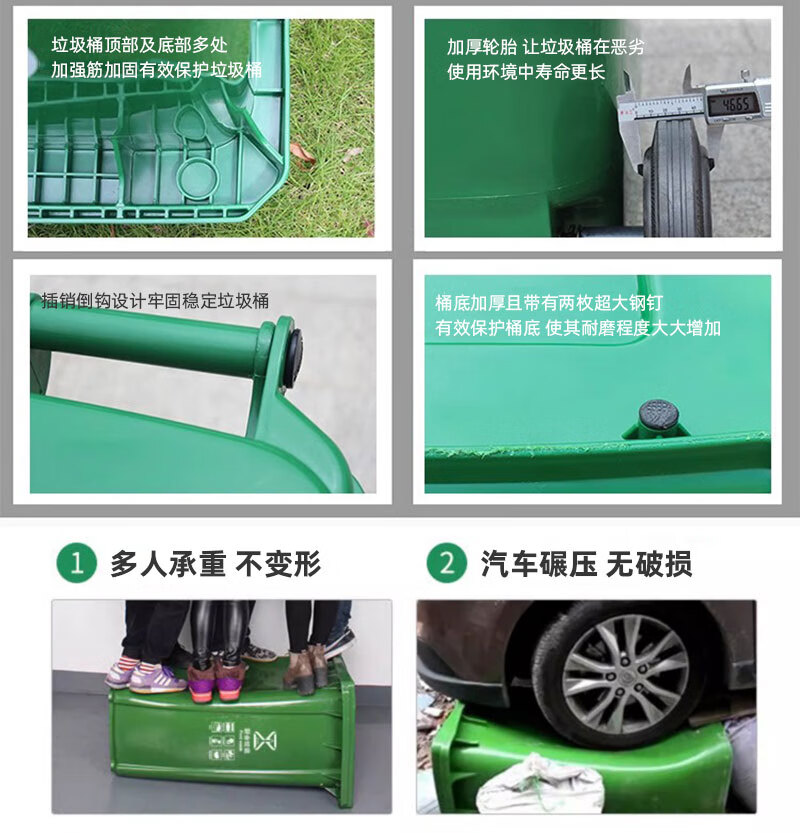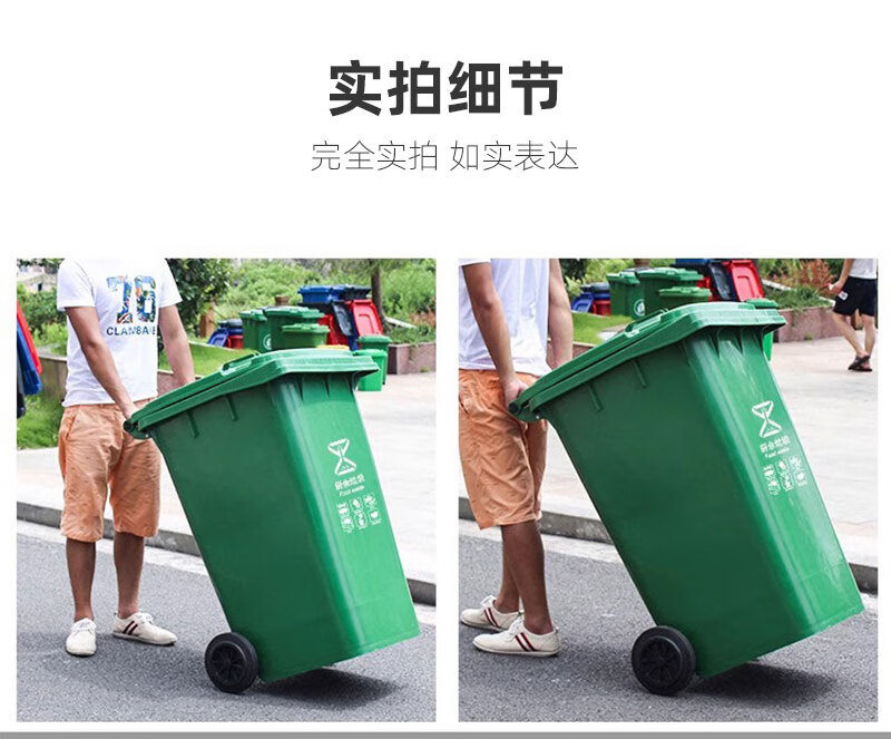香夏大垃圾桶大号户外环卫翻盖带轮酒店厨房物业餐饮垃圾分类垃圾箱 升级款50L 绿色