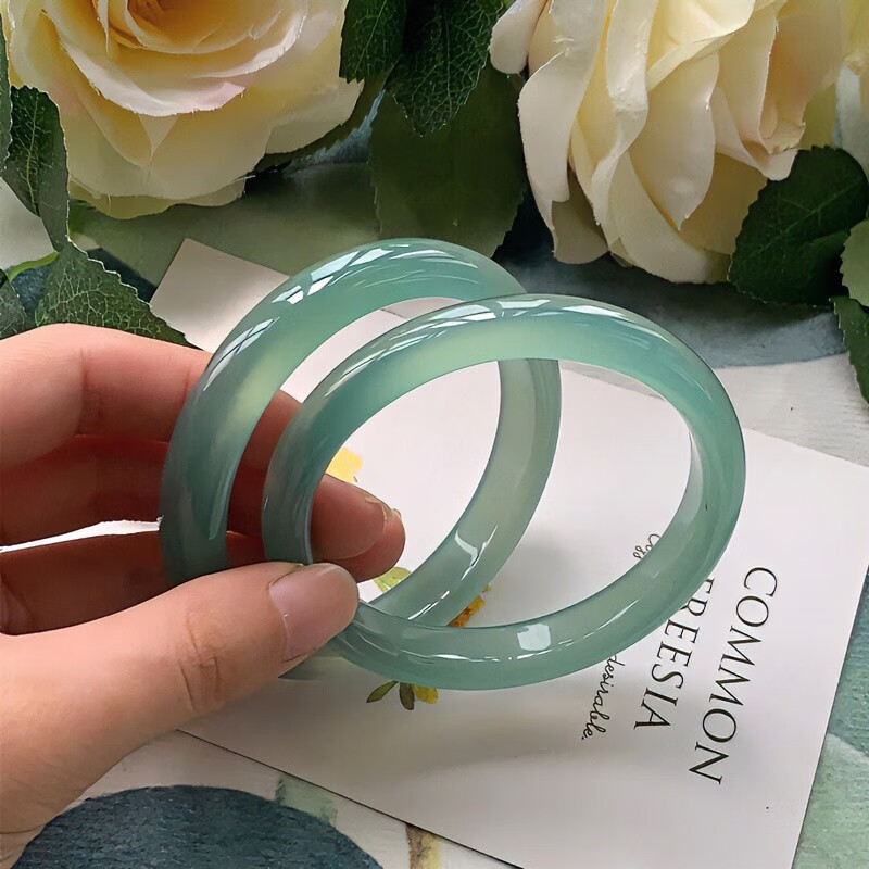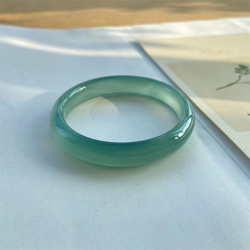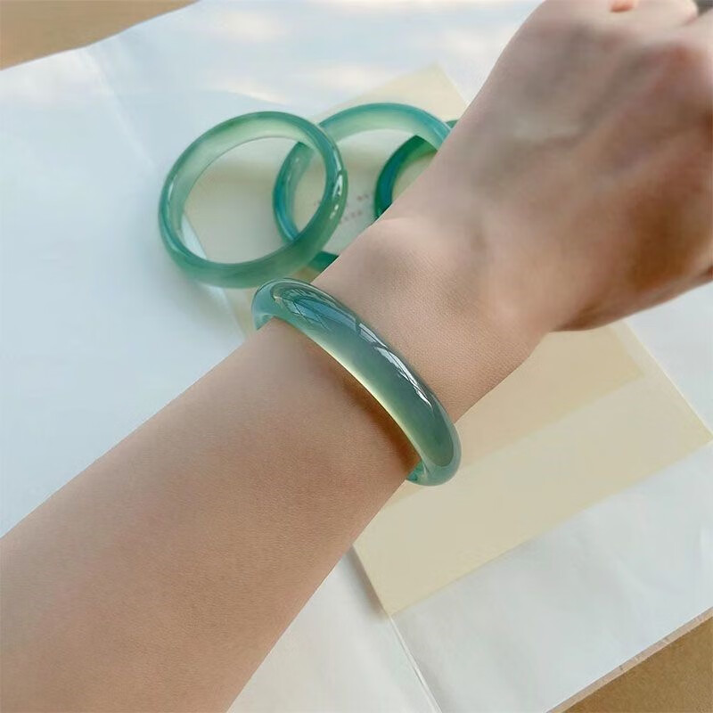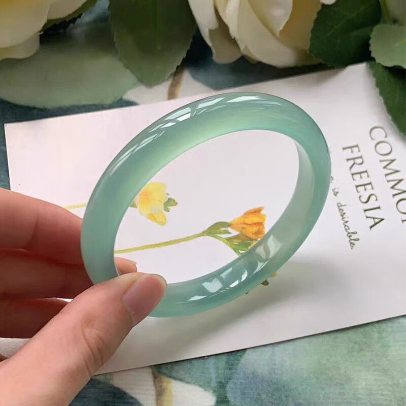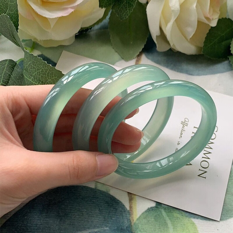子龙青山黛扁条手镯梅子青冰油玛瑙玉髓青绿色青提啵啵玉石玉镯多样性 手镯 63-64