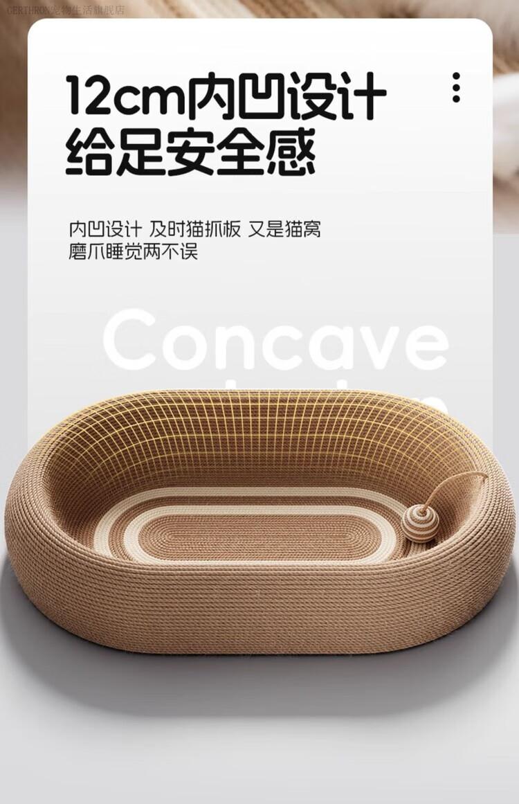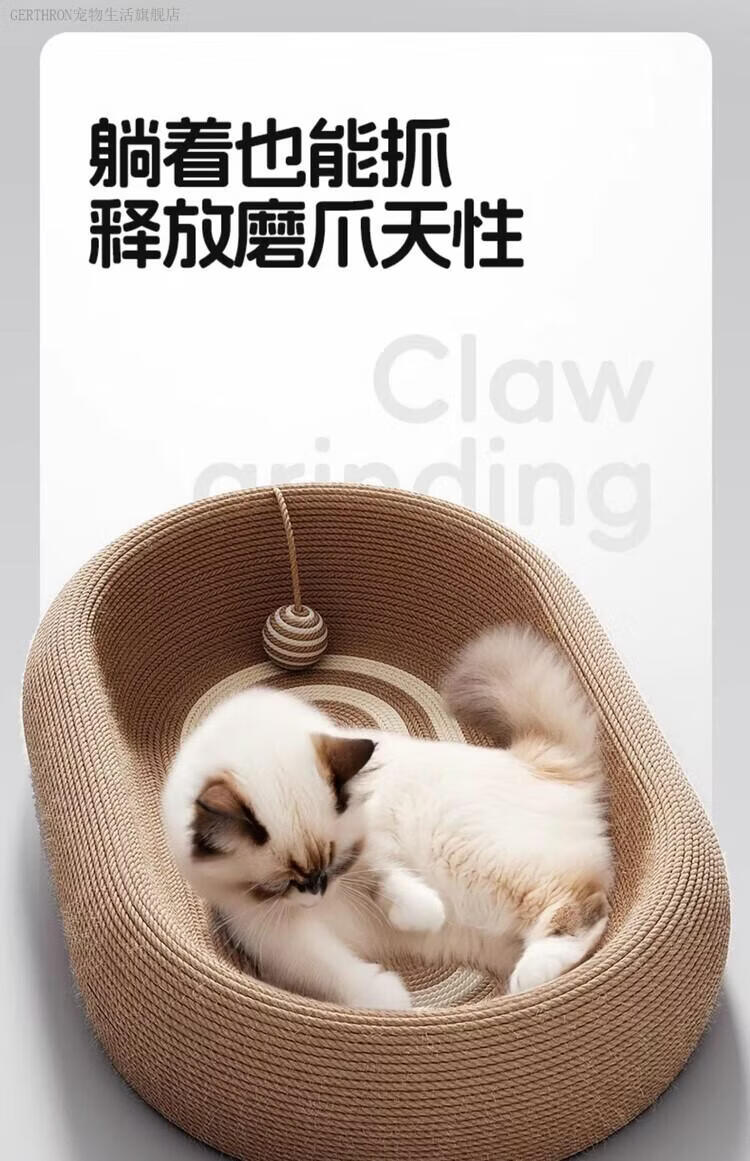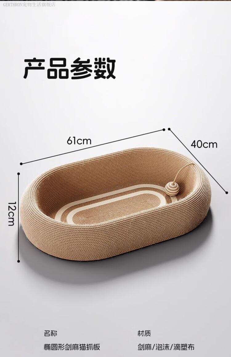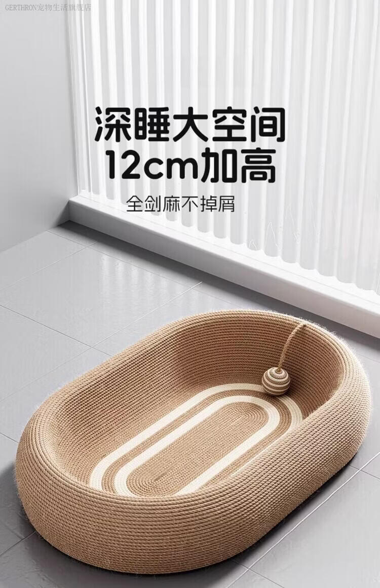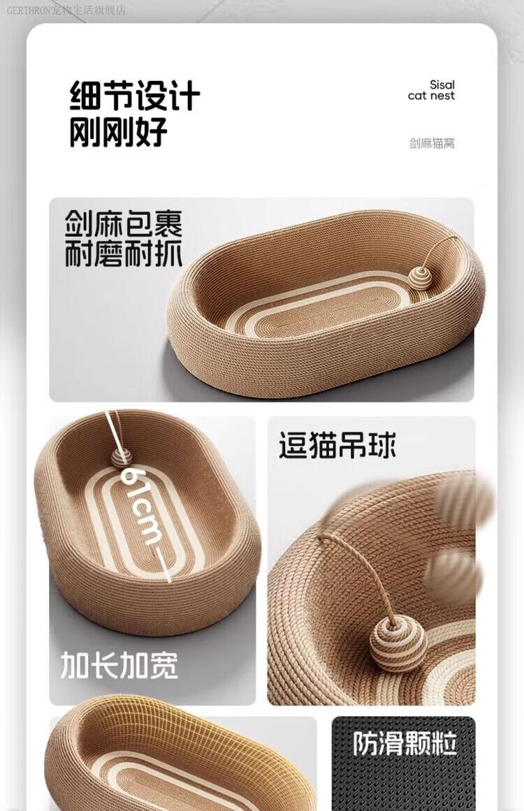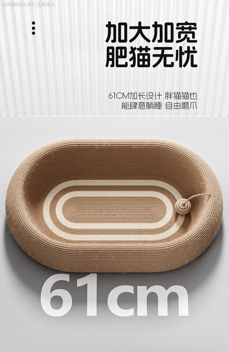 GERTHRON剑麻猫抓板窝耐磨不掉屑耐抓四季通用大号猫咪猫爪板猫窝一体 【2.0深睡】椭圆剑麻猫抓板窝