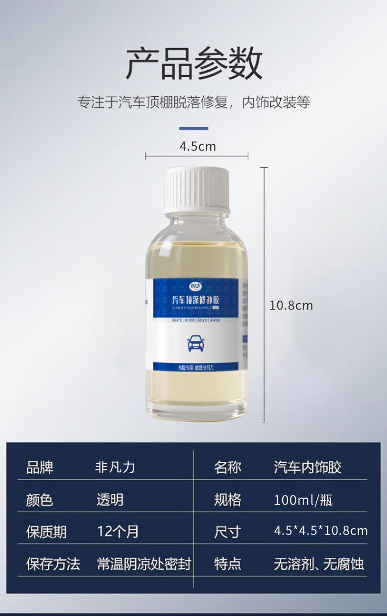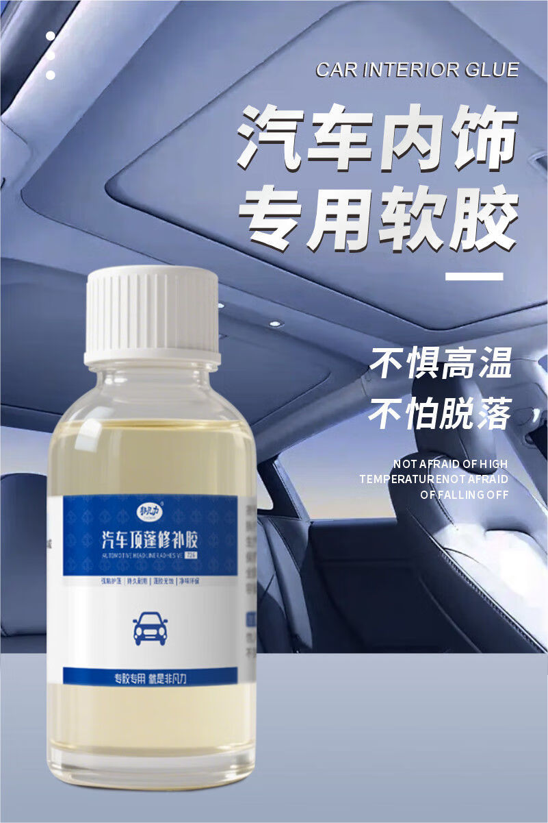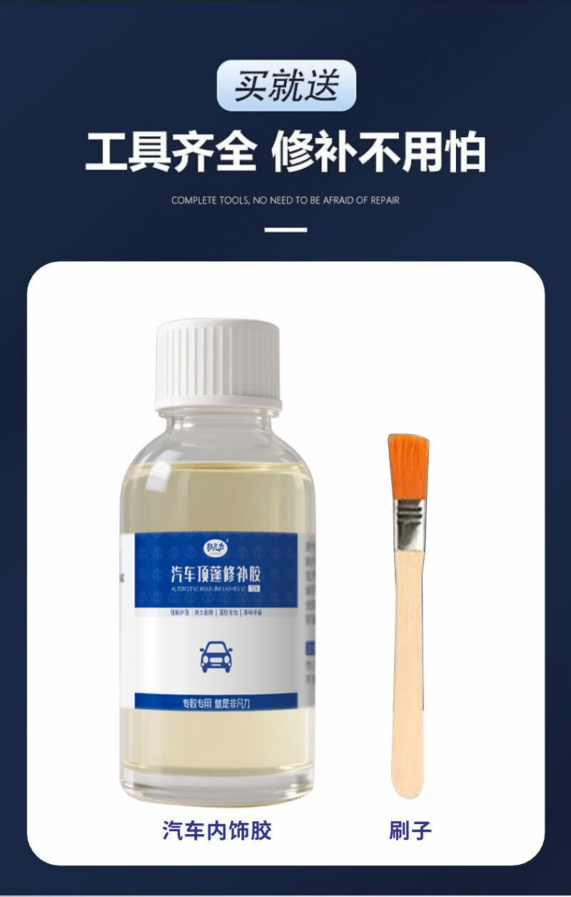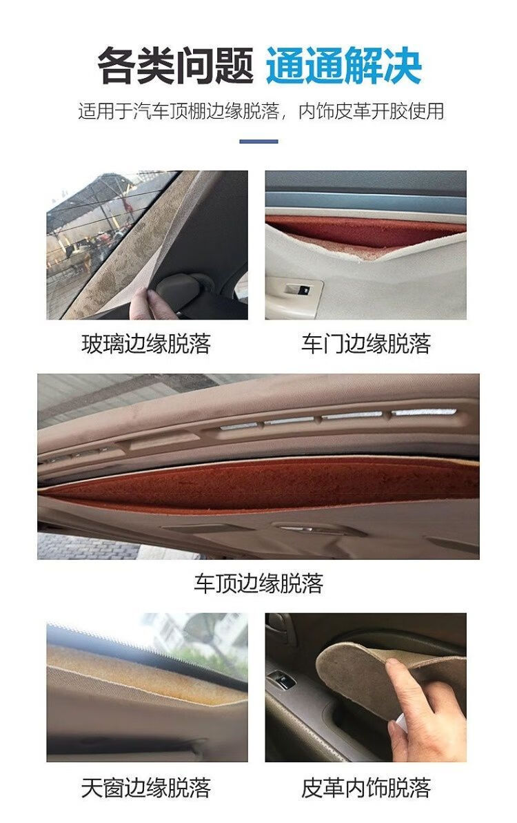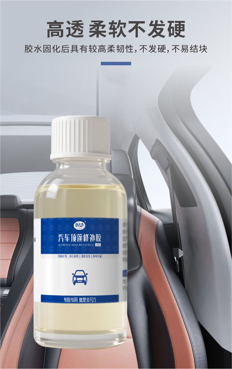 非凡力顶棚修补强力胶水大众奥迪皮革密封胶修复棚布脱落边缘专用软性胶 顶棚修复胶 【升级款】内饰胶100ml*2瓶+刷子