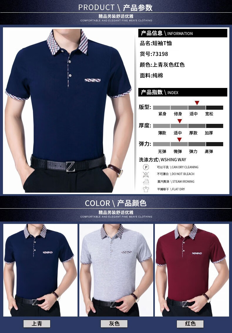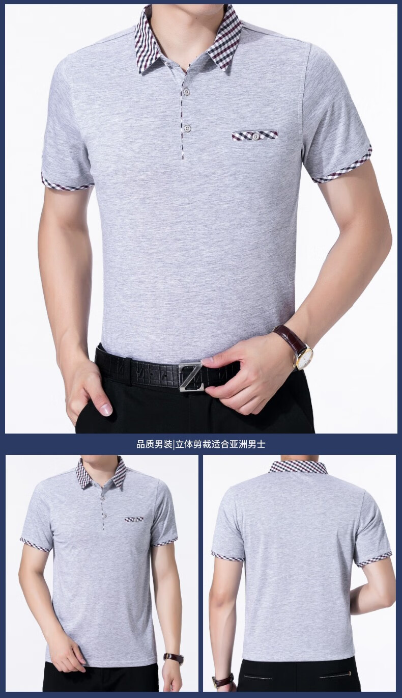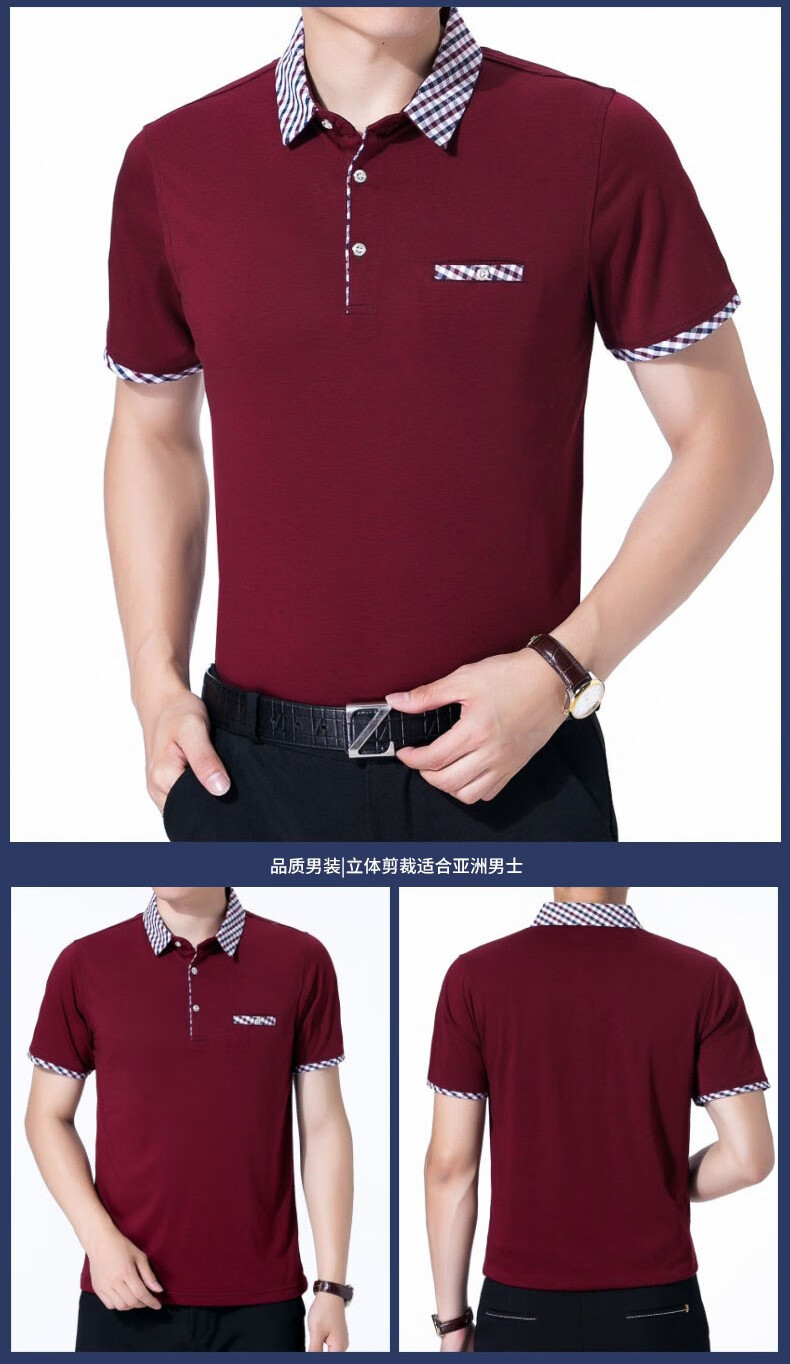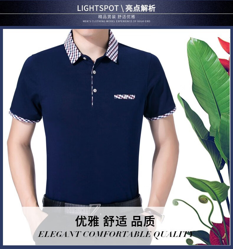 雅鹿男装短袖t恤男翻领夏季男士休闲纯棉真口袋爸爸装 上青 M /165(建议100-120斤)