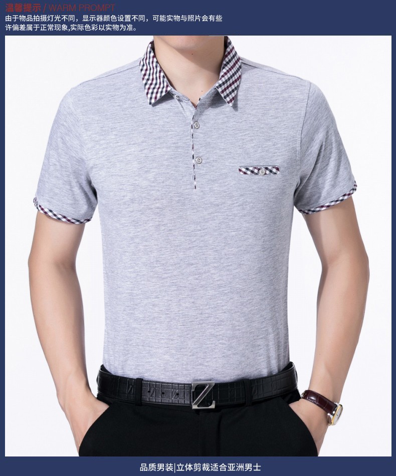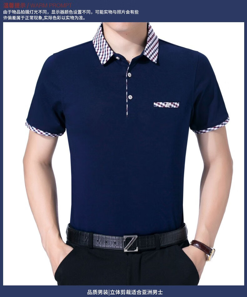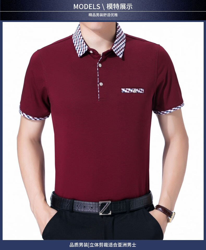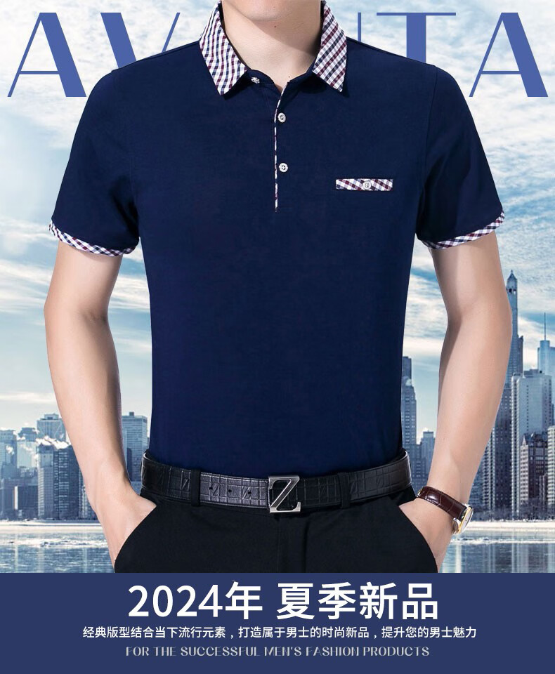 雅鹿男装短袖t恤男翻领夏季男士休闲纯棉真口袋爸爸装 上青 M /165(建议100-120斤)
