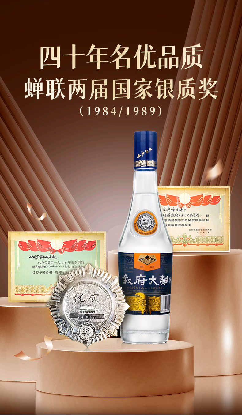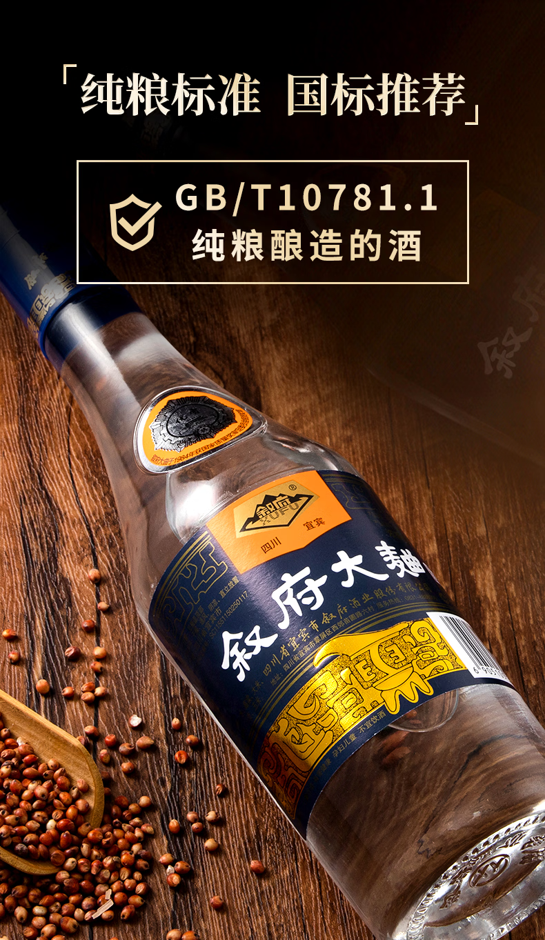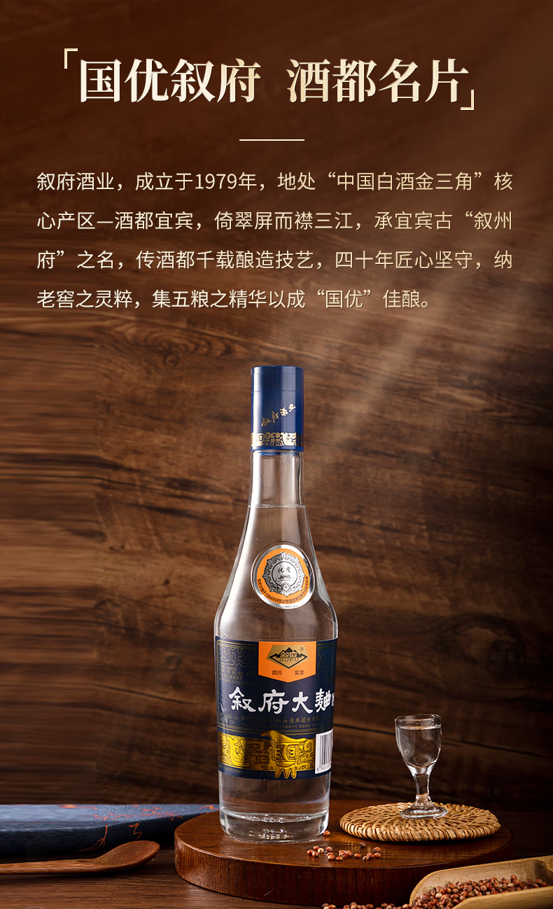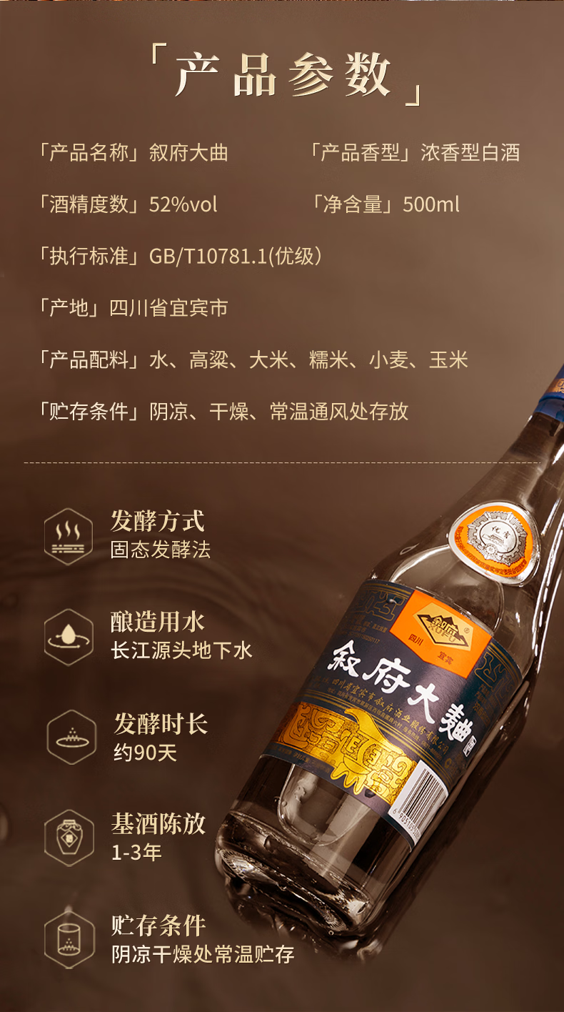 叙府酒 蓝标大曲 五粮浓香型白酒 纯粮食酒 口粮酒 光瓶酒 整箱装 52度 500mL 6瓶 整箱装