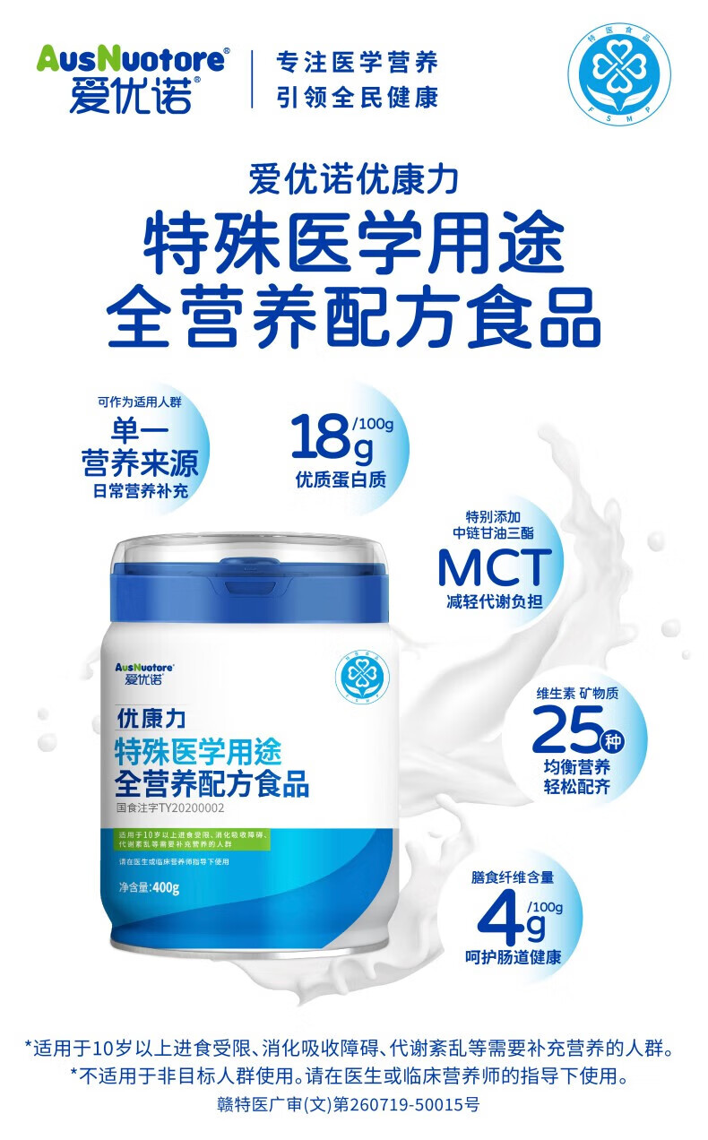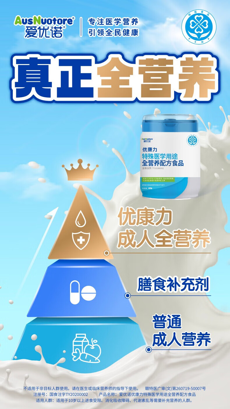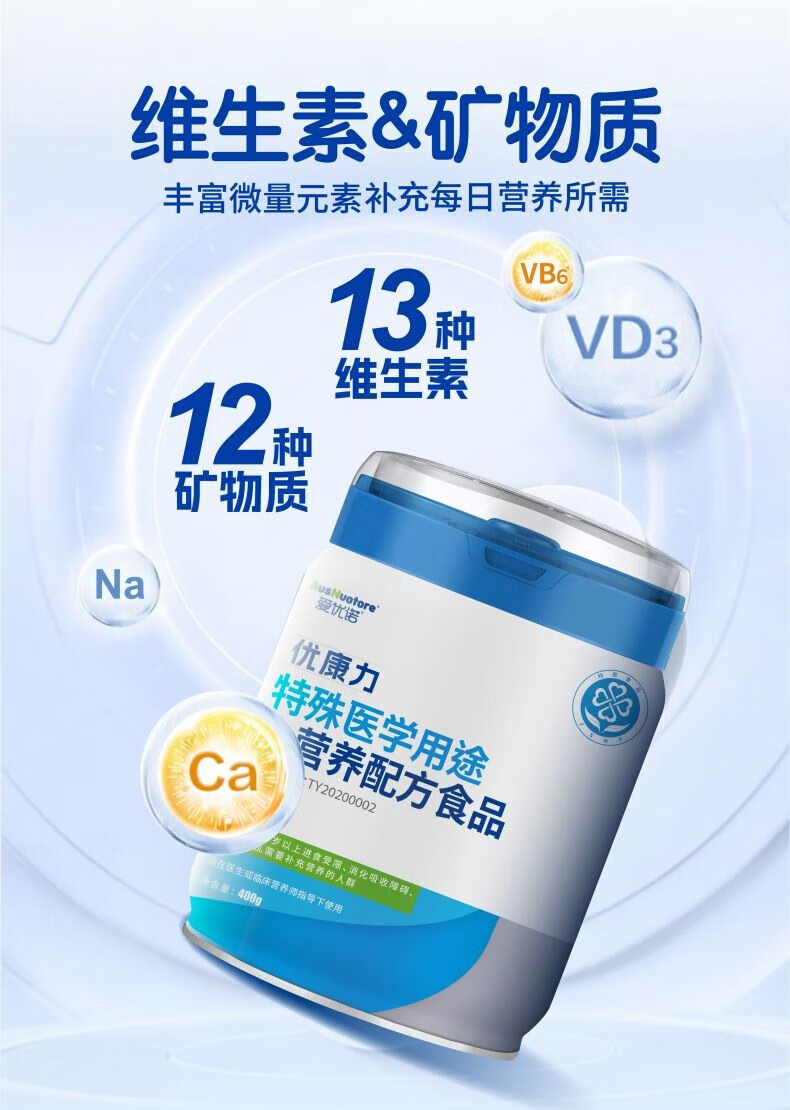 爱优诺(AusNuotore)优康力特殊医学全营养配方粉400g/罐 中老年术后恢复营养送爸妈礼 【买就送】 400g*1罐 术后康复适用