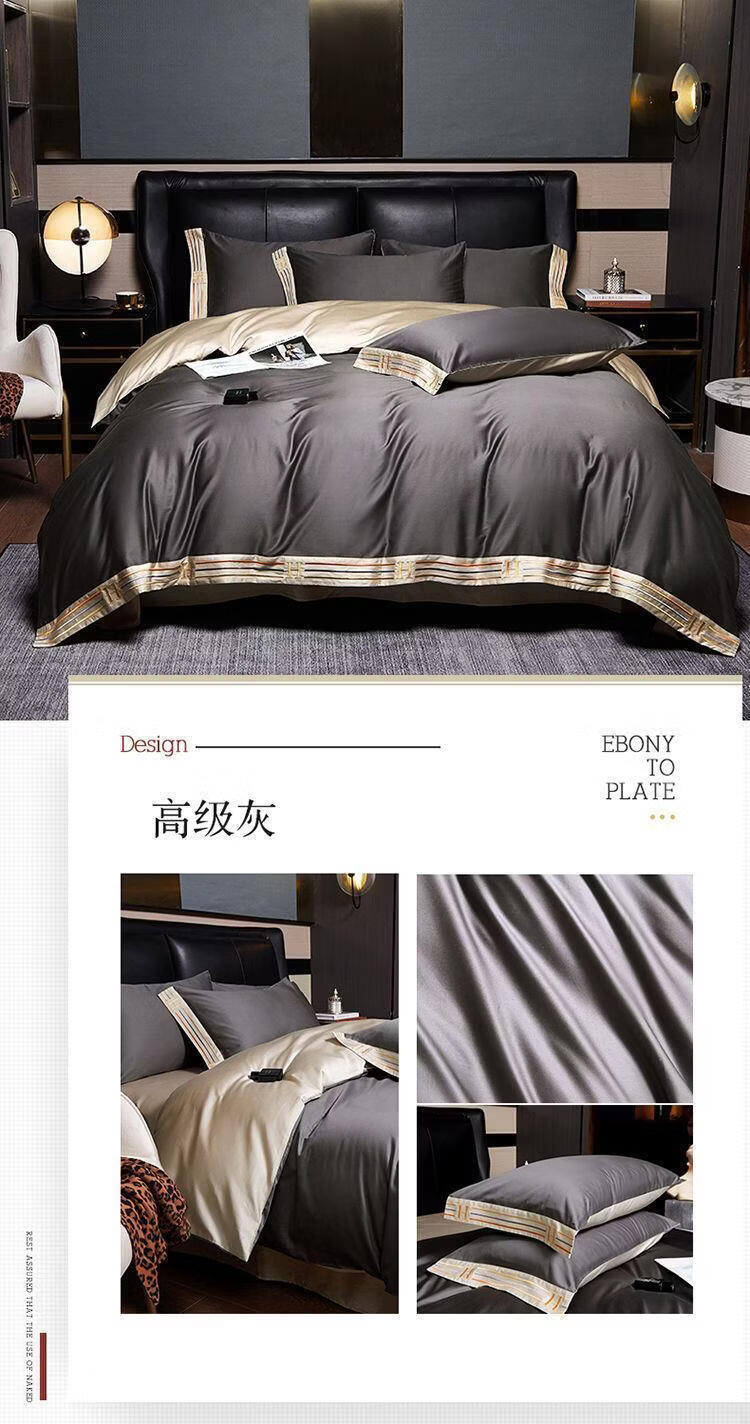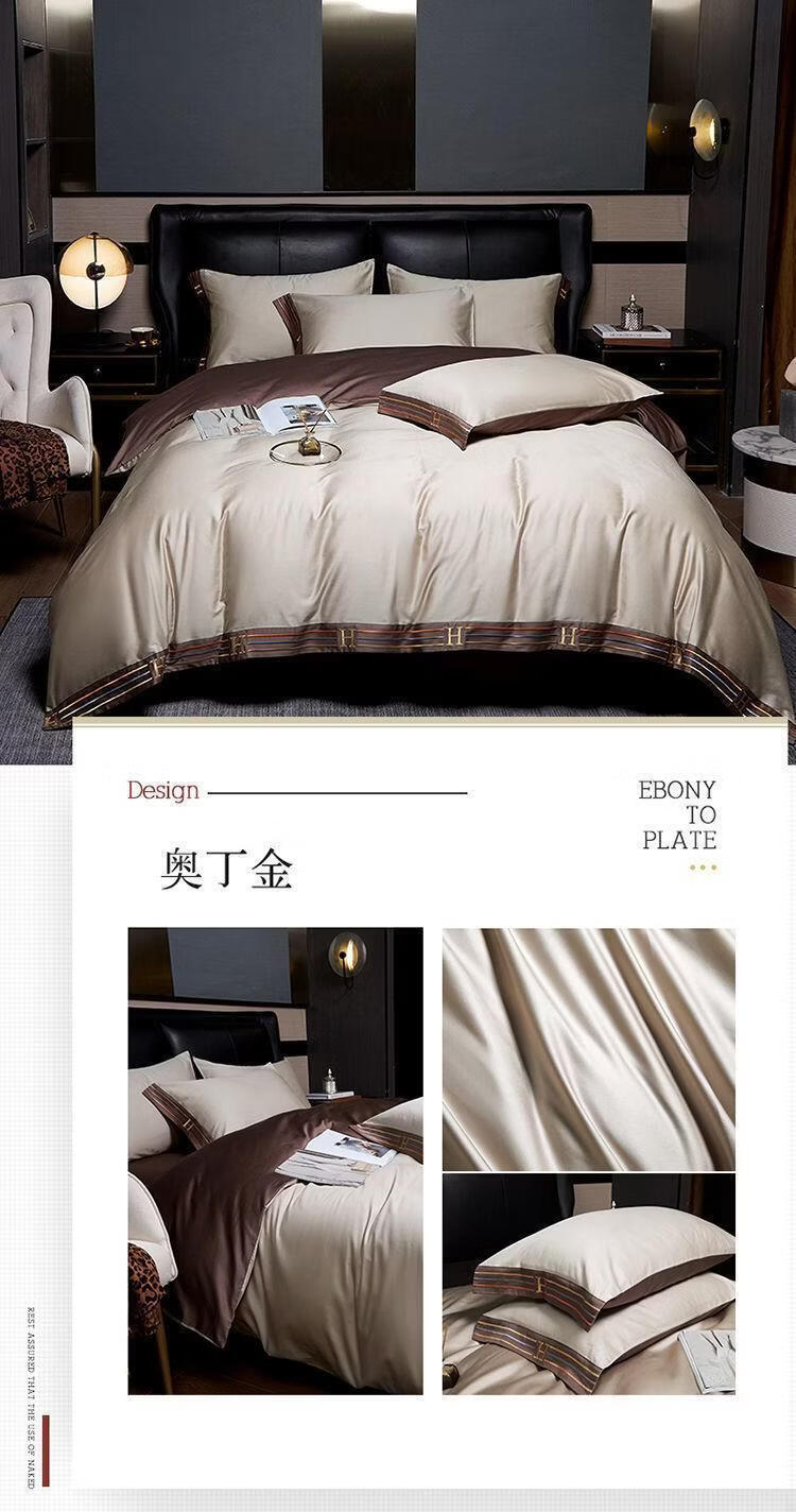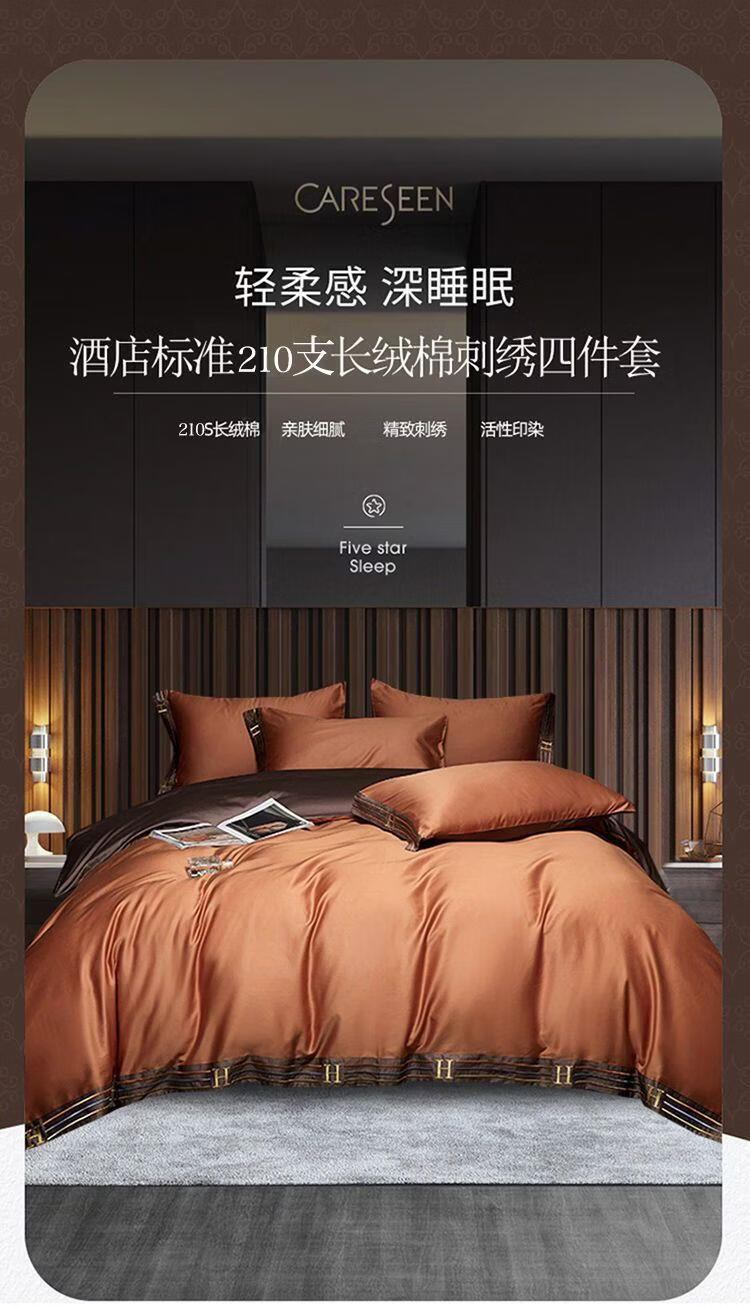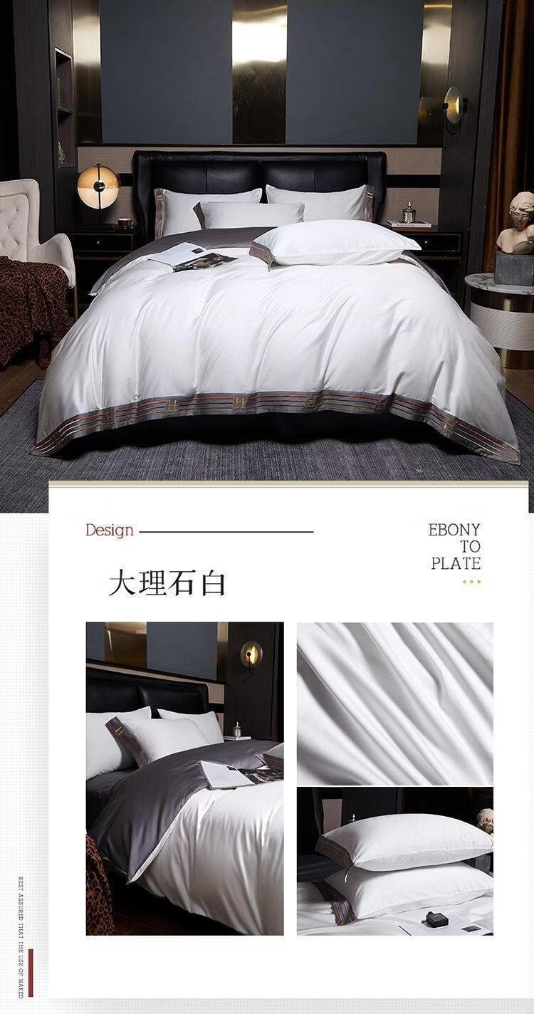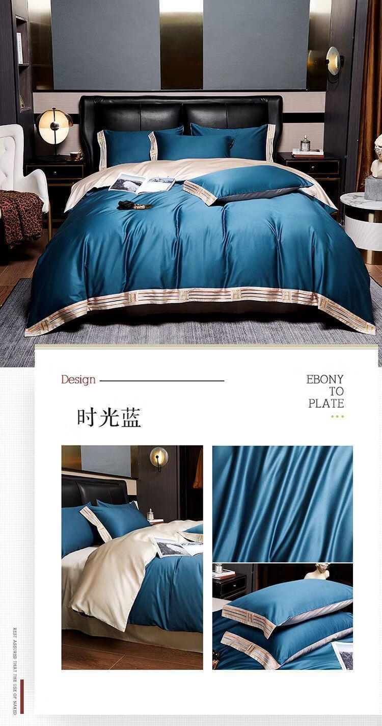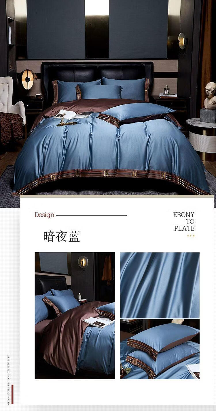 水星系列高档出口加拿大210支长绒棉全棉四件套床单被套床上用品 H-暗夜蓝 【210支双股长绒棉】 加大1.8m床 床笠款 被套220*220cm