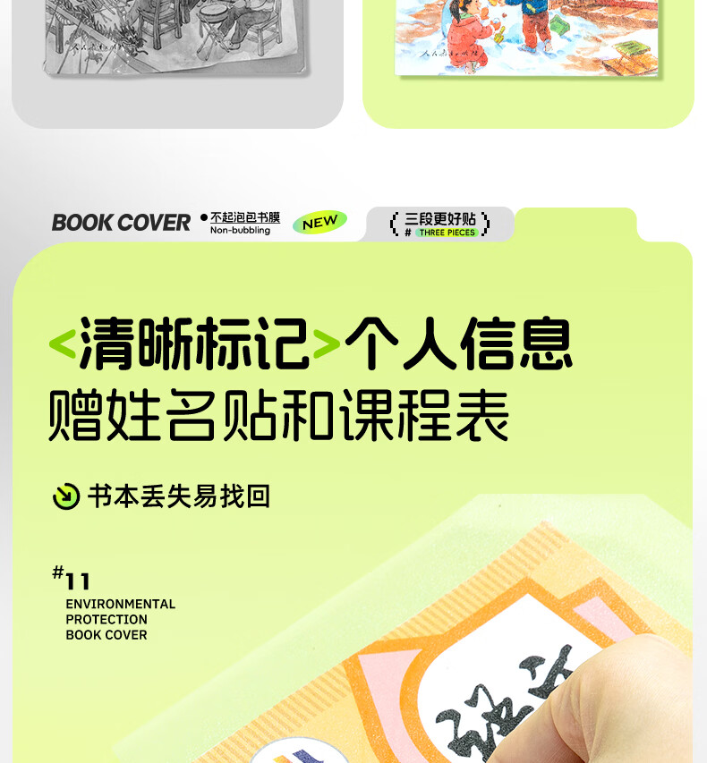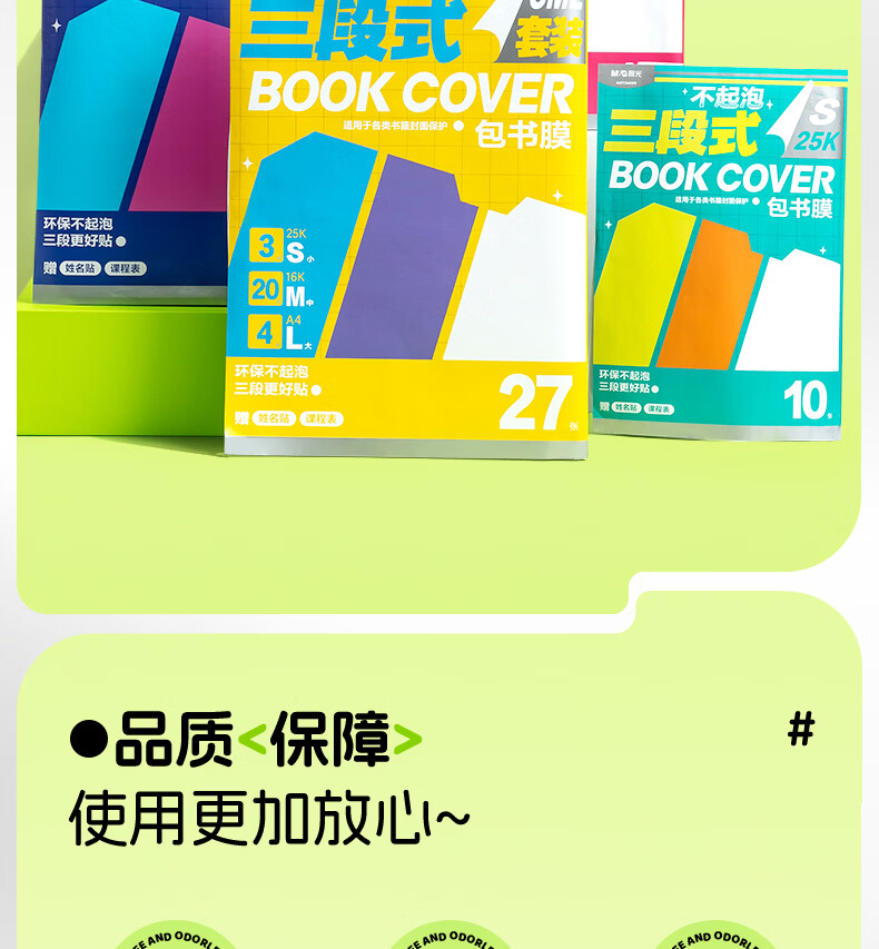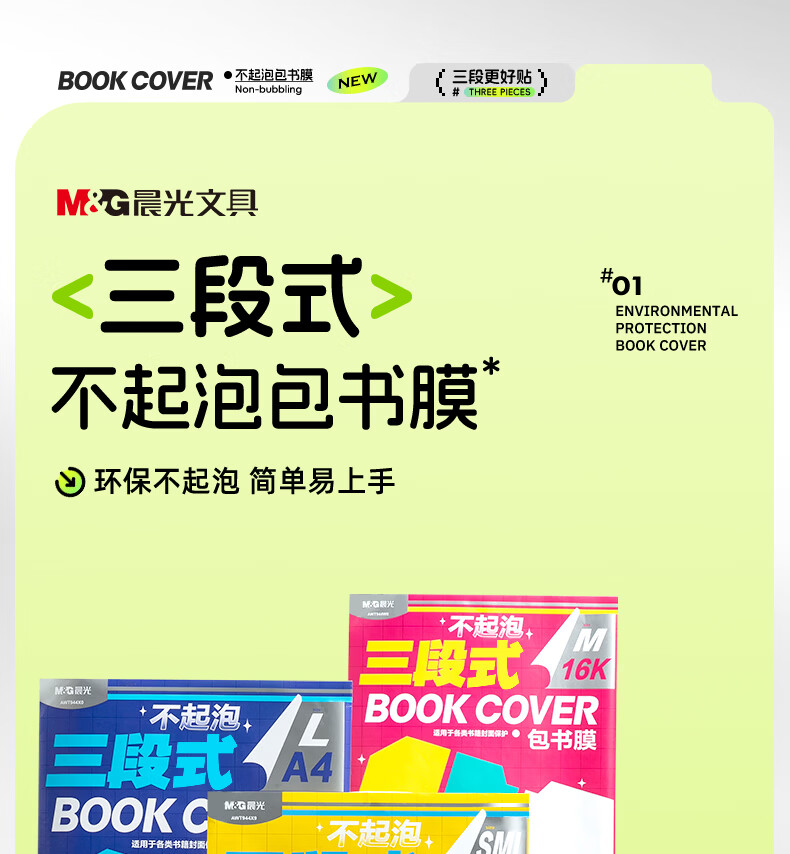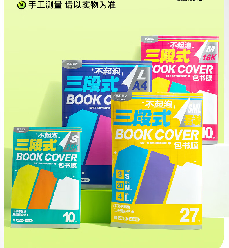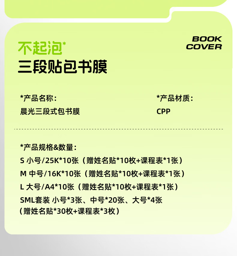 晨光(M&G)文具16K/10张中号不起泡三段式透明自粘包书皮保护套一年级书皮含姓名贴课程表