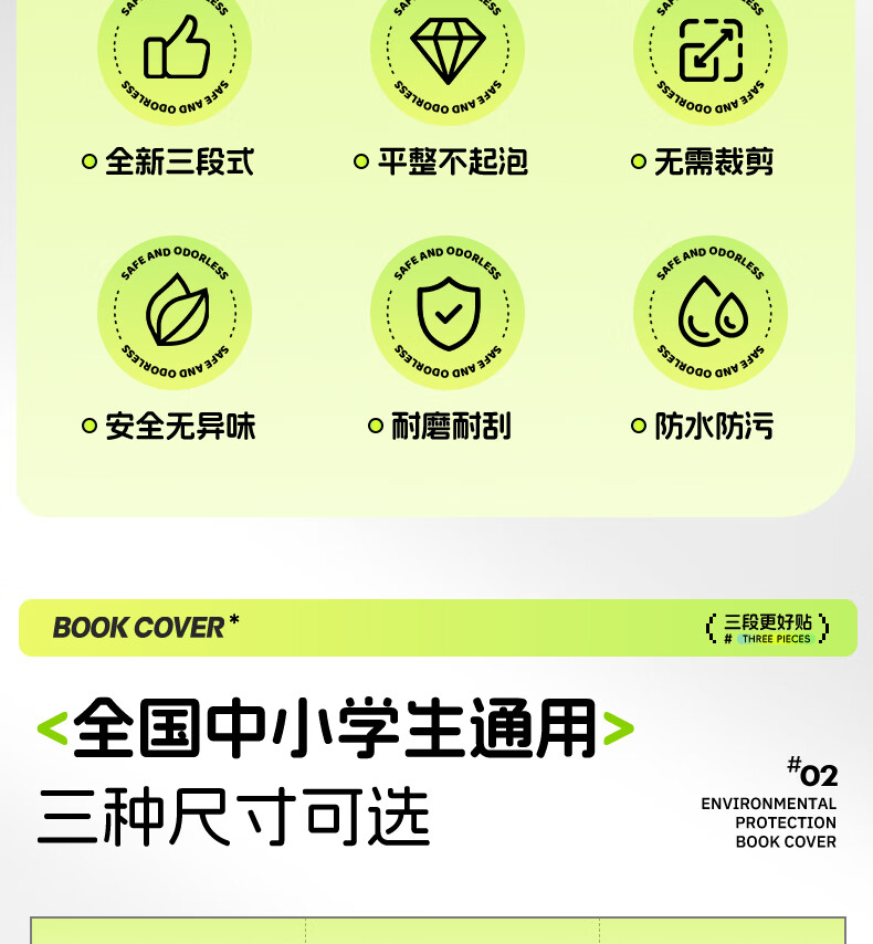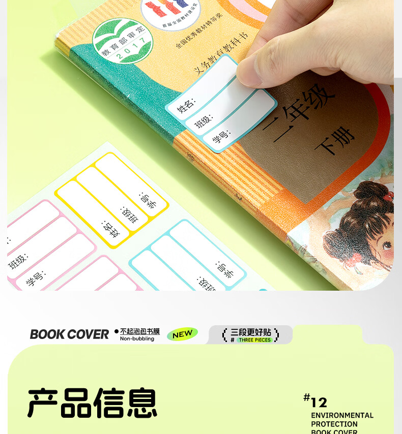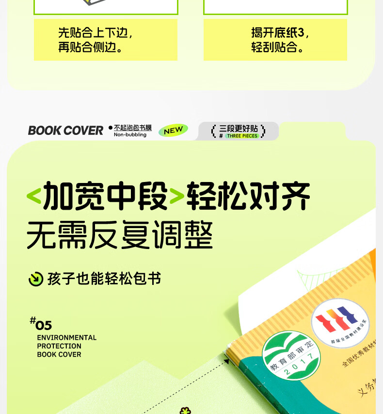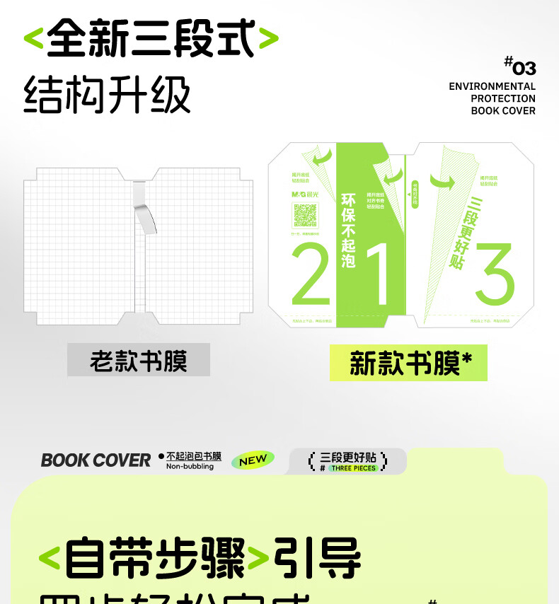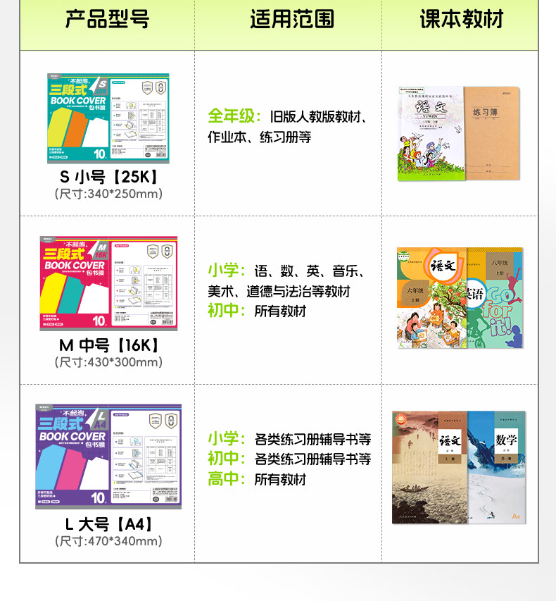 晨光(M&G)文具16K/10张中号不起泡三段式透明自粘包书皮保护套一年级书皮含姓名贴课程表