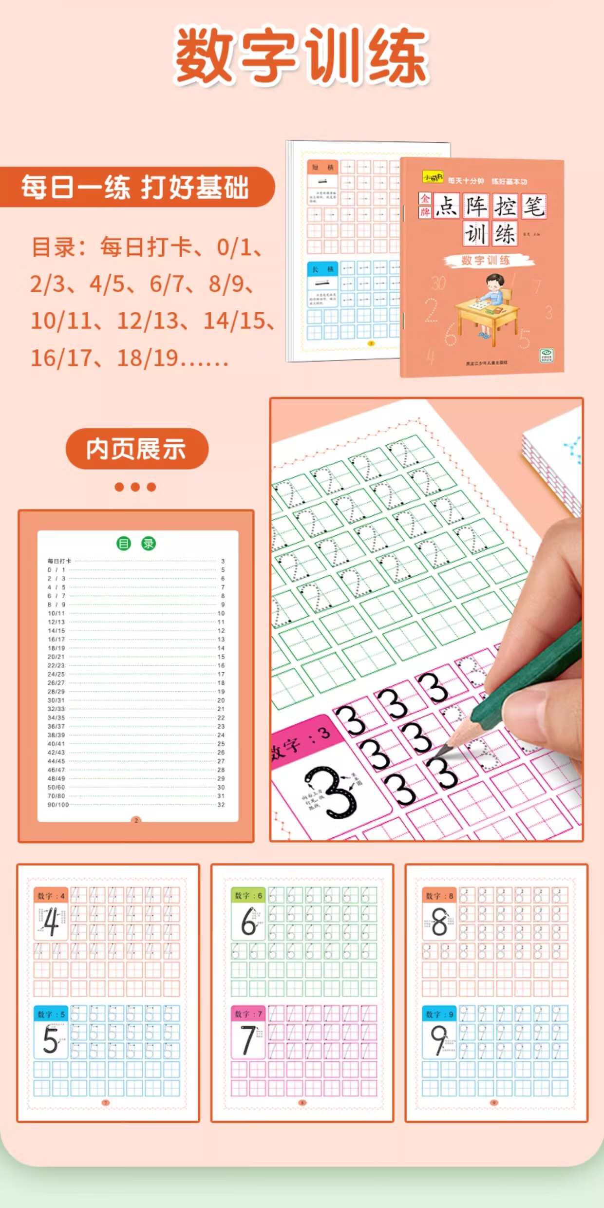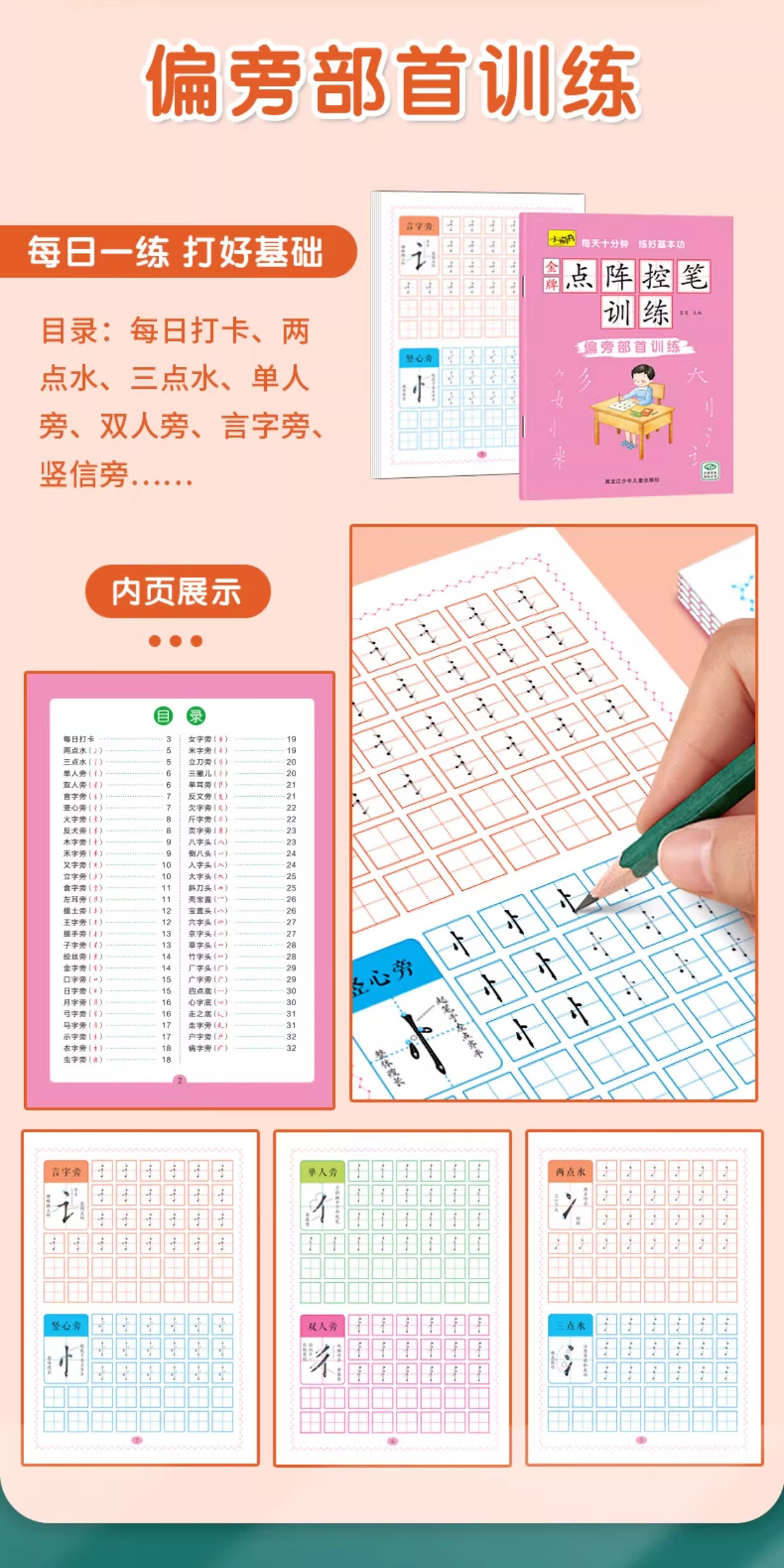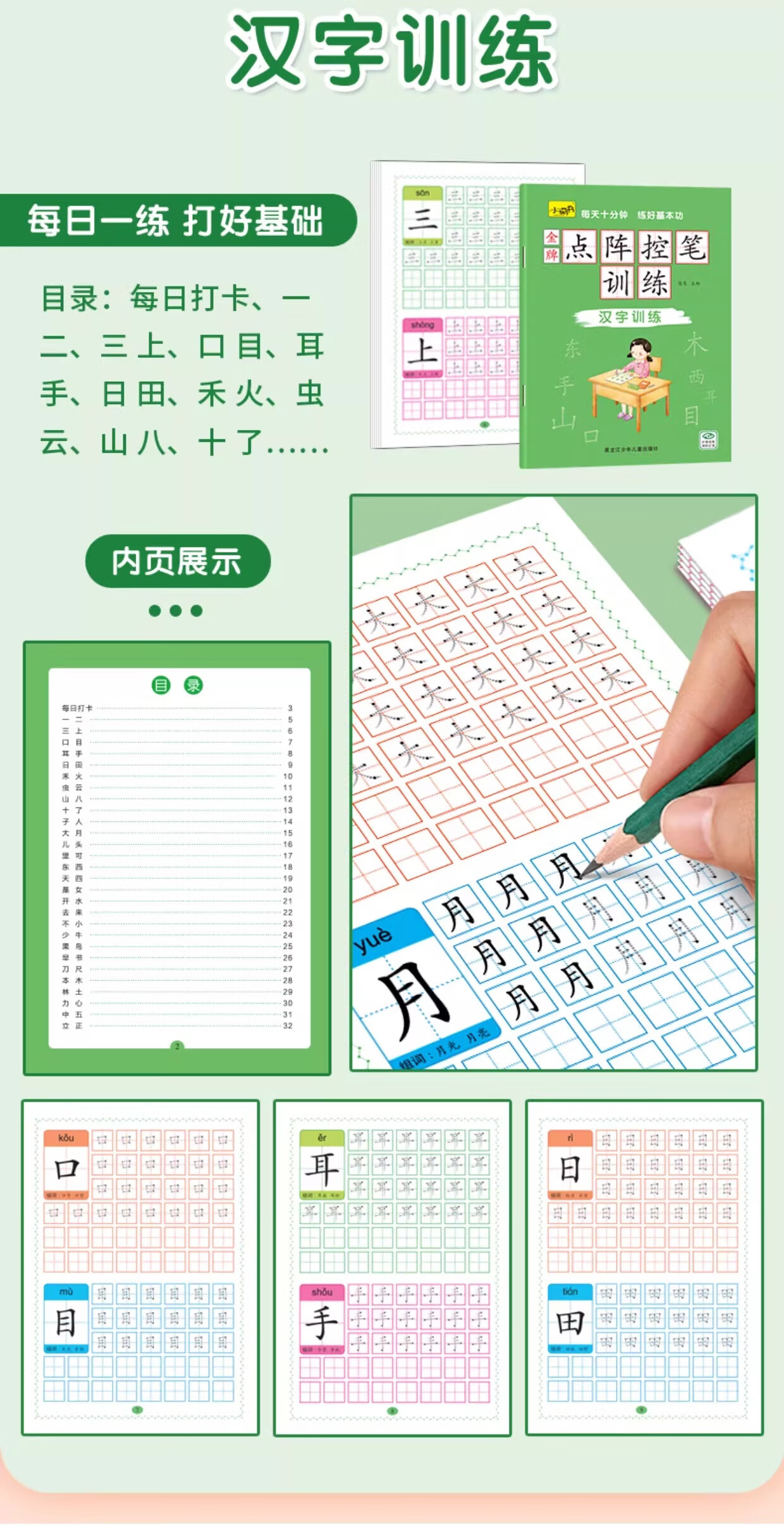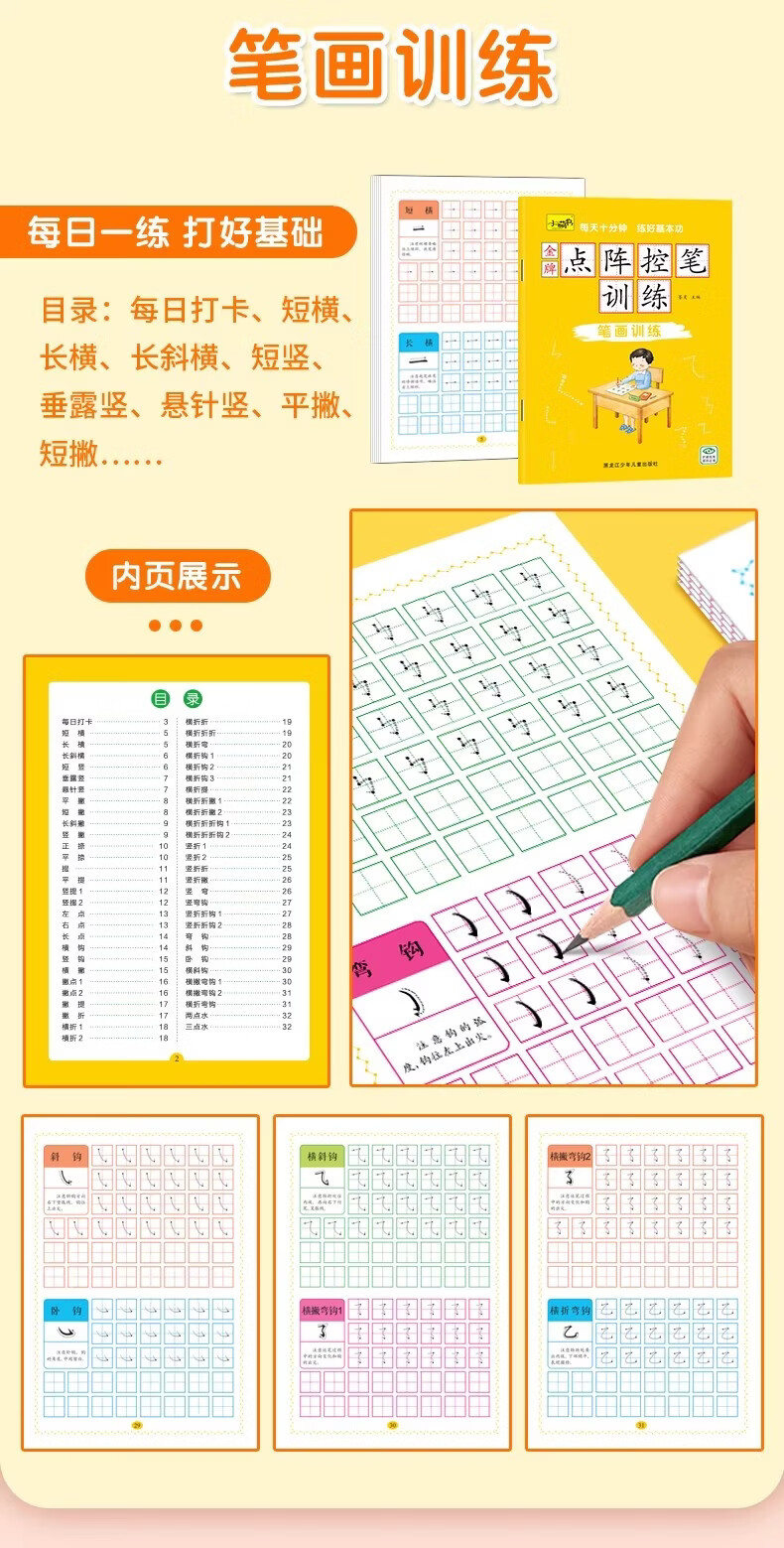 儿童点阵控笔训练幼儿园宝宝趣味数字1-10拼音汉字偏旁部首笔画笔顺铅笔 点阵控笔训练(汉字训练)单册 无规格
