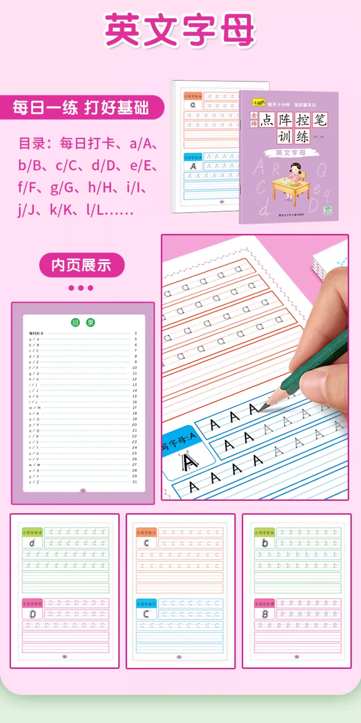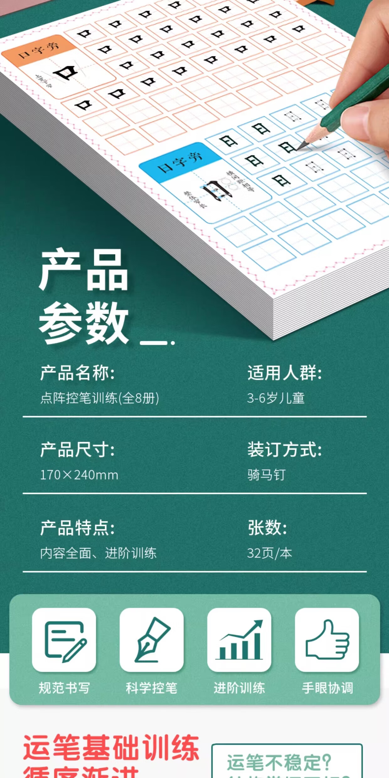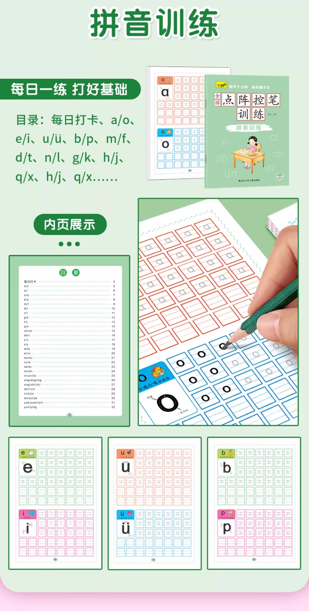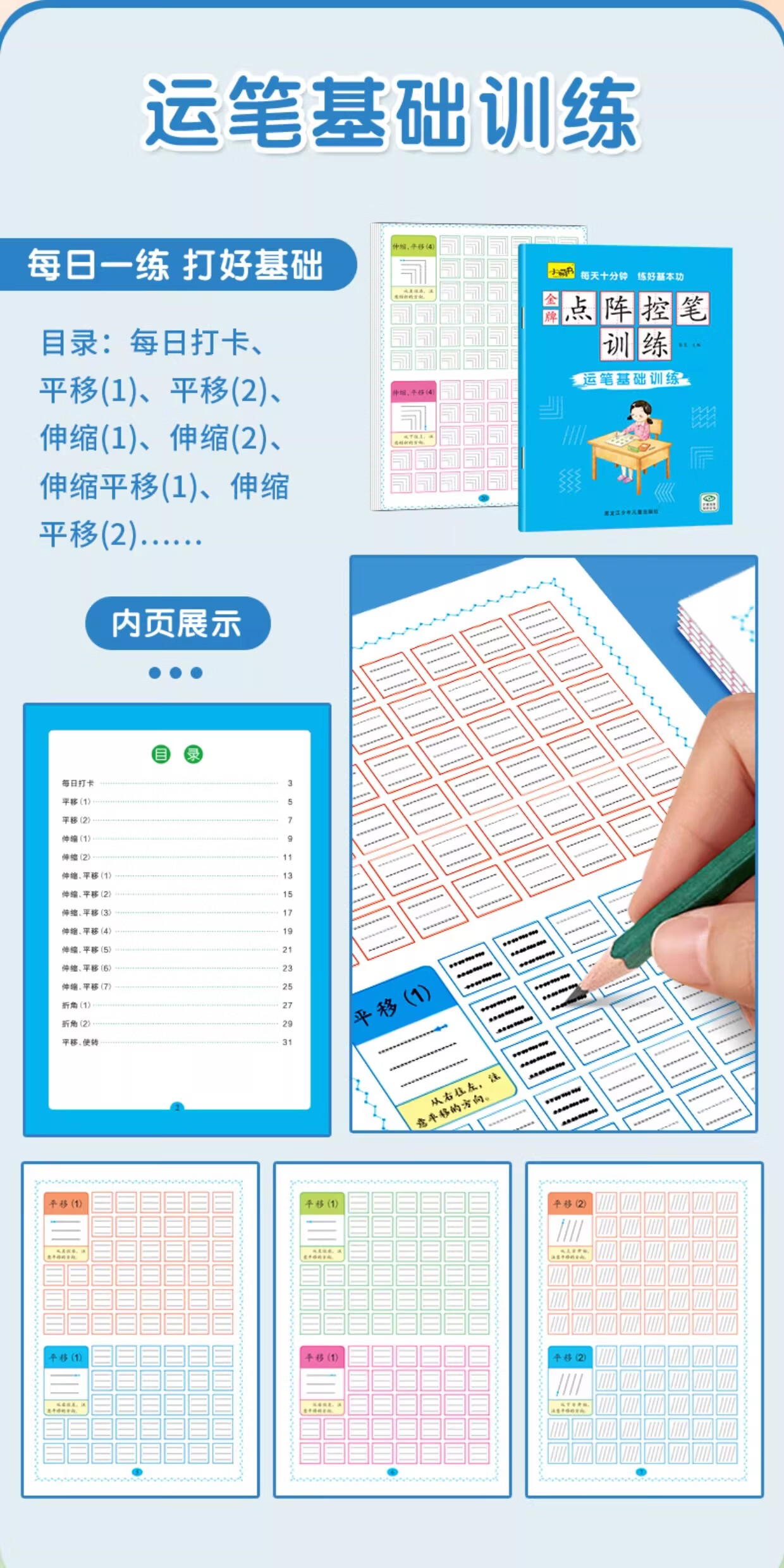 儿童点阵控笔训练幼儿园宝宝趣味数字1-10拼音汉字偏旁部首笔画笔顺铅笔 点阵控笔训练(汉字训练)单册 无规格