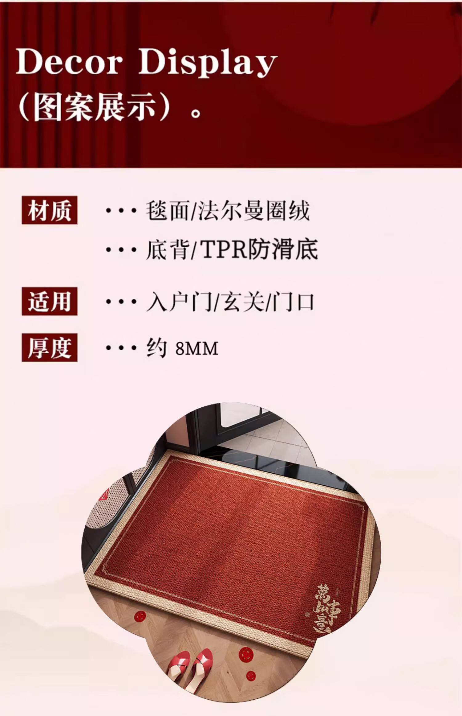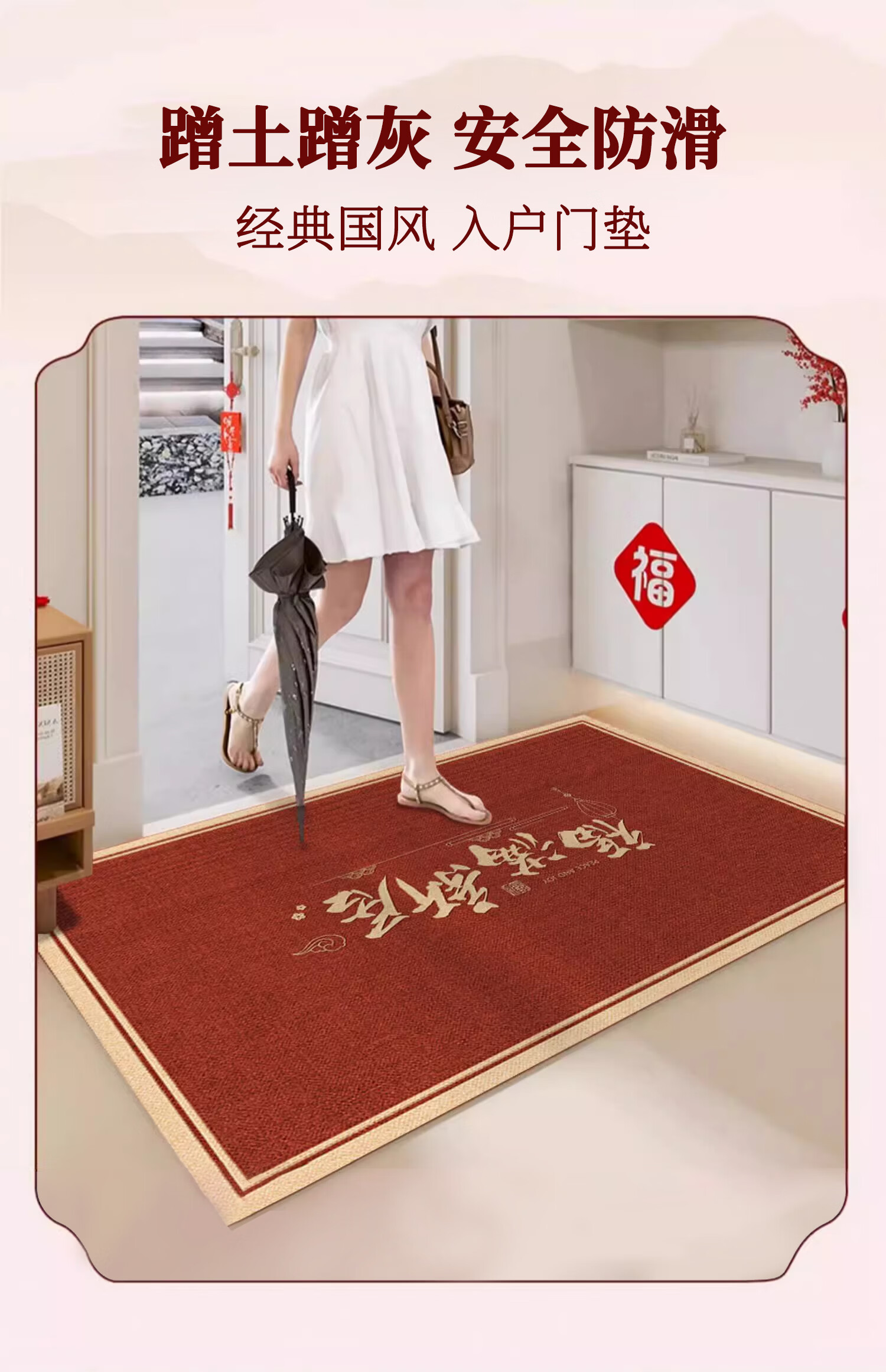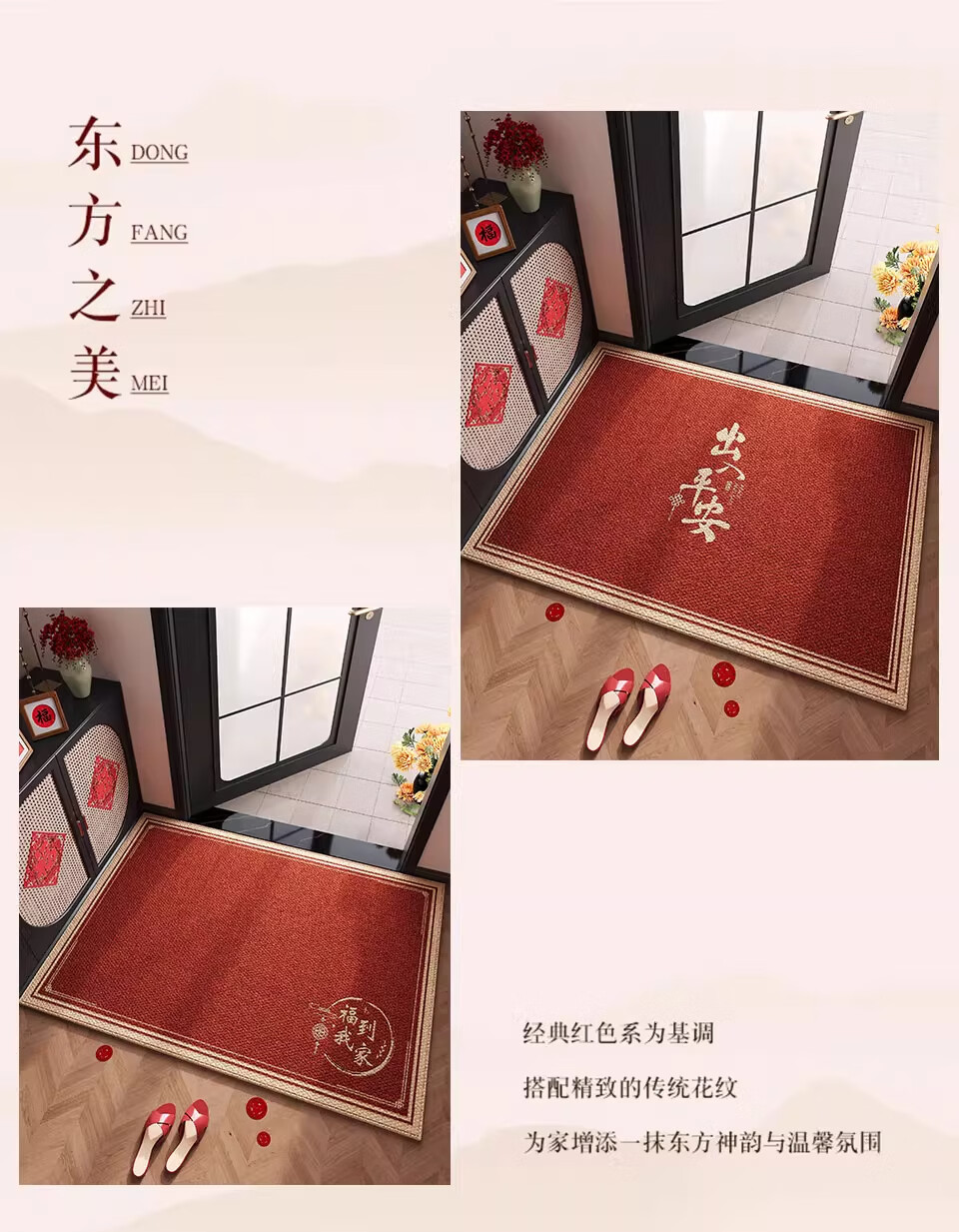 KAYE入户地垫红色喜庆玄关地毯家用进户门口防滑垫子门外耐脏蹭土脚垫 QR-K颜熙-出入平安 60X90cm