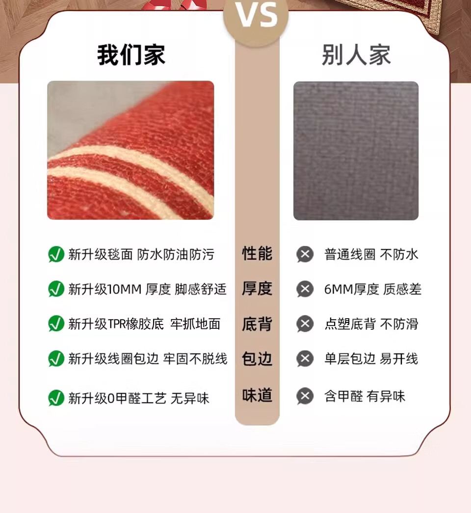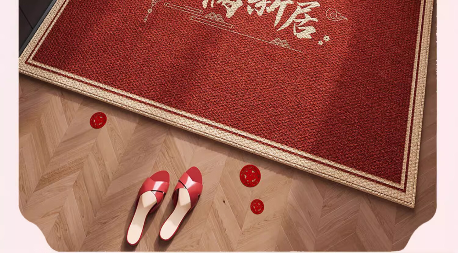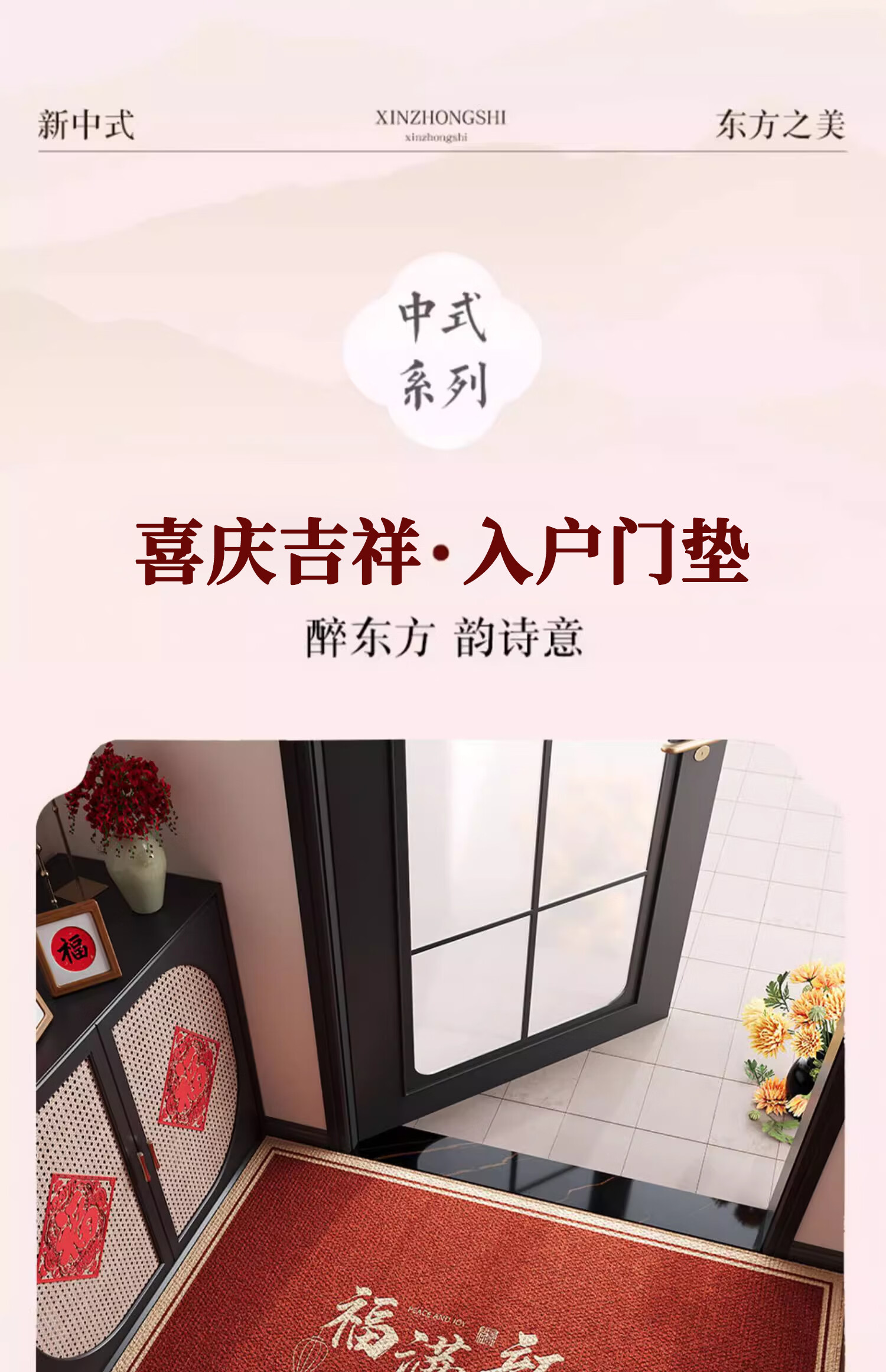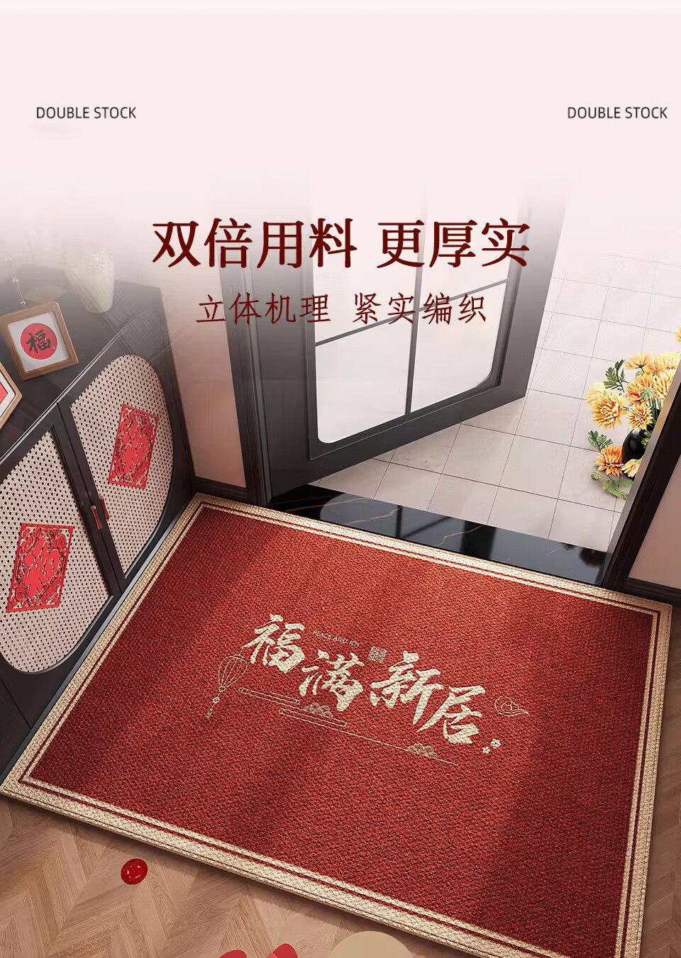 KAYE入户地垫红色喜庆玄关地毯家用进户门口防滑垫子门外耐脏蹭土脚垫 QR-K颜熙-出入平安 60X90cm