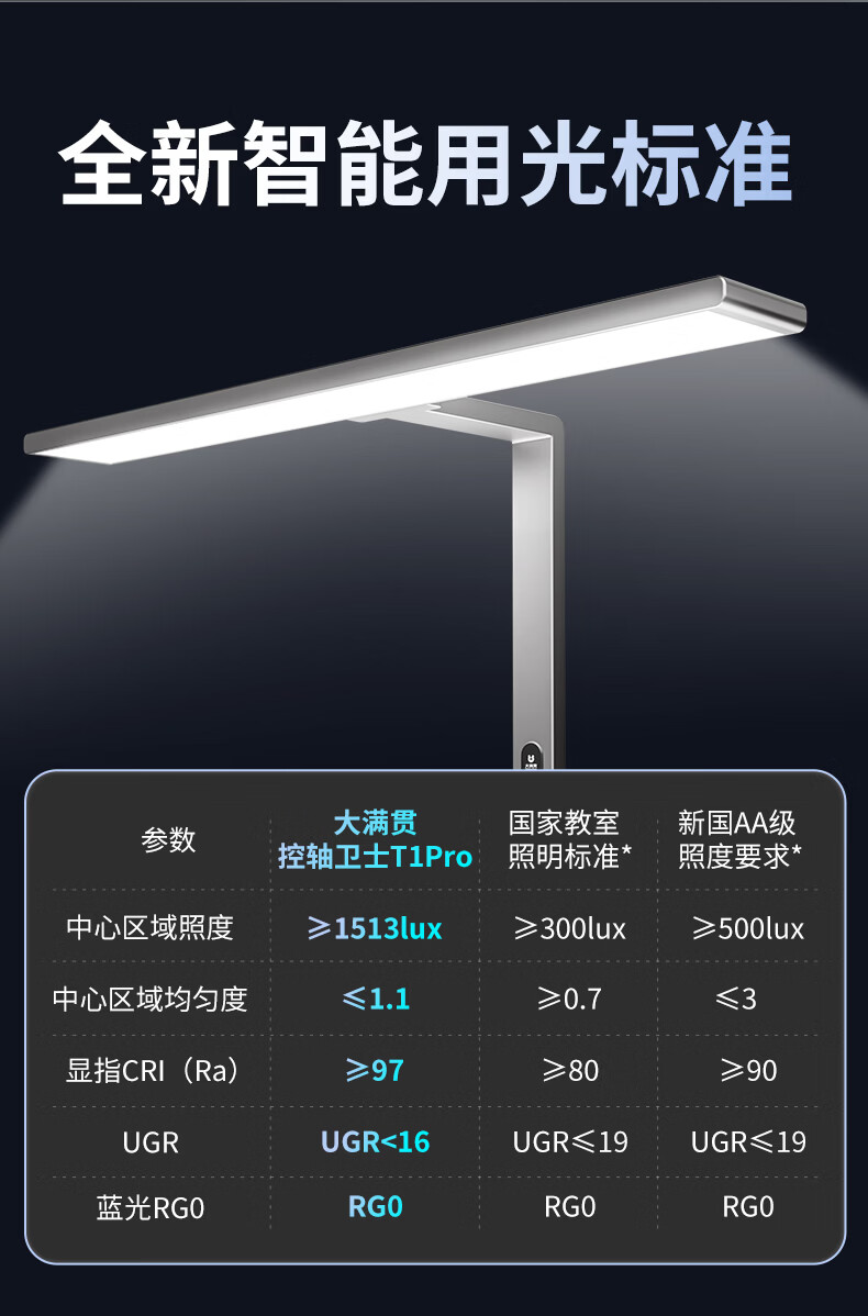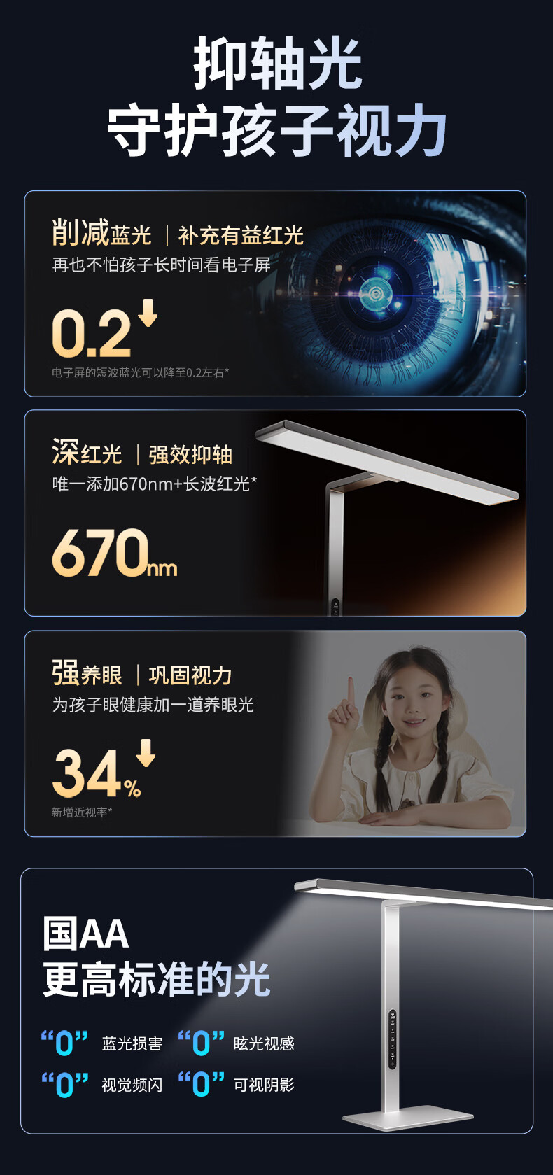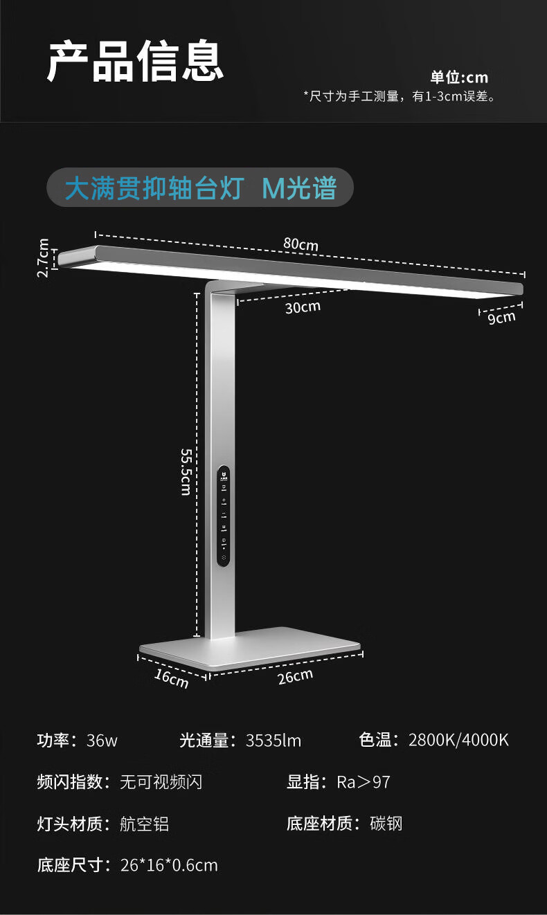 大满贯控轴全光谱护眼灯学生学习台灯儿童防近视大路灯中科M光谱pro 【白色】M光谱桌面大路灯36W