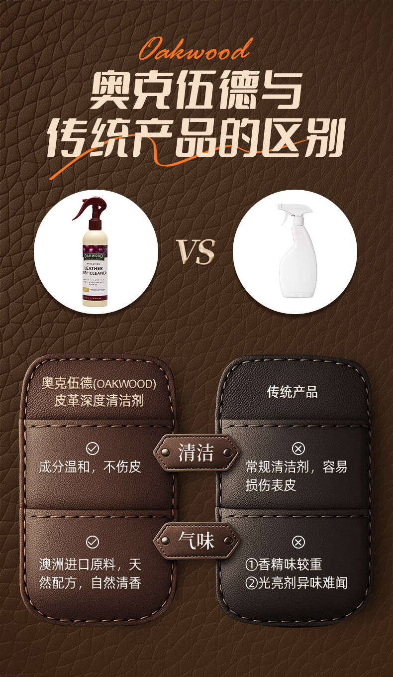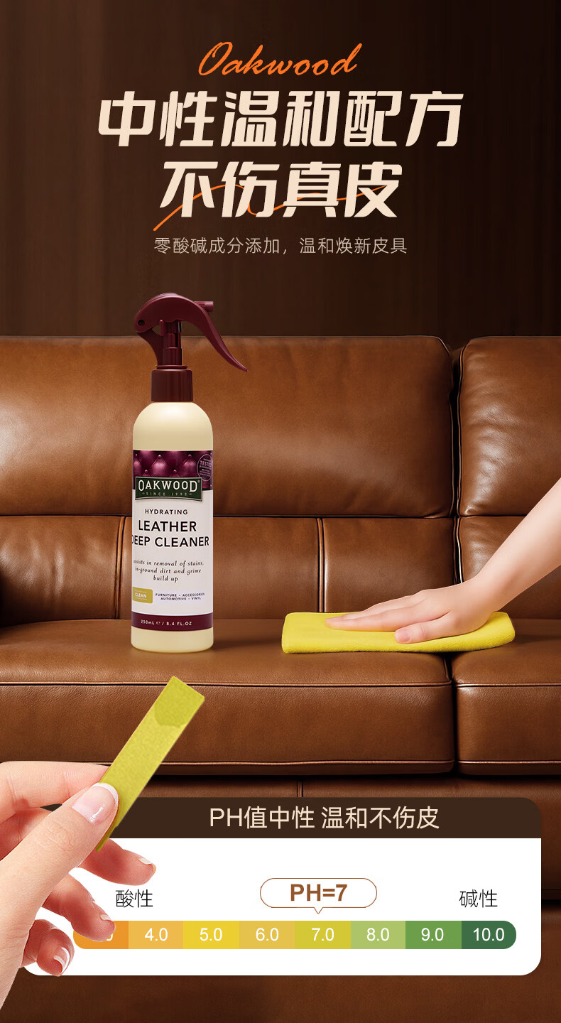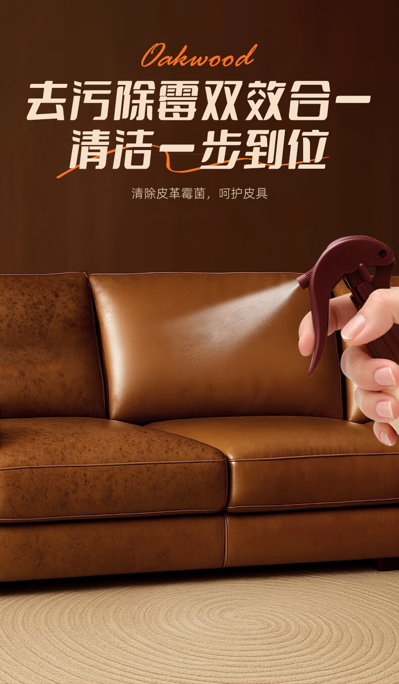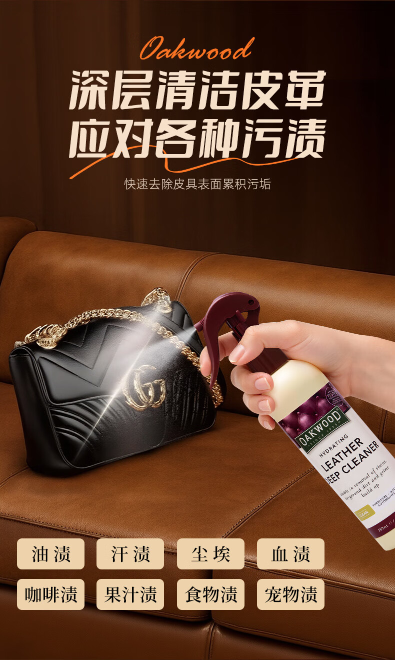 OAKWOOD奥克伍德皮革清洁剂250ml 真皮沙发座椅轻奢皮具皮衣皮包除霉清洁