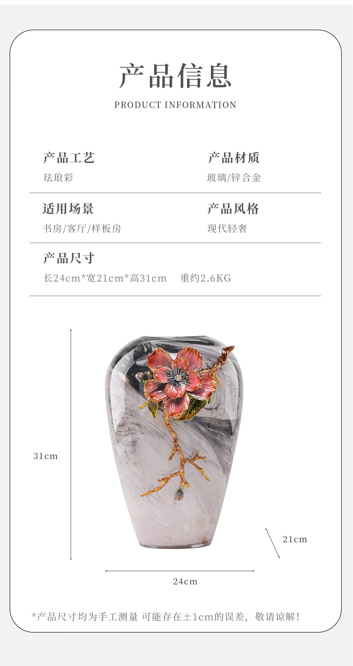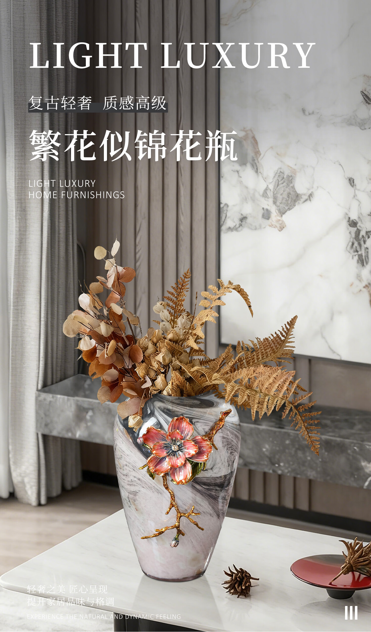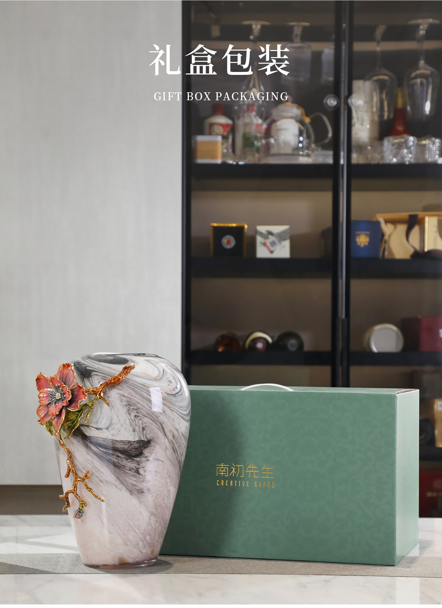 南初先生珐琅彩繁花似锦高级感轻奢花瓶客厅插花酒柜玄关摆件乔迁搬家礼物 珐琅彩繁花似锦花瓶-礼盒装 31cm