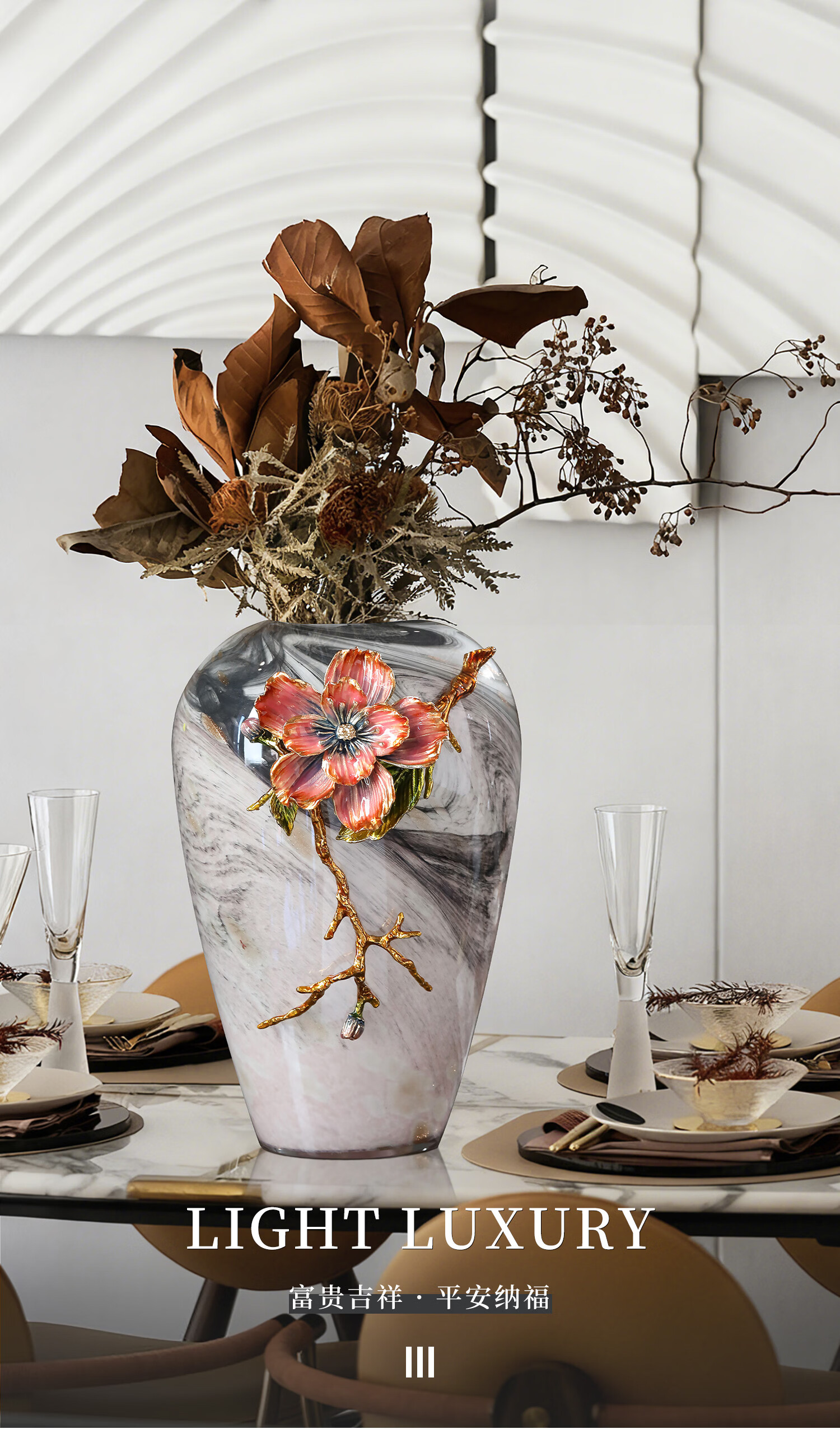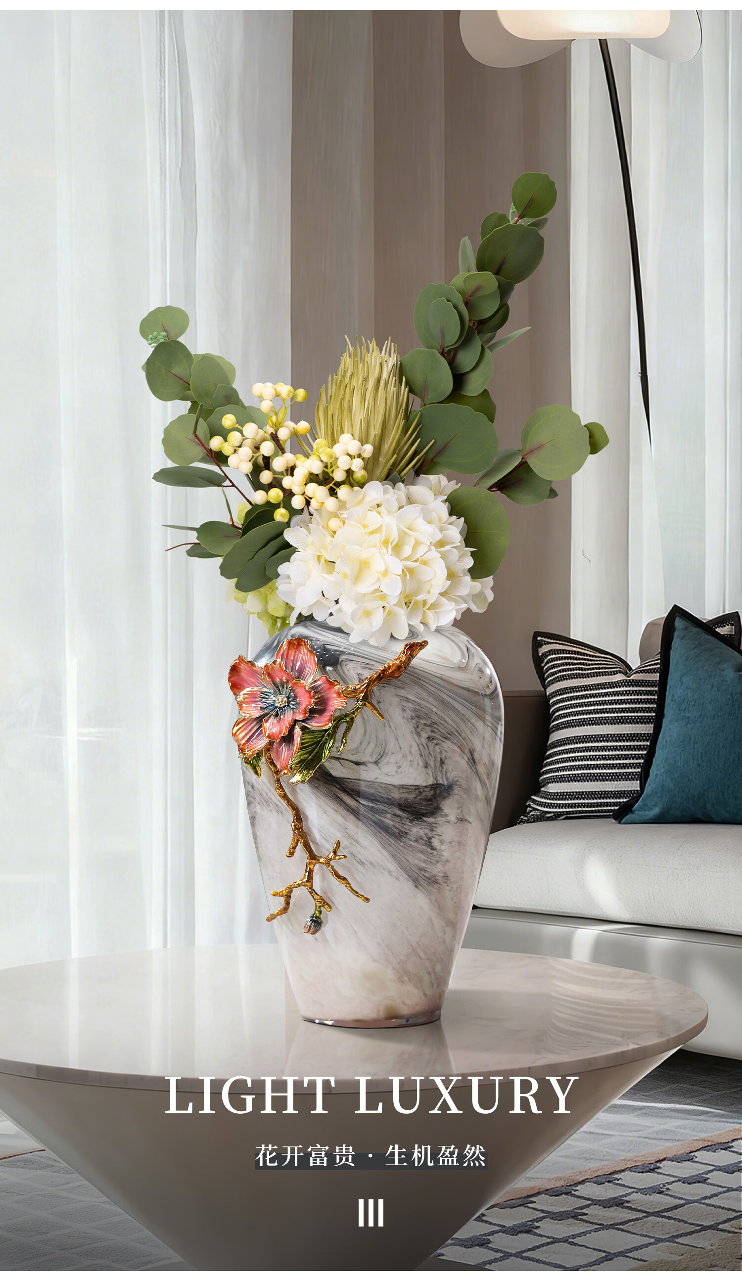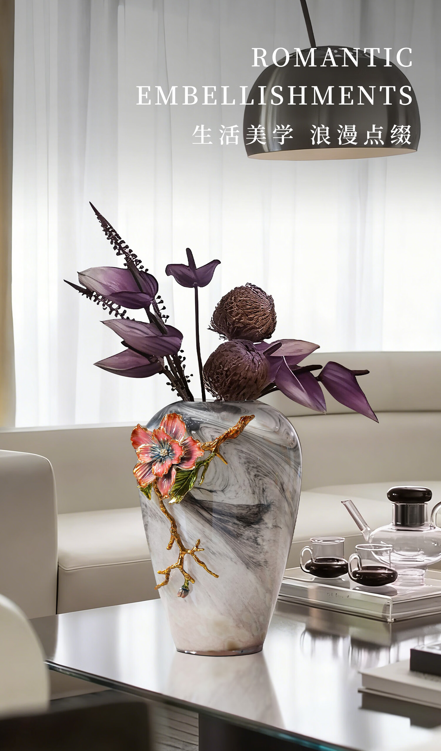 南初先生珐琅彩繁花似锦高级感轻奢花瓶客厅插花酒柜玄关摆件乔迁搬家礼物 珐琅彩繁花似锦花瓶-礼盒装 31cm