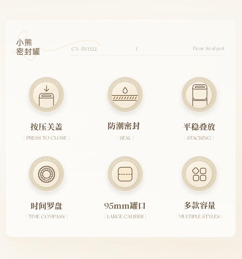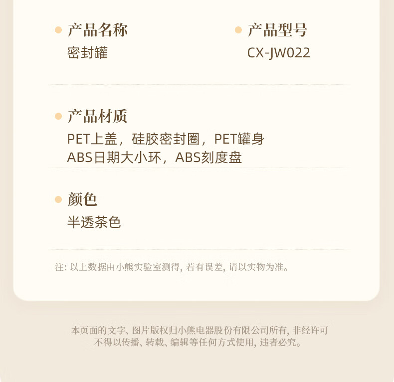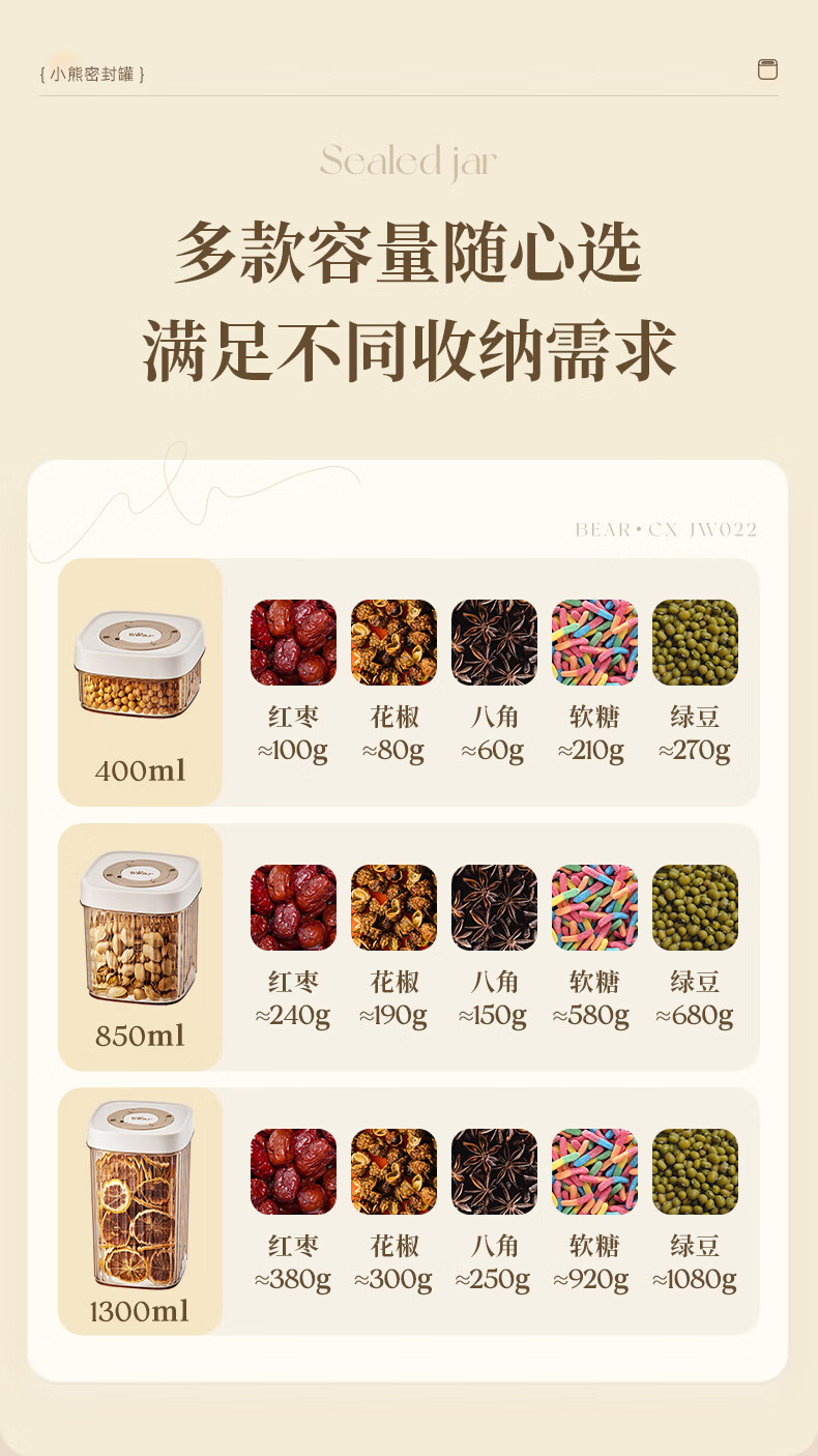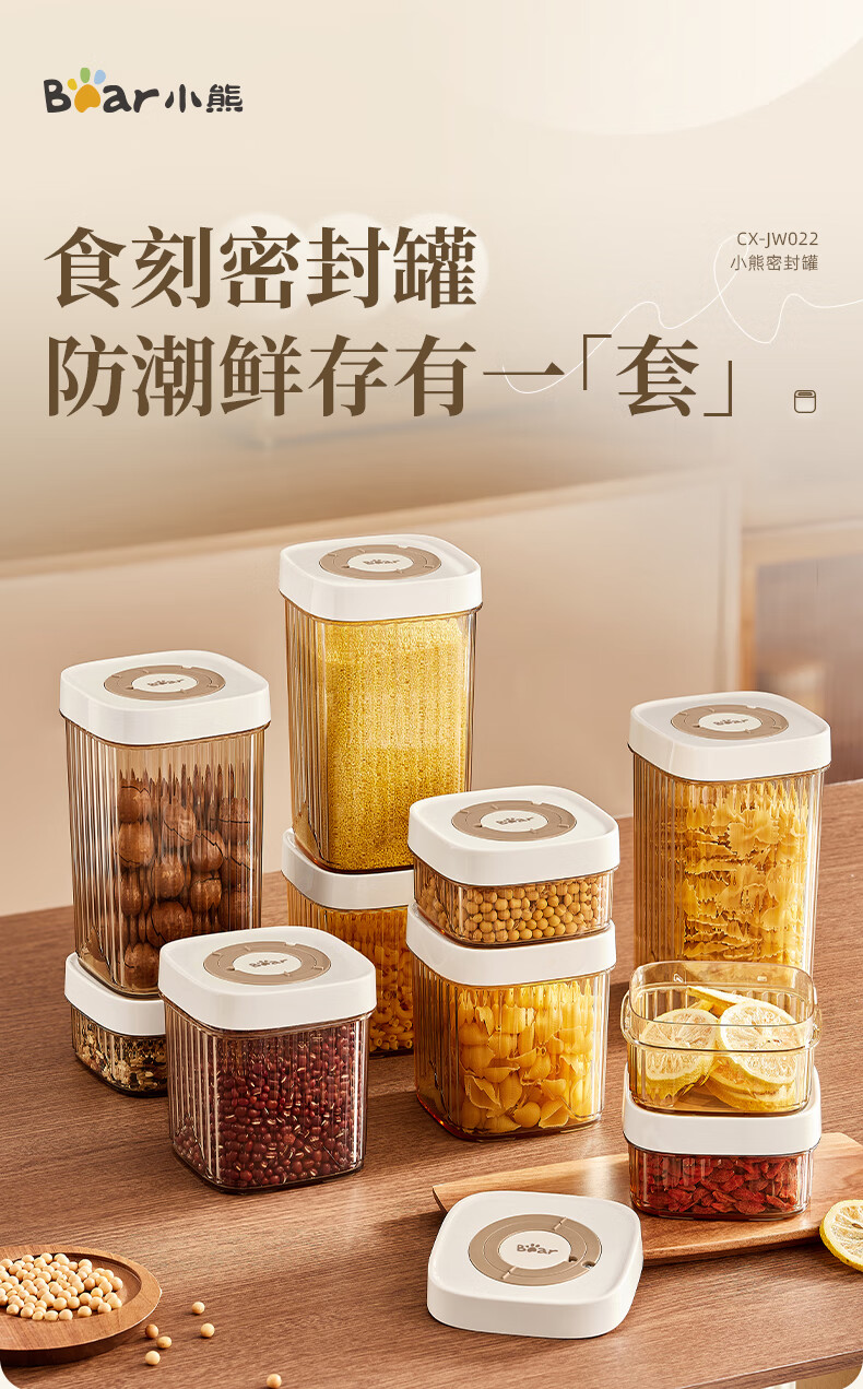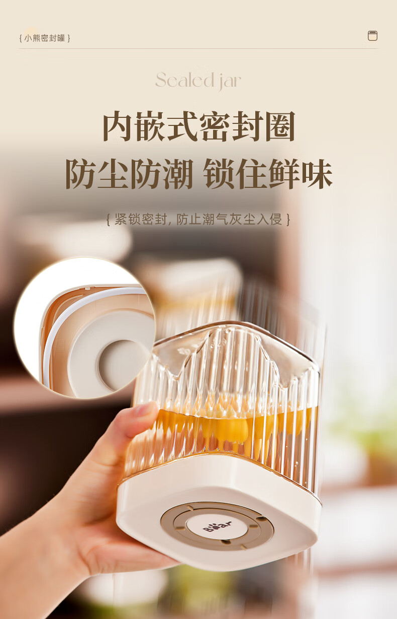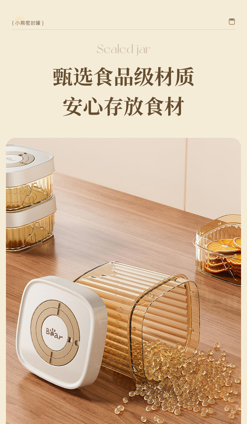 小熊(Bear)密封罐 五谷杂粮收纳盒塑料罐零食干货茶叶储物罐 850ml密封罐