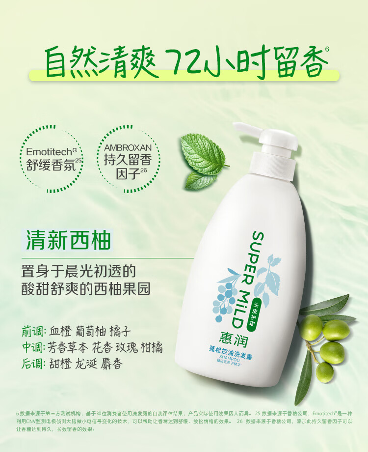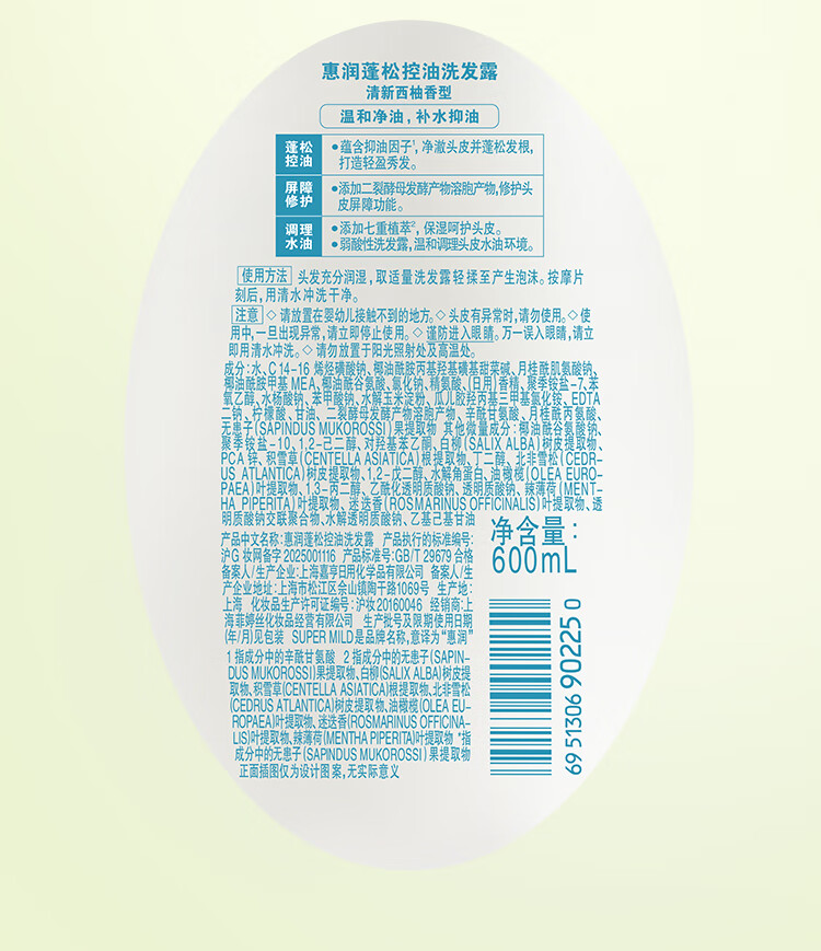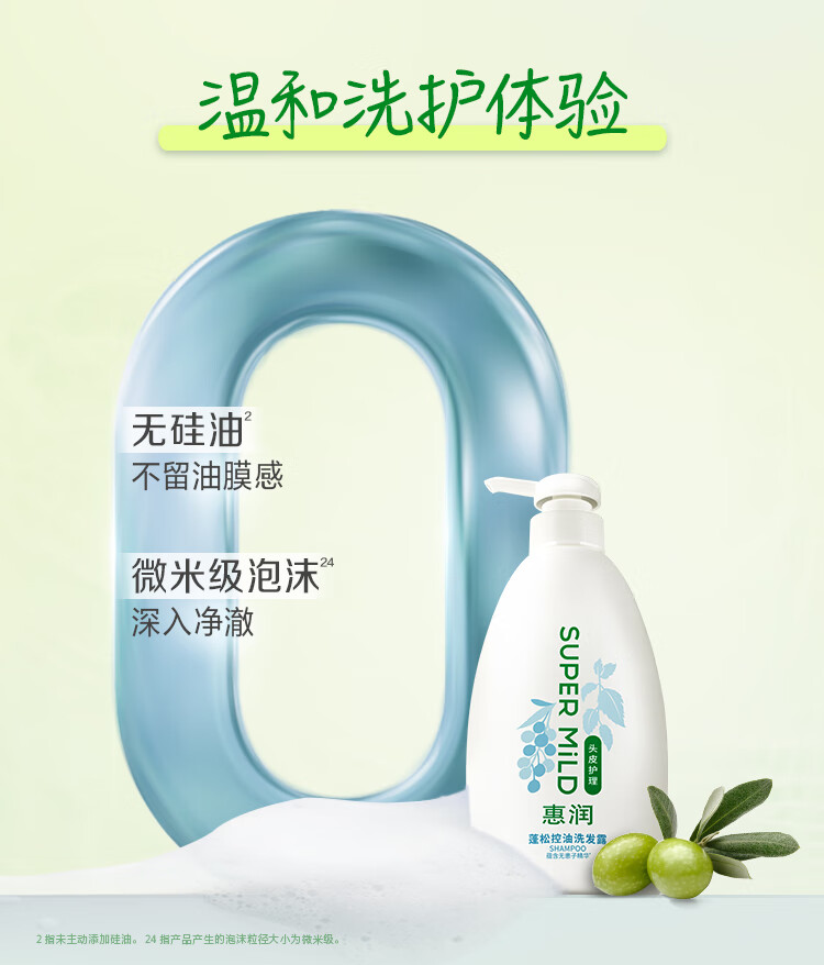 惠润(SUPER MiLD)蓬松控油洗发水 改善油扁塌 无硅油男女洗发露 600ml京东自营