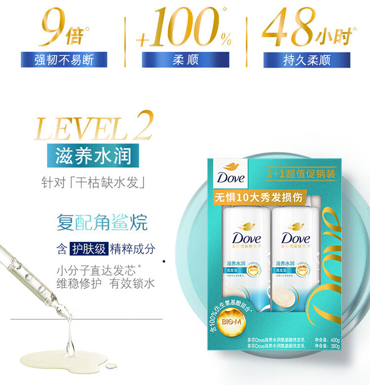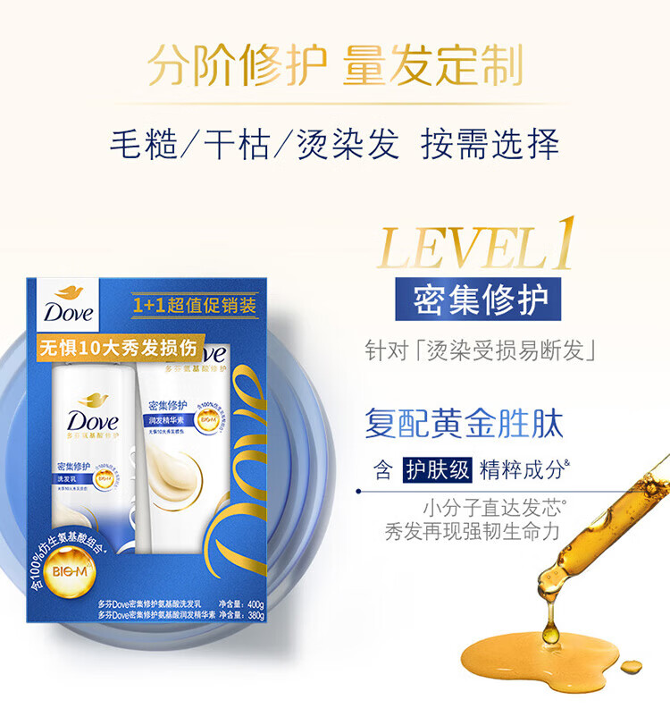 多芬密集修护氨基酸洗发水护发素套装400g+380g 染烫受损发质