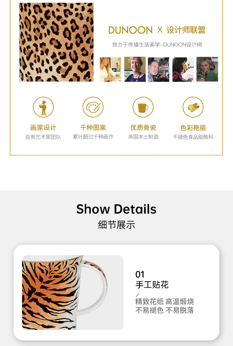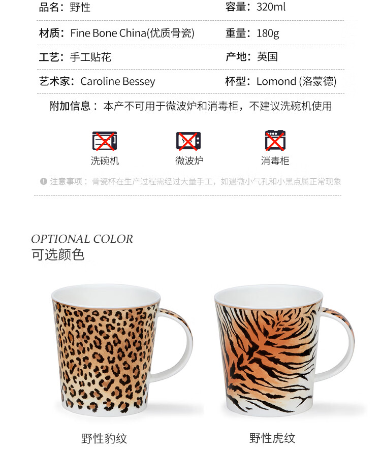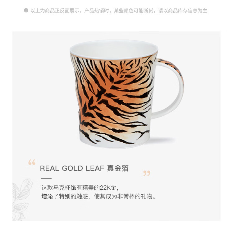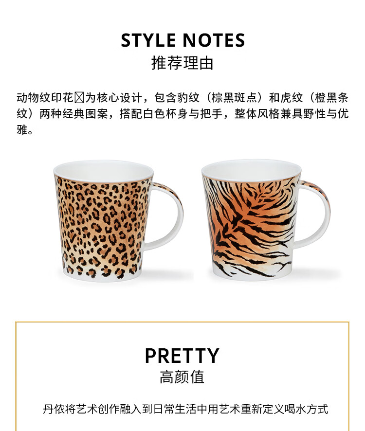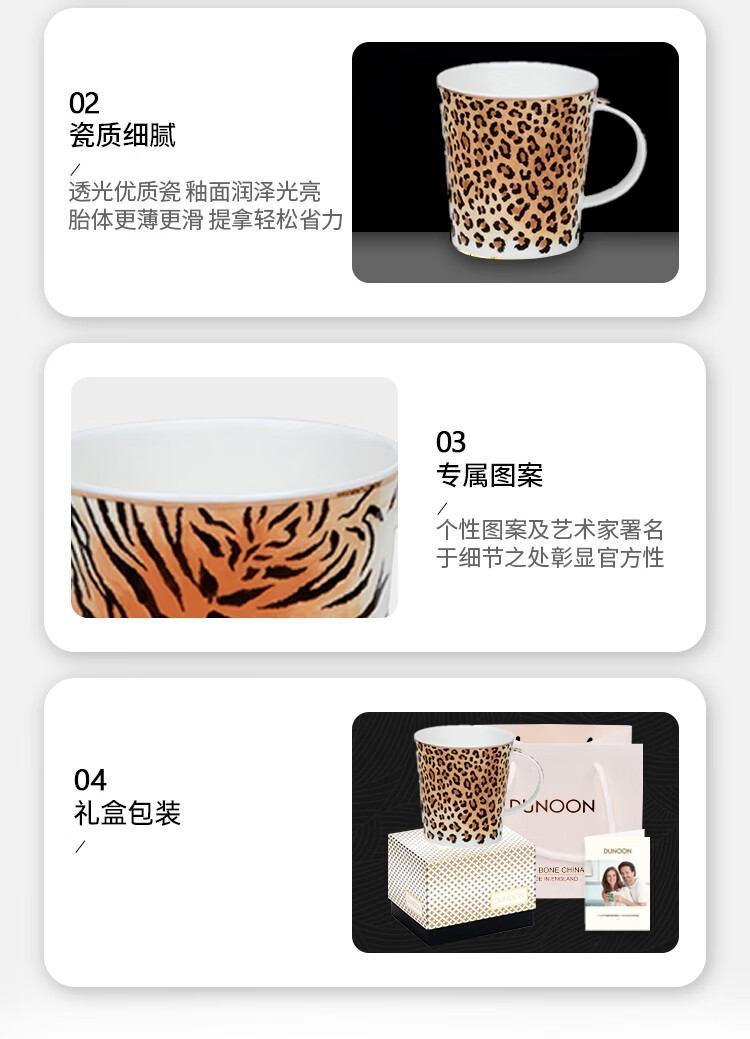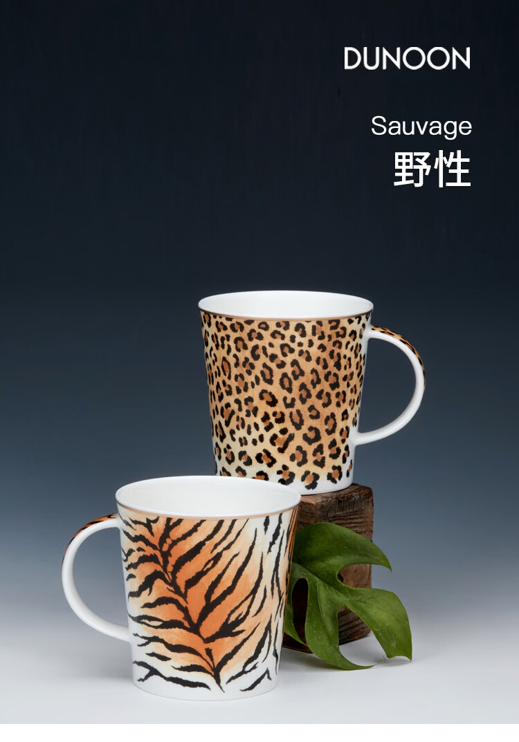 丹侬(DUNOON)骨瓷马克杯英国杯子创意野性豹纹虎纹水杯陶瓷咖啡杯情侣杯礼盒装 野性豹纹(22K金装饰) 320ml