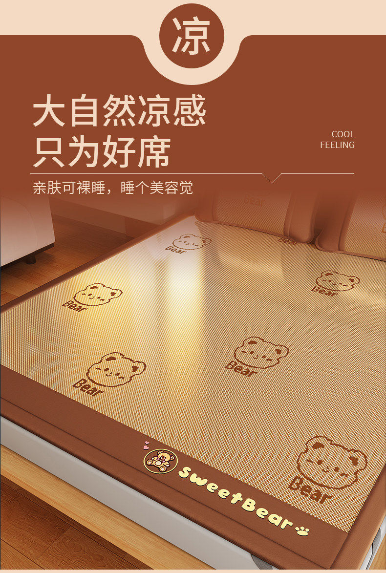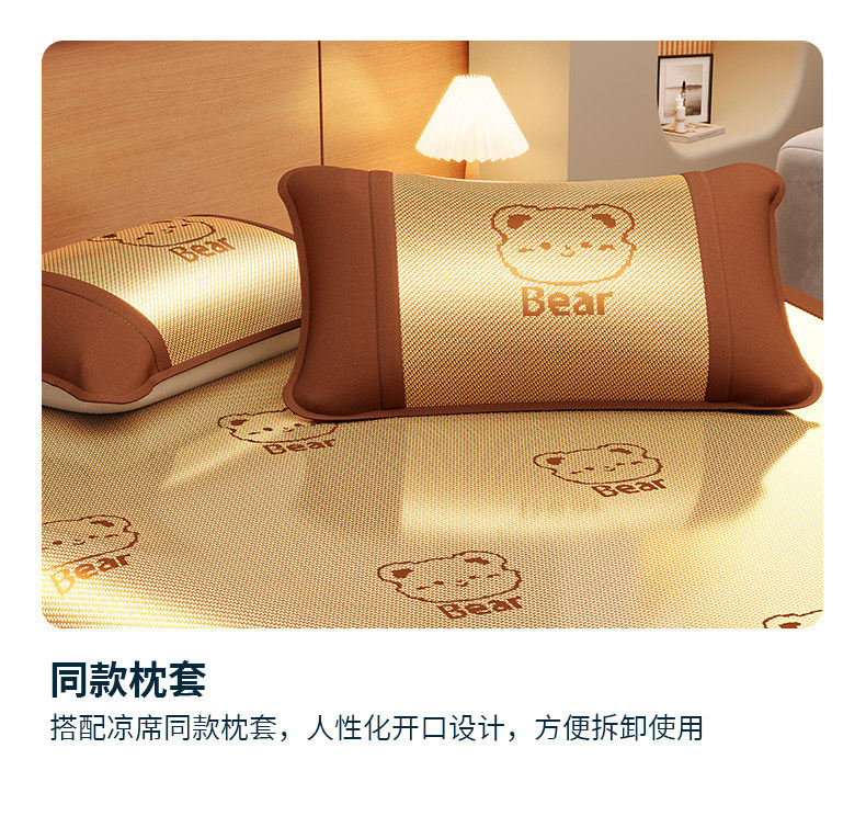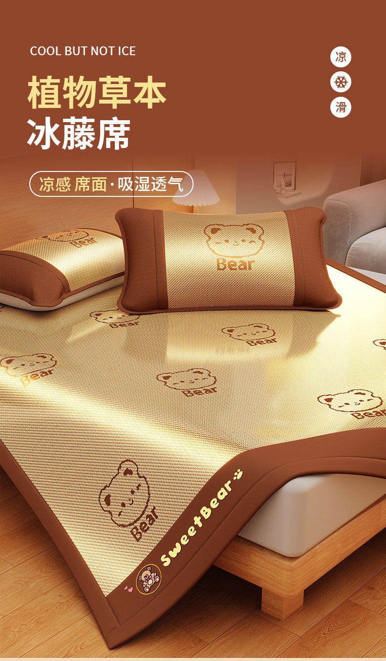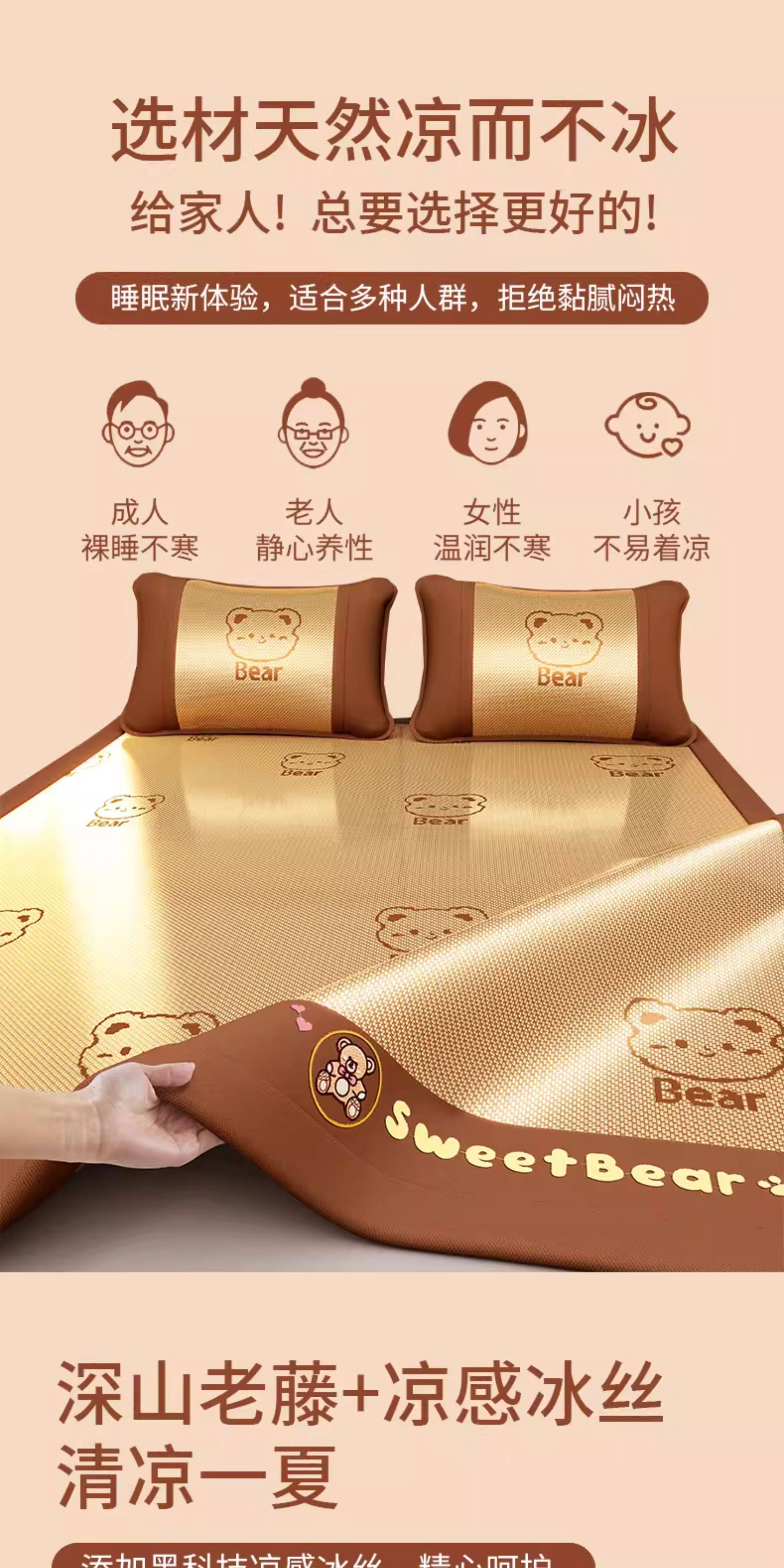 阿尔皮纳袋鼠夏天冰丝凉席藤席2026新款夏季竹席家用床笠学生宿舍软席子三件套 【单床席】冰藤席甜蜜熊/咖色提花 180cmx200cm 【A类抗菌母婴可用 可裸睡可机洗】