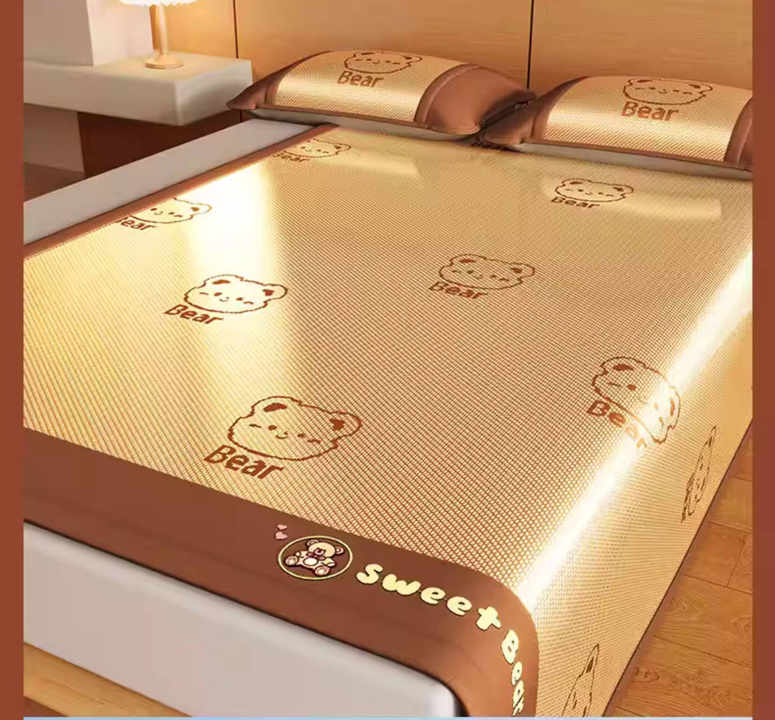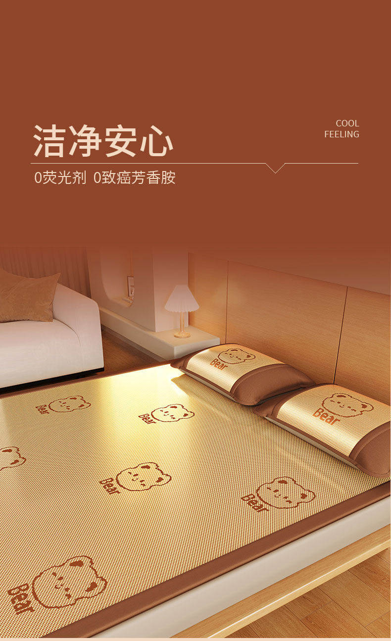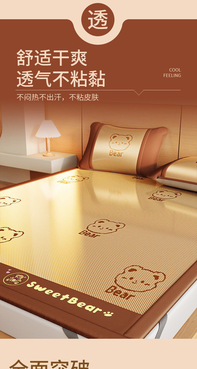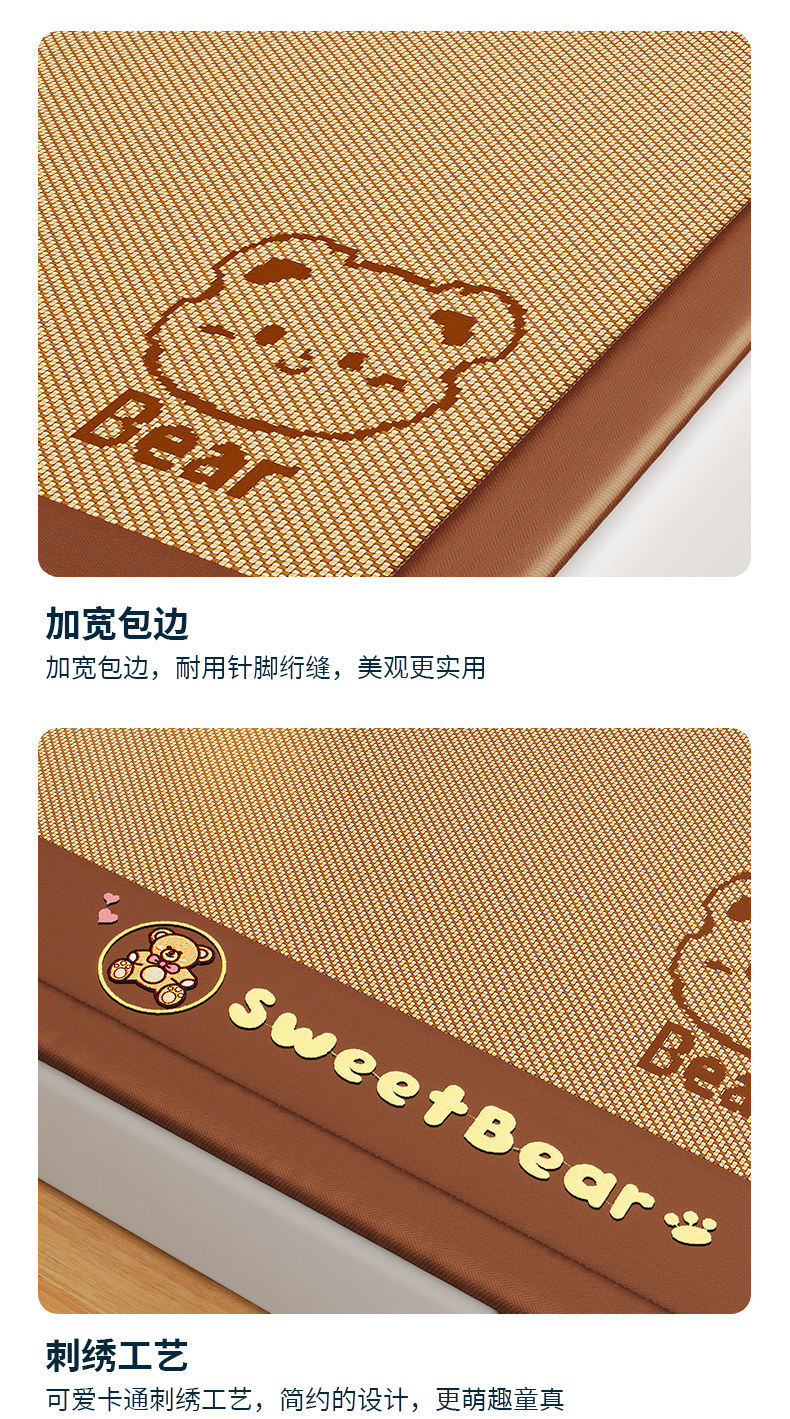 阿尔皮纳袋鼠夏天冰丝凉席藤席2026新款夏季竹席家用床笠学生宿舍软席子三件套 【单床席】冰藤席甜蜜熊/咖色提花 180cmx200cm 【A类抗菌母婴可用 可裸睡可机洗】