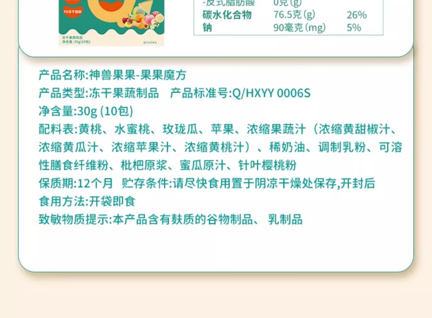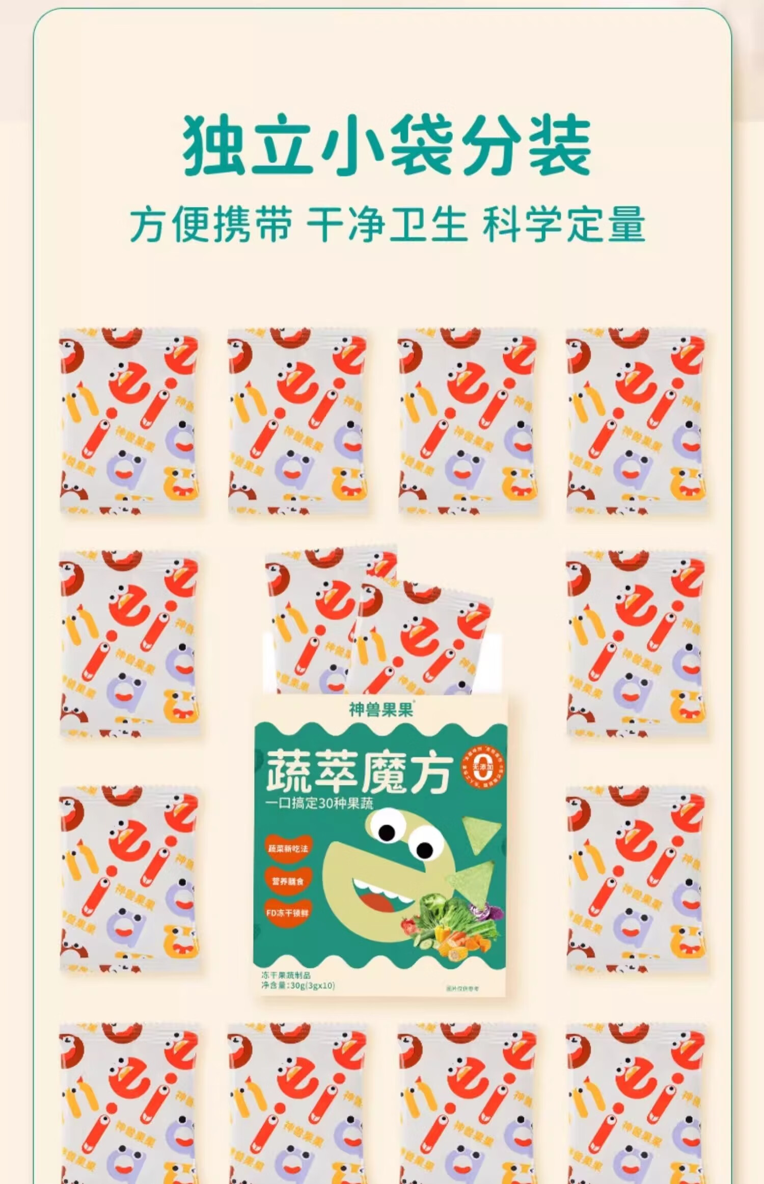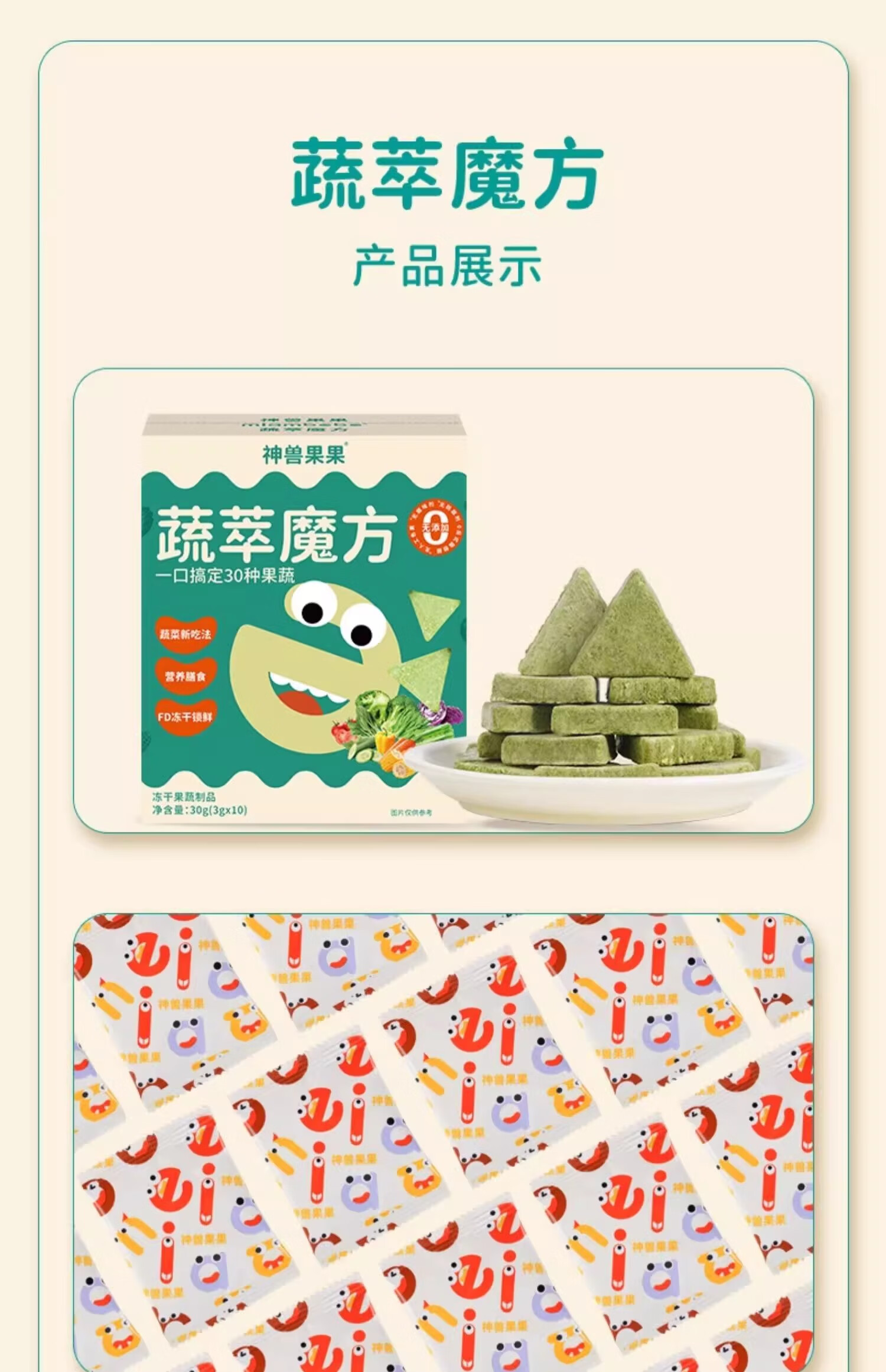 神兽果果宝宝饼干磨牙棒【30种混合果蔬】果果魔方冻干蔬果脆儿童零食 【10袋装】蔬萃魔方·30种果蔬
