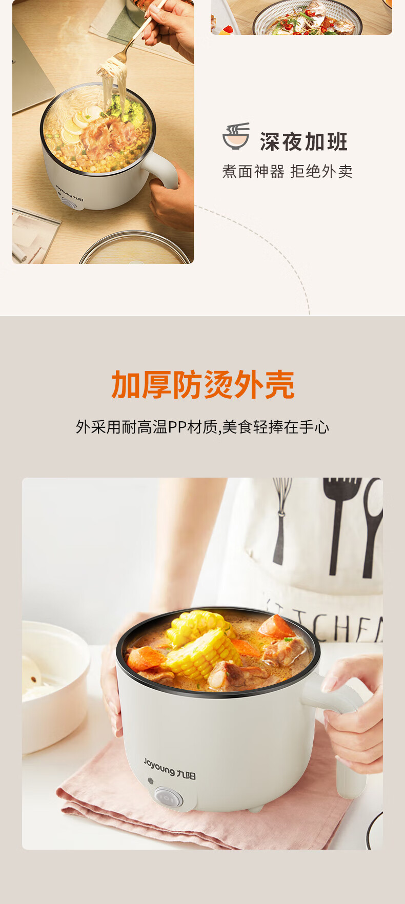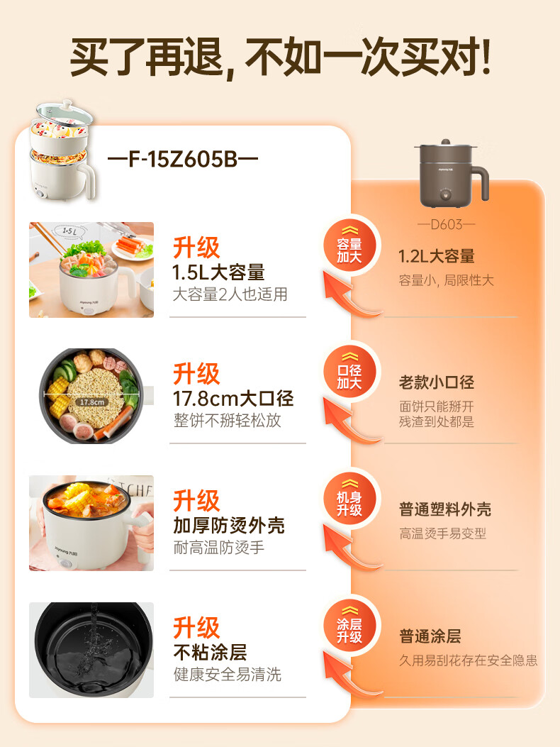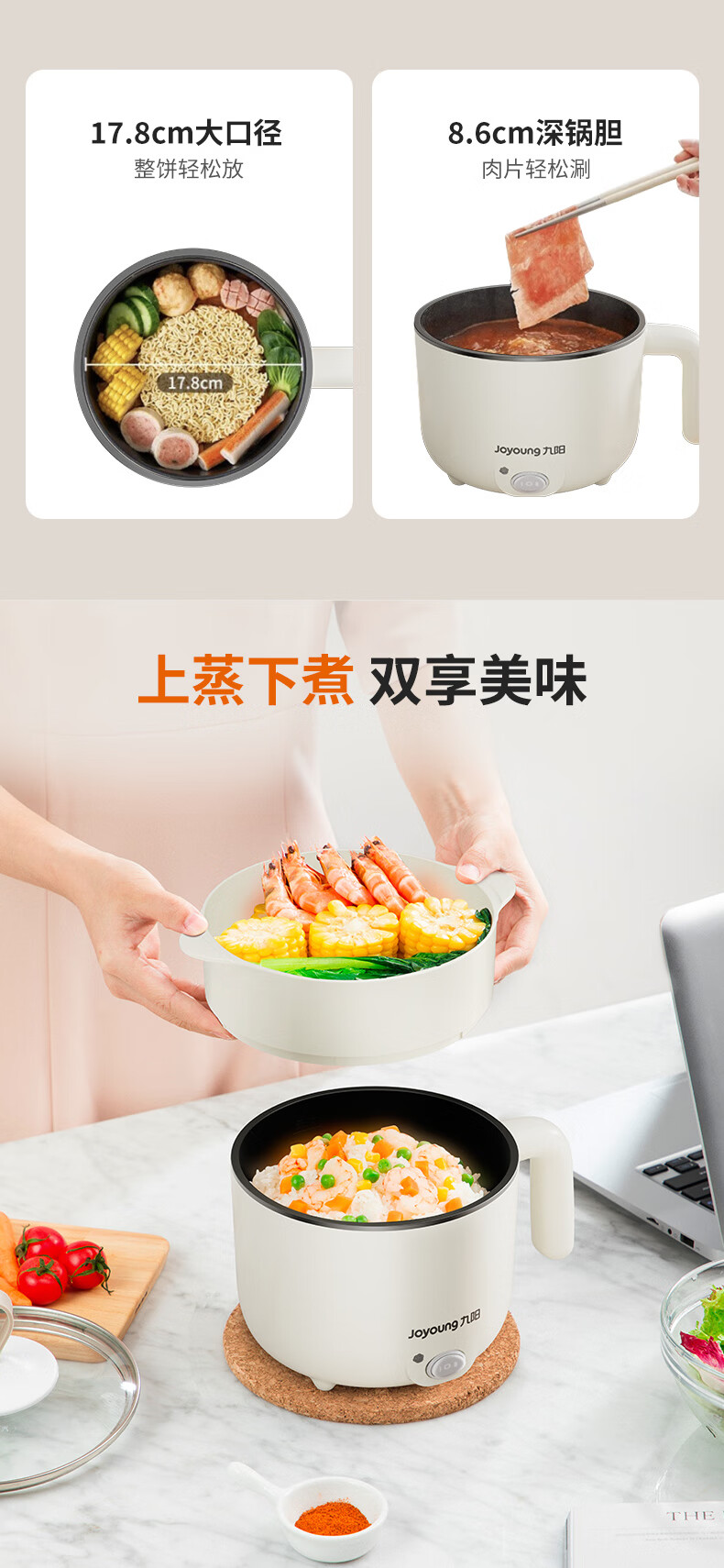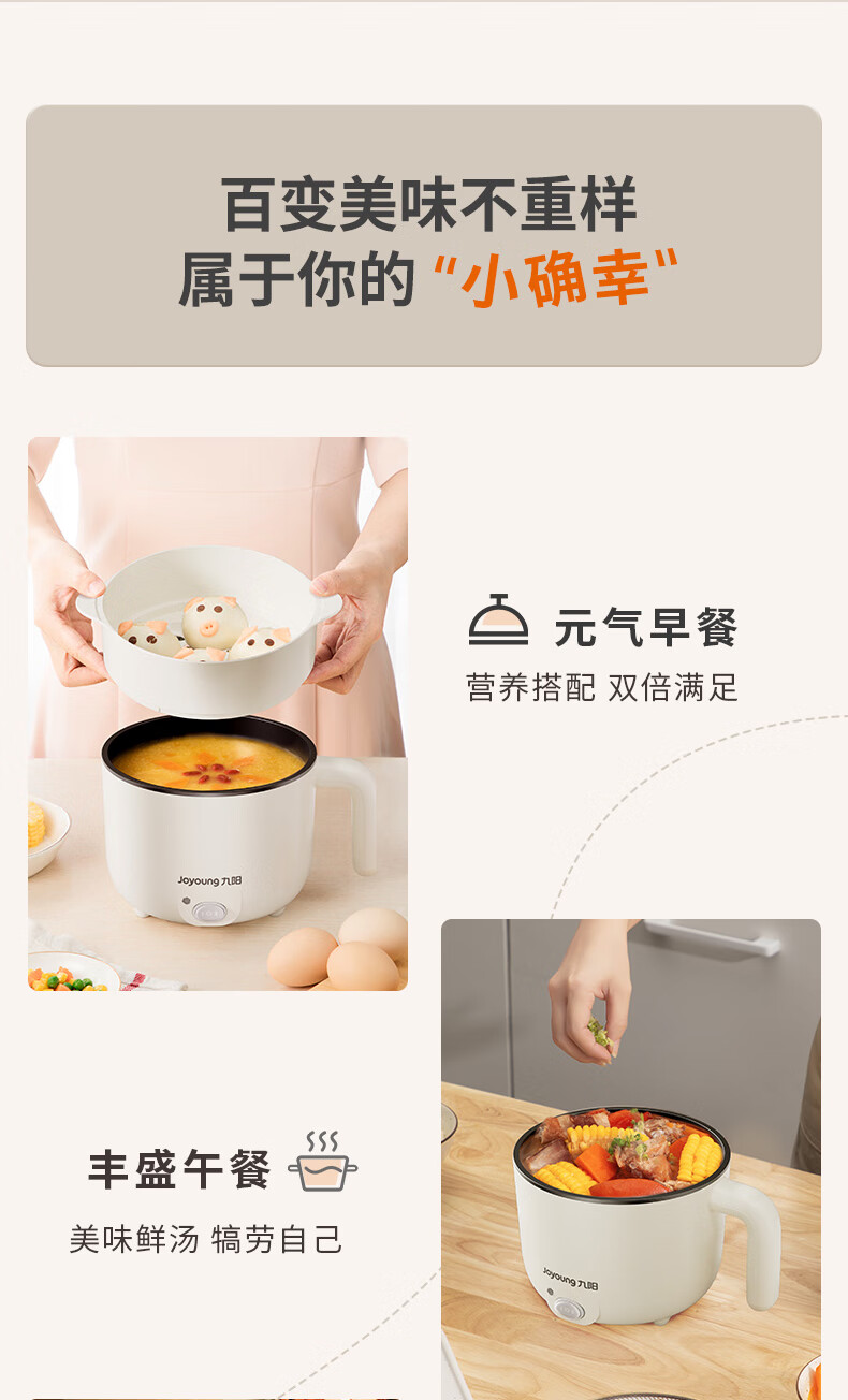 九阳(Joyoung)电煮锅小电锅宿舍小锅电蒸锅 学生寝室一体泡面小火锅多功能锅一人电火锅F-15Z605B