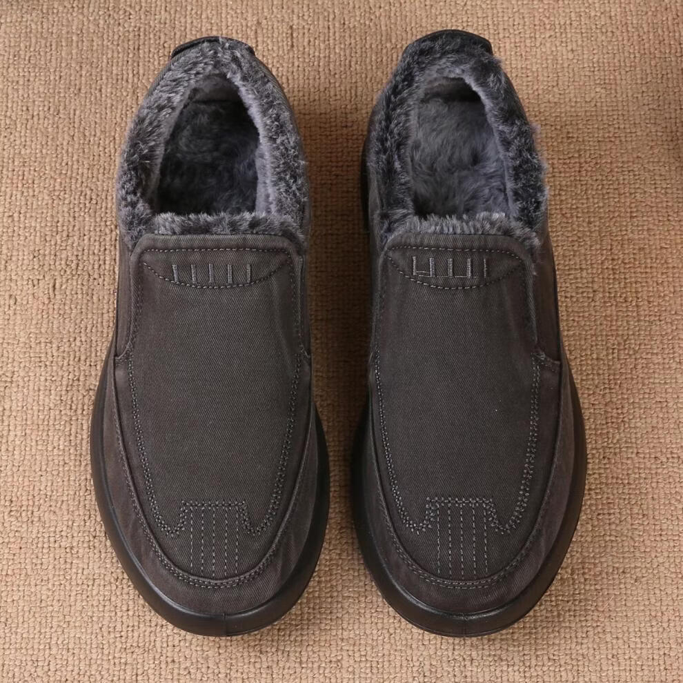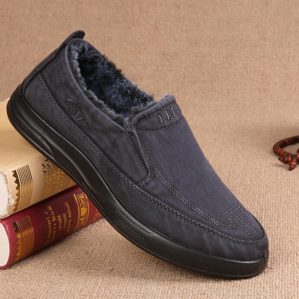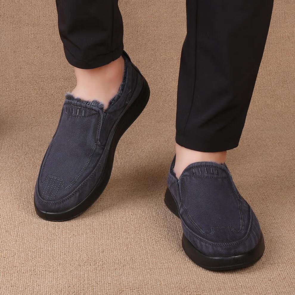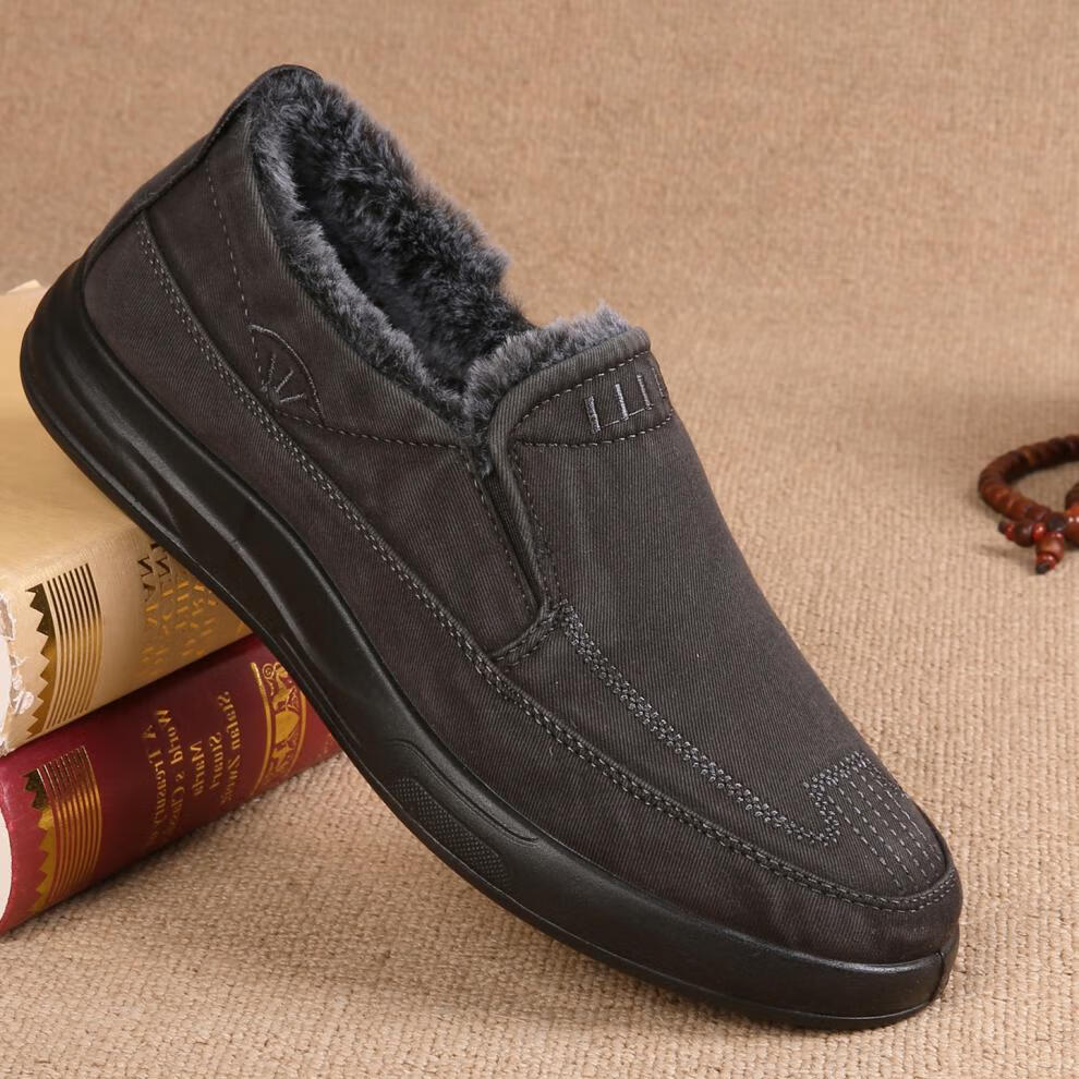 稻草人(MEXICAN)老北京布鞋男鞋冬季加绒保暖二棉鞋一脚蹬男士休闲鞋中老年爸爸鞋 深灰色 38