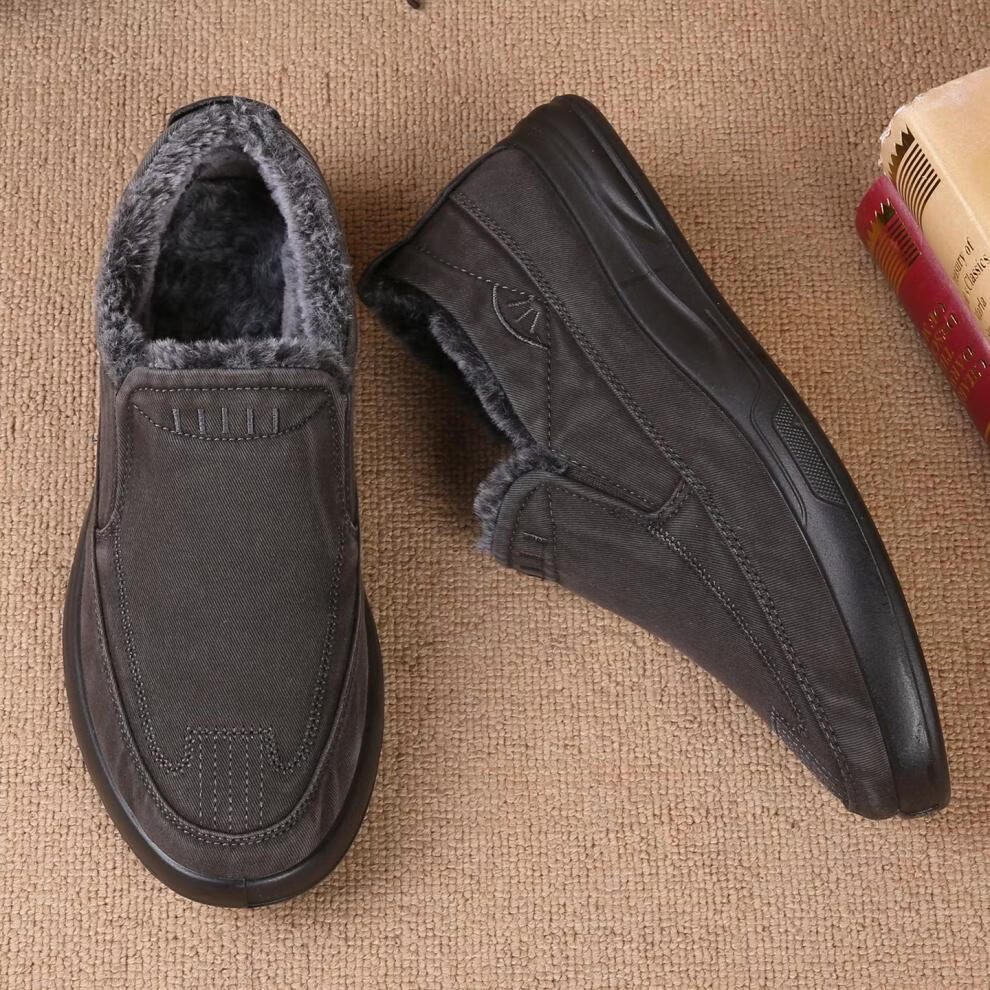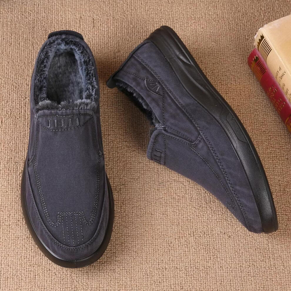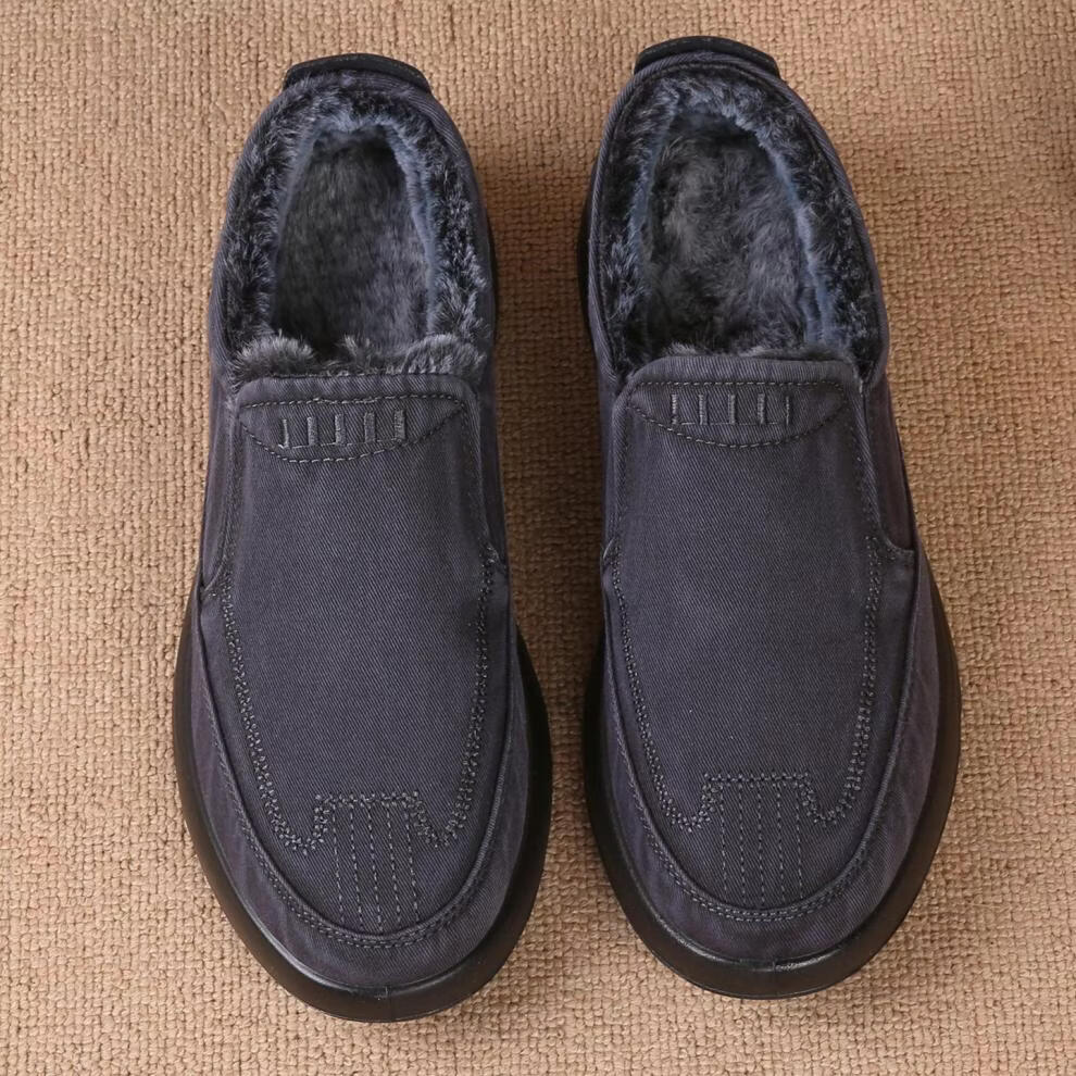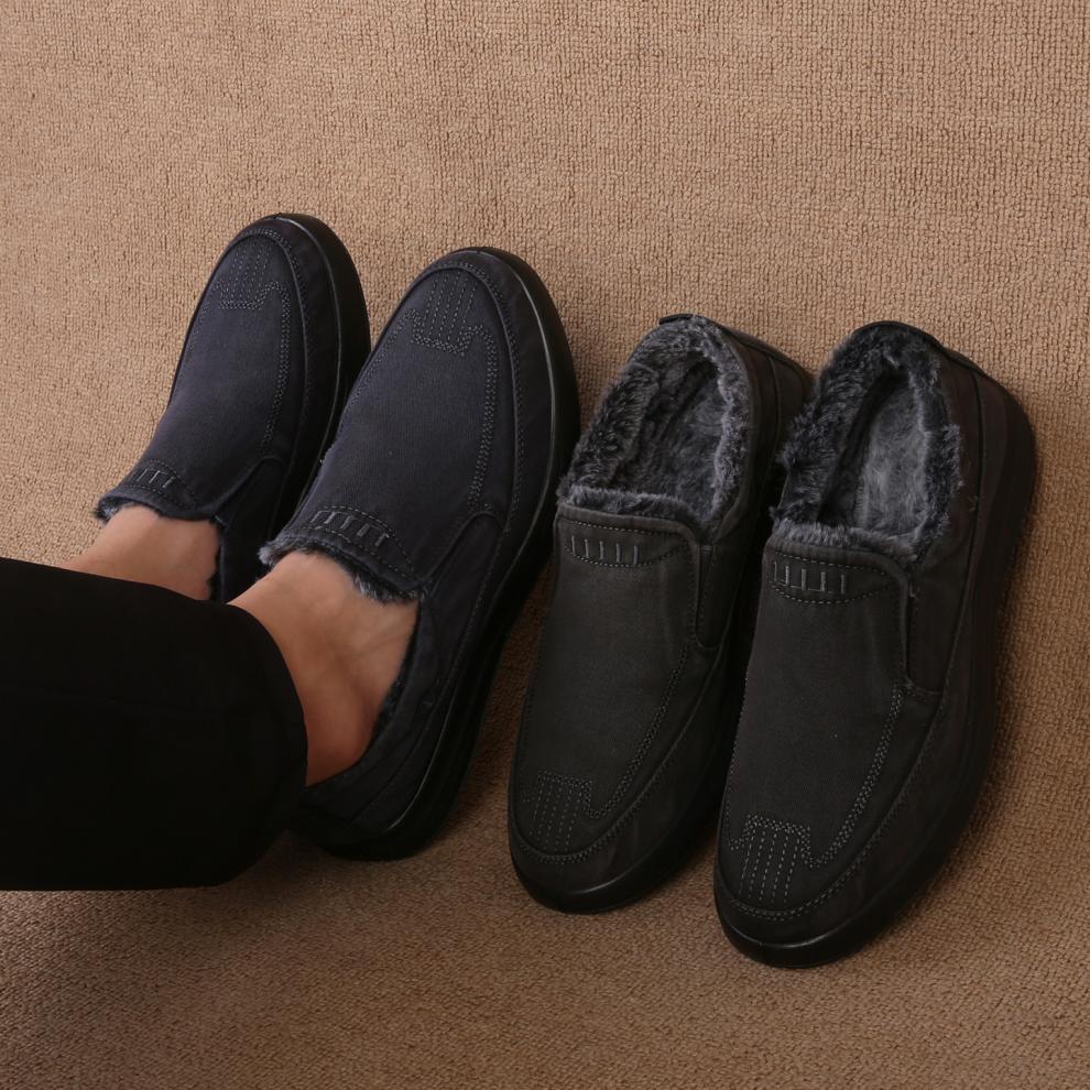 稻草人(MEXICAN)老北京布鞋男鞋冬季加绒保暖二棉鞋一脚蹬男士休闲鞋中老年爸爸鞋 深灰色 38