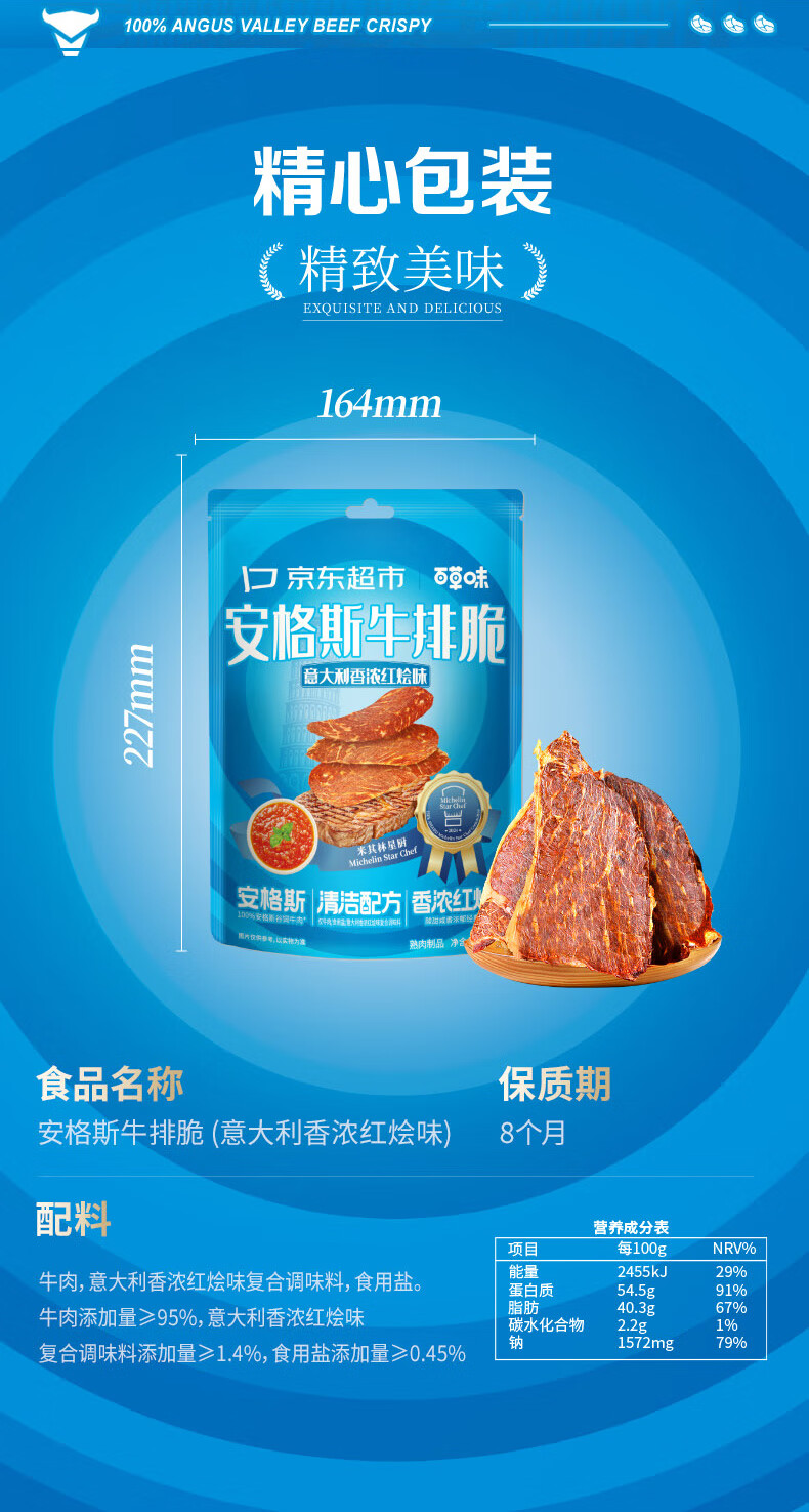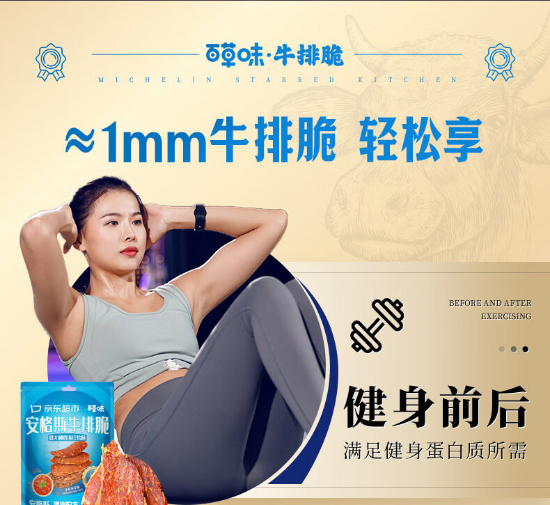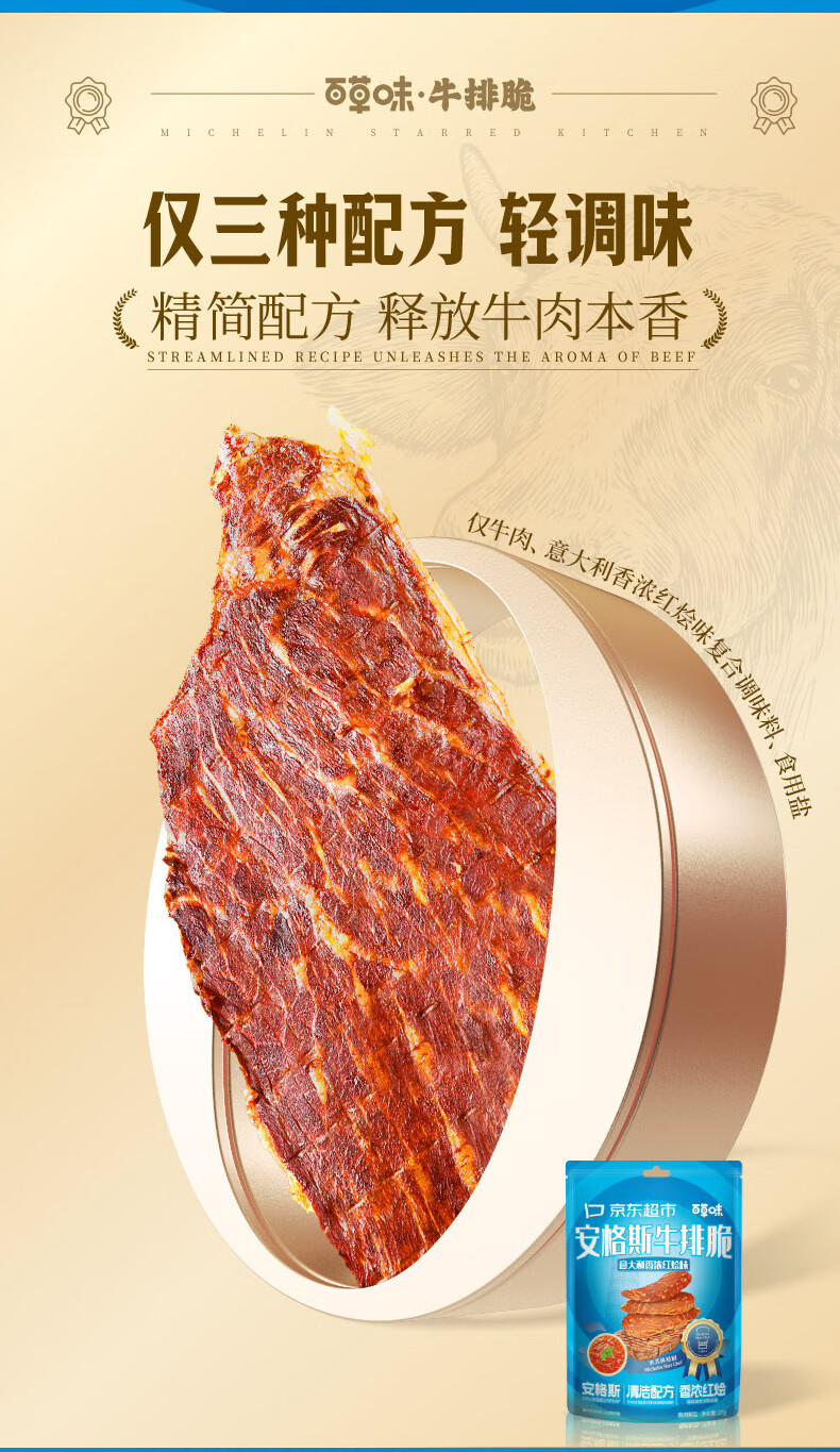 京东京造鲜来多安格斯香烤牛肉薄脆牛排脆 原味100g 内蒙特产零食