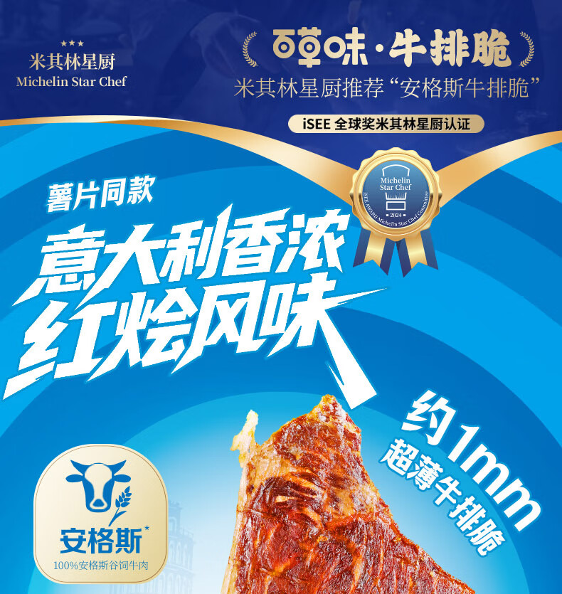 百草味意大利红绘味牛排脆27g 乐事薯片同款口味 健康牛脆脆牛肉干零食