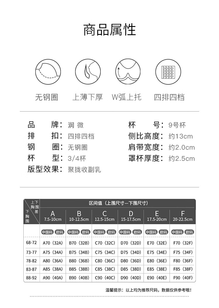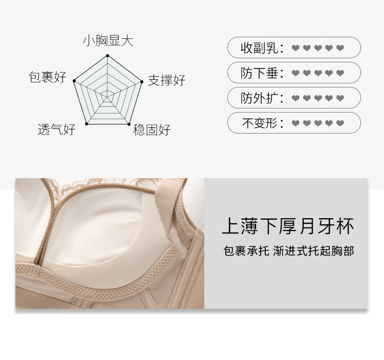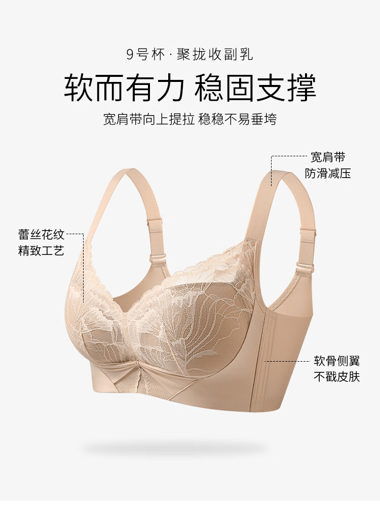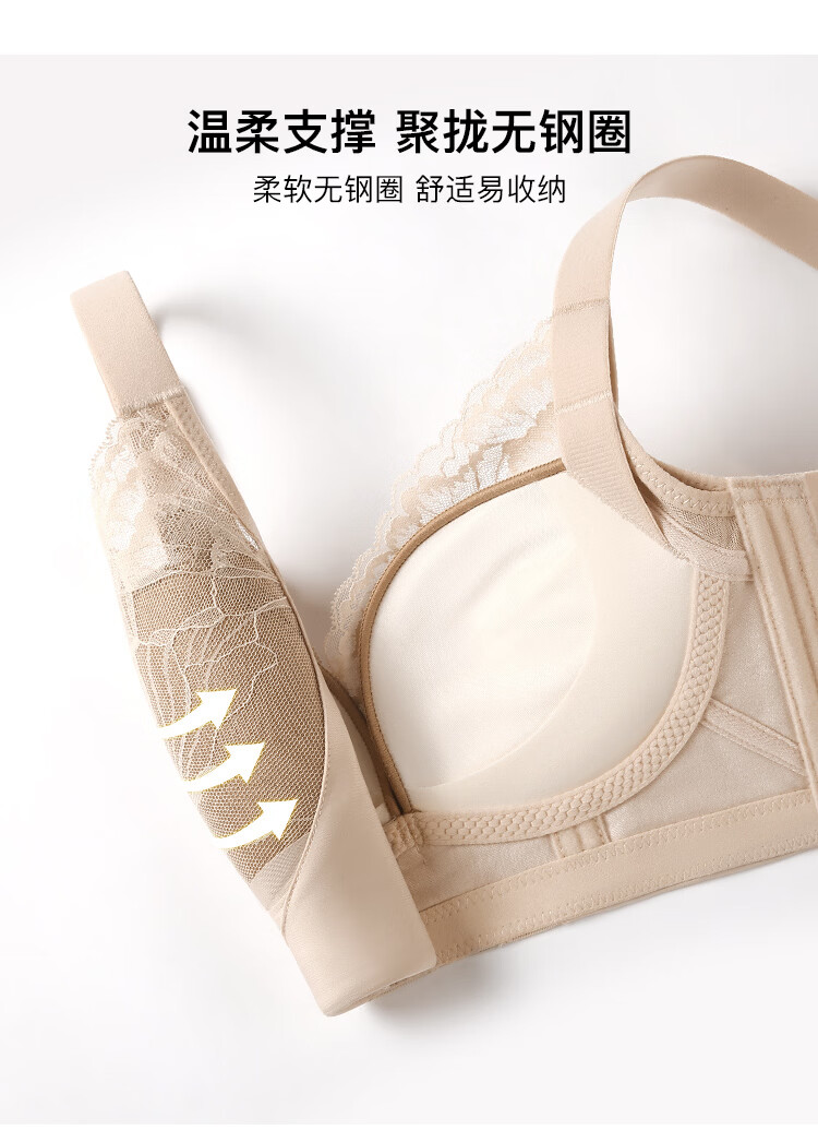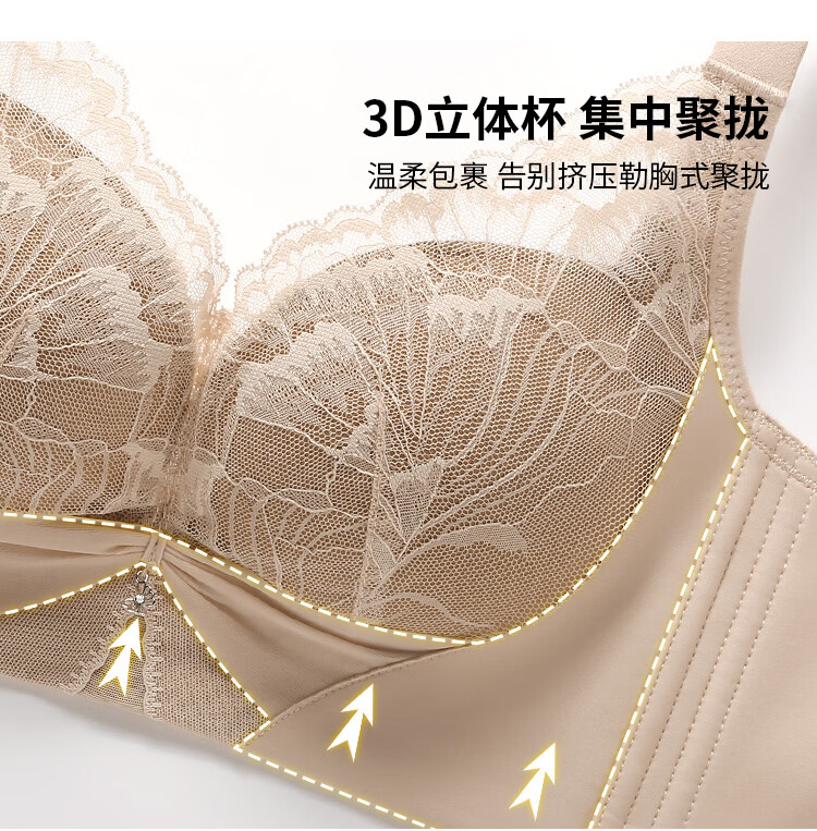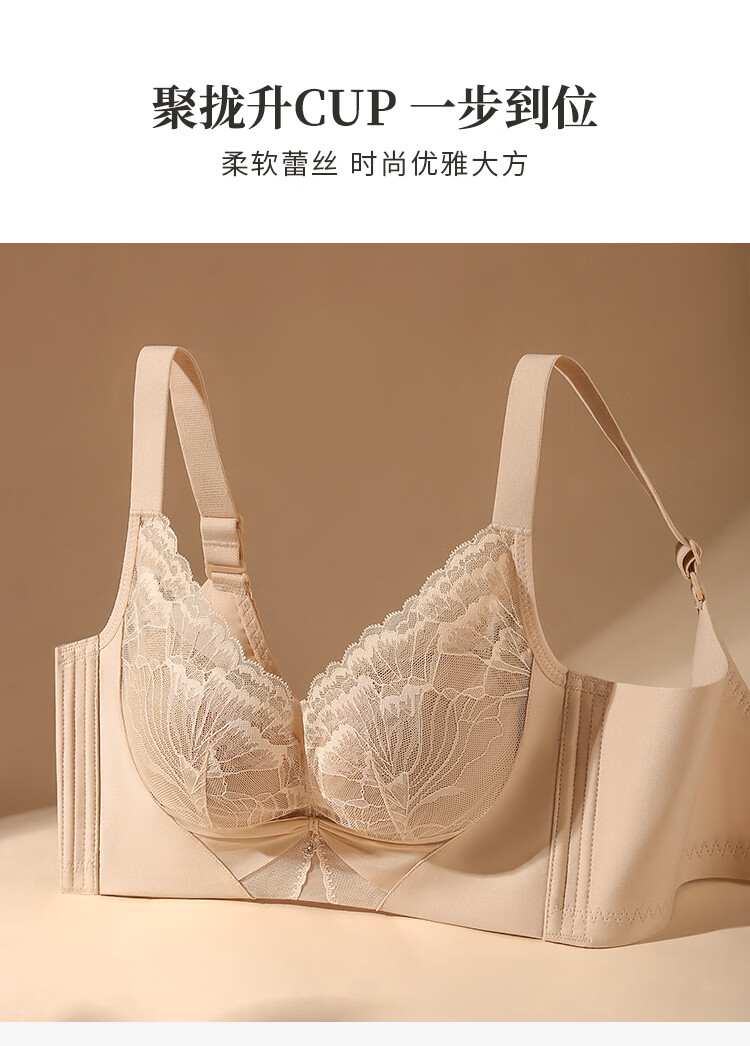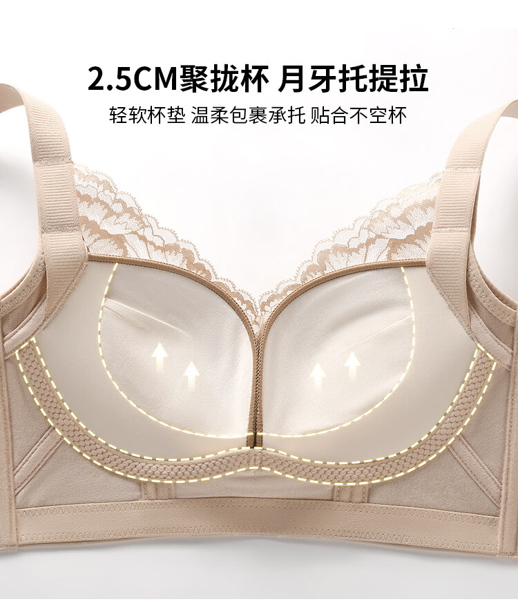 润微小胸聚拢院线专属调整型内衣女显胸大蕾丝无钢圈收副乳文胸罩 香槟白 75B
