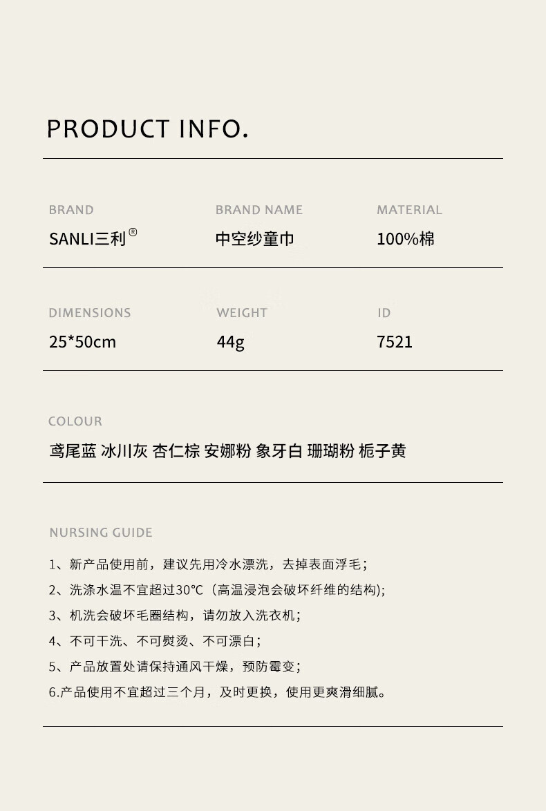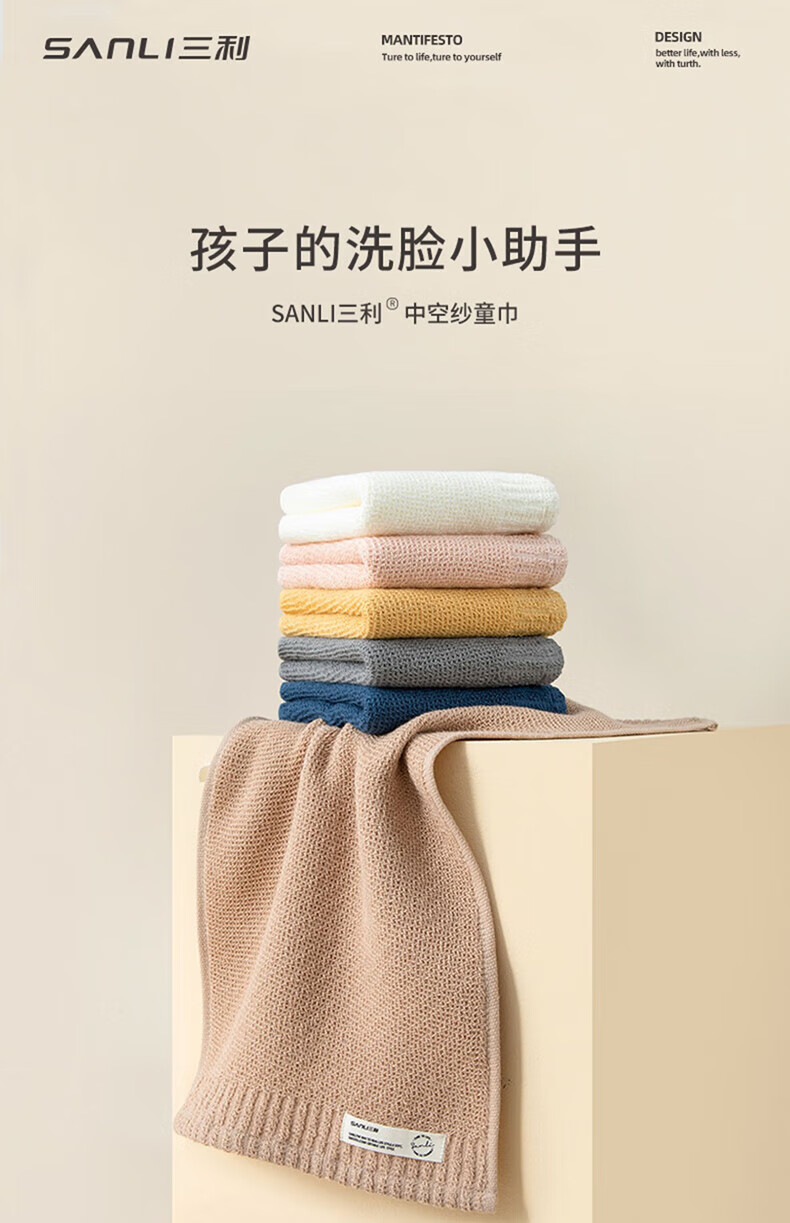 三利儿童小毛巾纯棉洗脸童宝宝婴儿童巾五条 25*50cm 棕/蓝/粉/白/灰