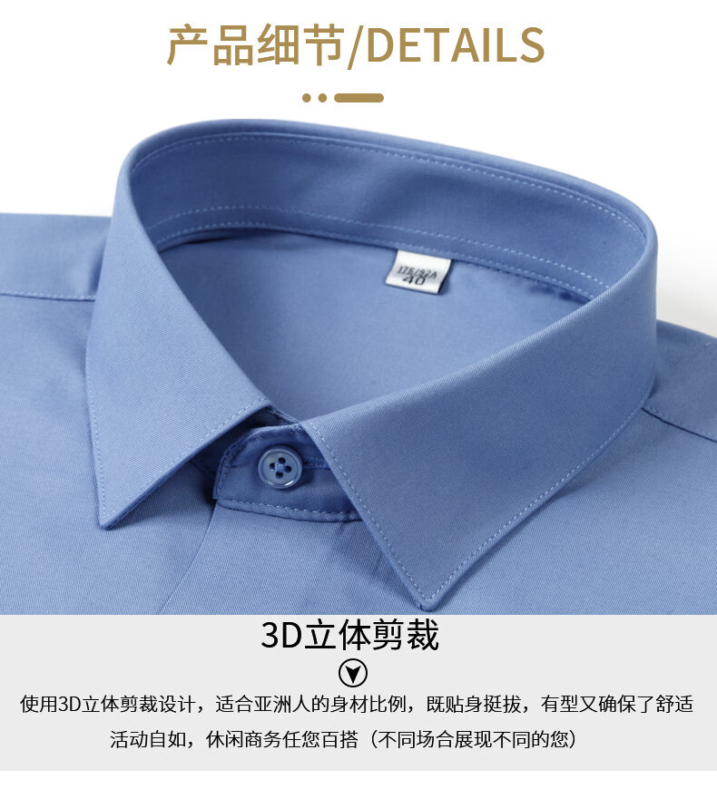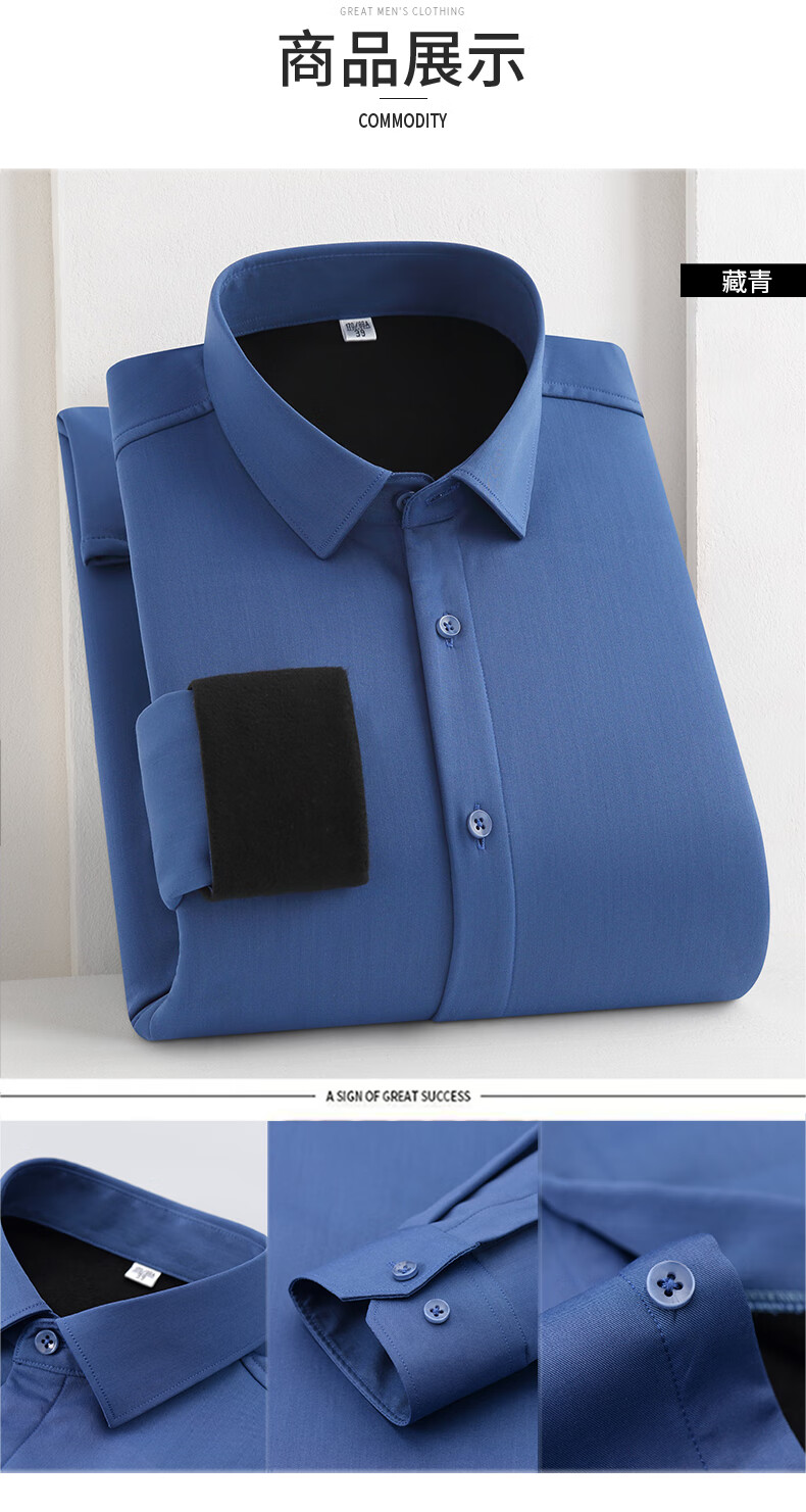 乔亚意大利轻奢高端长袖衬衫男正装纯色商务休闲舒适抗皱免烫职业衬衣 178-3藏青色【亲肤莫代尔款】 42 码 建议160-170斤