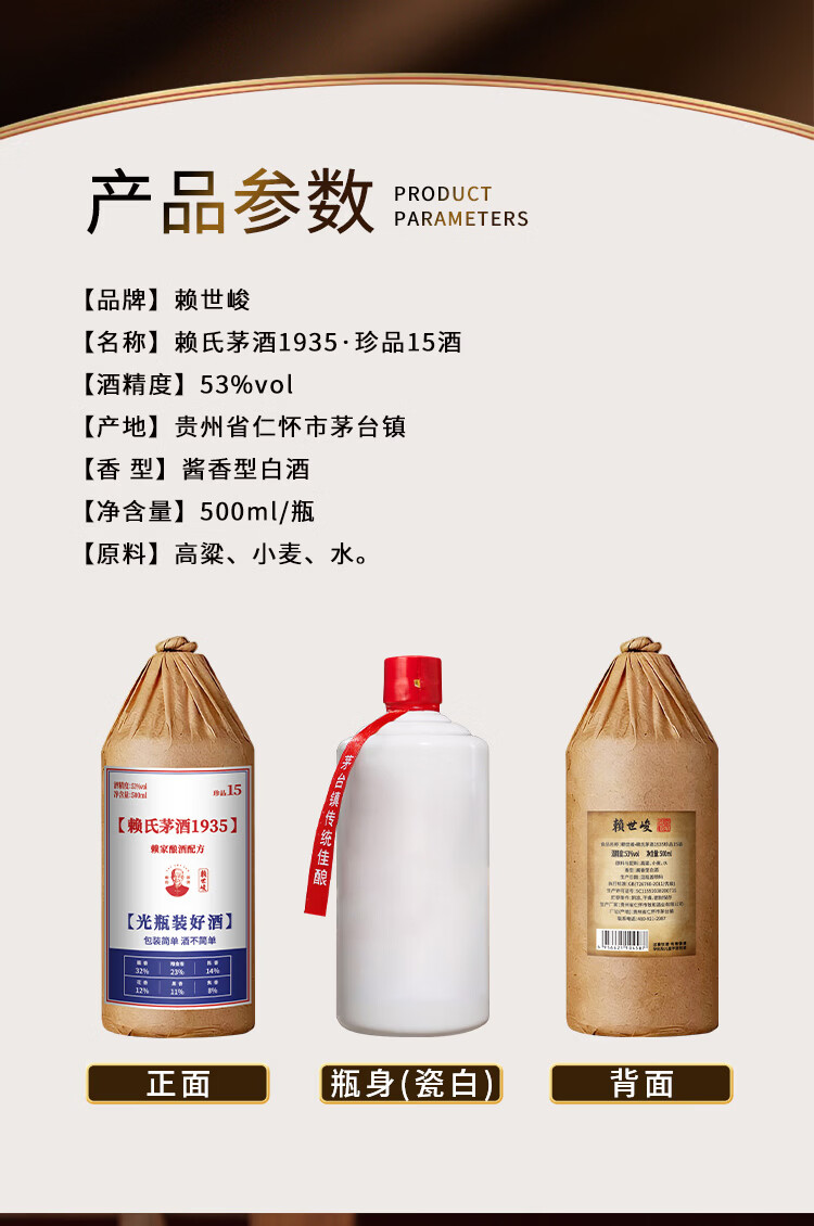 赖世峻贵州茅台镇 赖氏茅酒1935 酱香型白酒 坤沙高粱酒整箱 纯粮食酿酒 53度 500mL 6瓶 珍品15酒