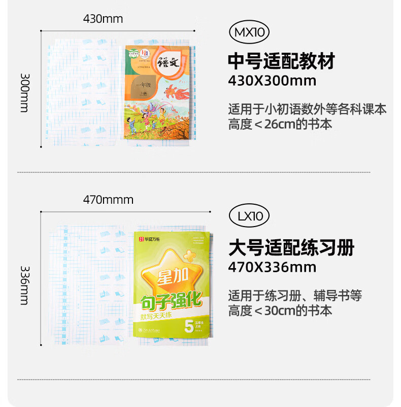 一树梨花 包书皮书套透明磨砂书本保护套书壳 一年级小学生包书纸 16k书皮套书膜三年级a4初中课本自粘书皮 【热卖推荐】大10中10小10/送30枚姓名贴