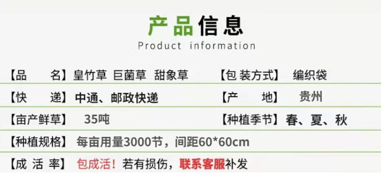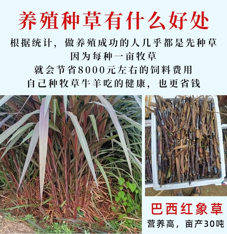 甜象草3号种节无毛高产耐寒皇竹草巨菌草种子多年生四季常青牧草 无毛甜象草100节送生根粉